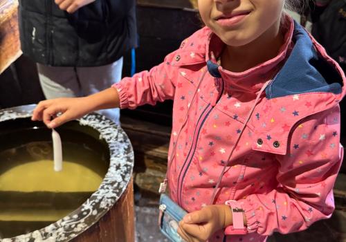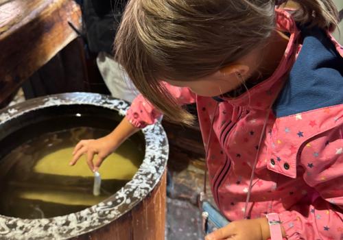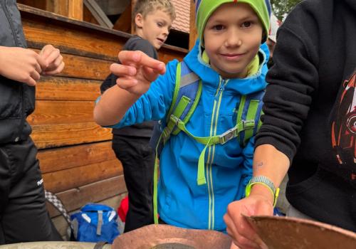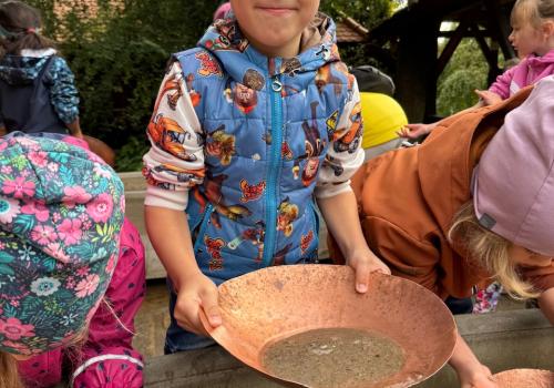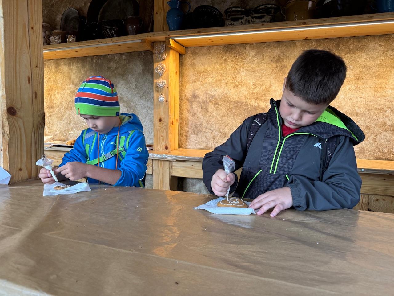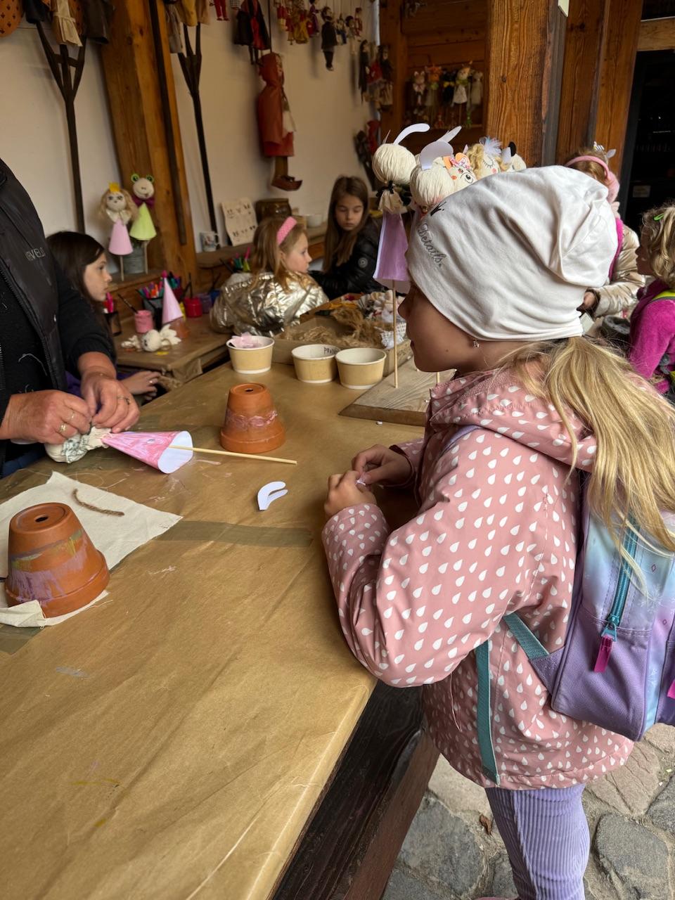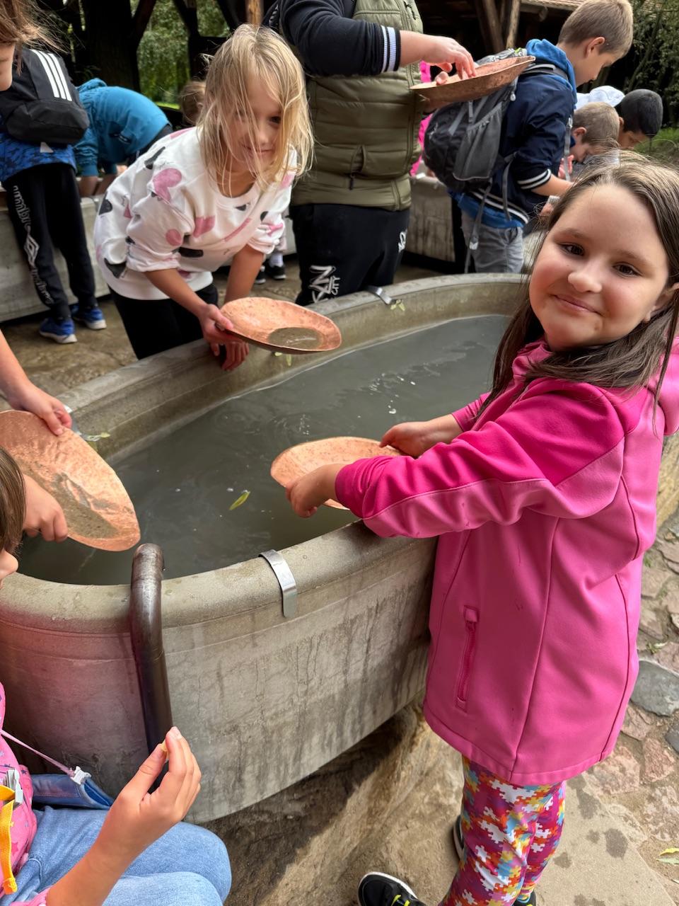 V centru řemesel jsme si nejprve vyměnili koruny za groše. V historické vesnici jsme si vyzkoušeli různá řemesla. Největší úspěch mělo rýžování zlata, výroba papíru, svíček a mýdel, zdobení perníčků. Zaujala nás také drátenická a hrnčířská dílna. V hodovně si někteří koupili něco dobrého na zub. Vyběhali jsme se v bludišti, v zahradách jsme si prohlédli moderní umění, vyhlídku a poznávali bylinky. Viděli jsme velké množství hus a dalších zvířat. Celá exkurze se povedla, včetně počasí.