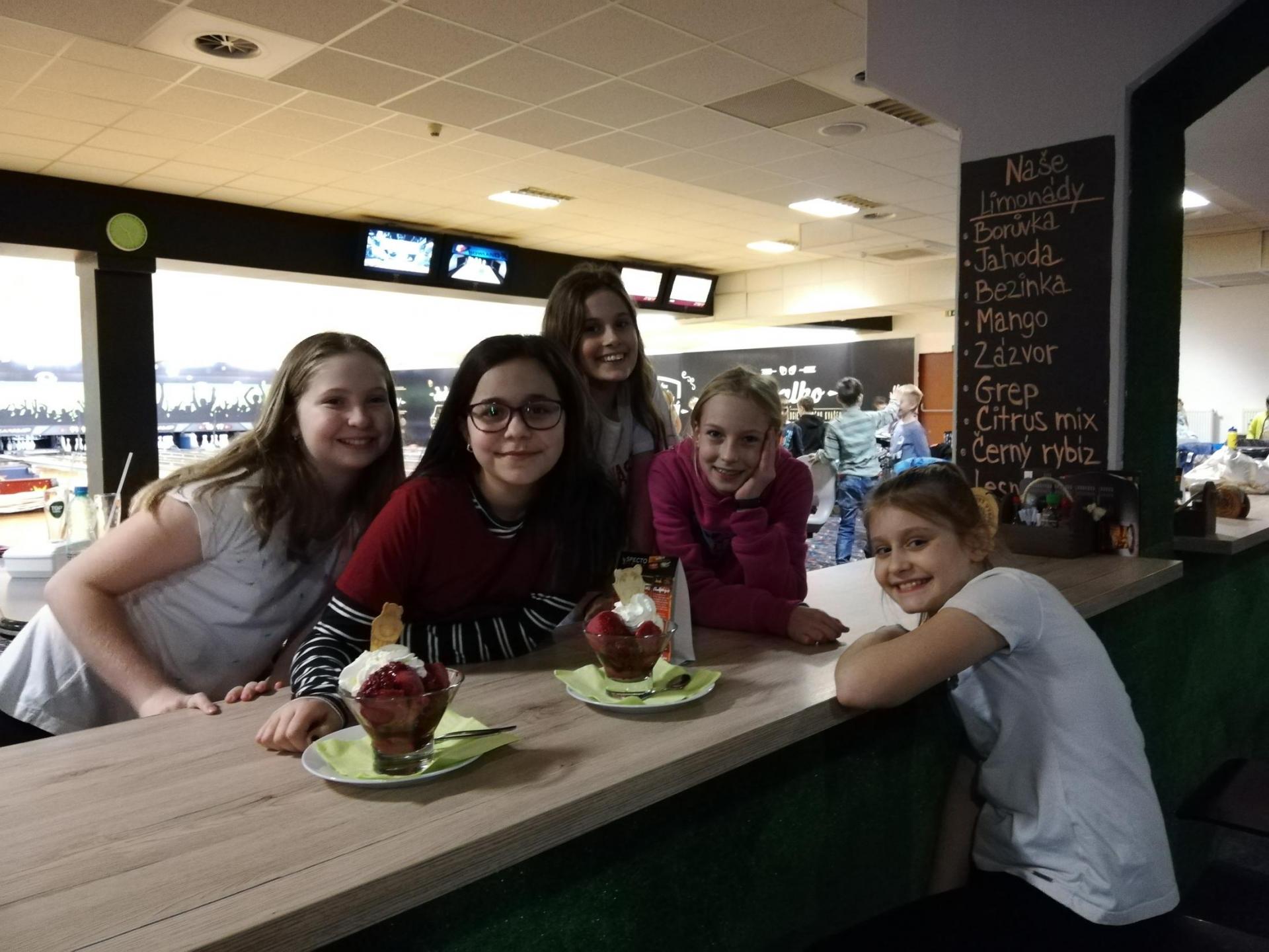 Naše předposlední pololetí na 1. stupni jsme pojali trochu netradičně. Zarezervovali jsme si 5 drah v Bowling zone pod Hypernovou a konec prvního pololetí jsme tak oslavili bowlingem. S oslavou je spojené i mlsání, proto jsme si někteří daly výborný zmrzlinový pohár a limču! Zítra si převezememe vysvědčení a máme zasloužené mini prázdniny.