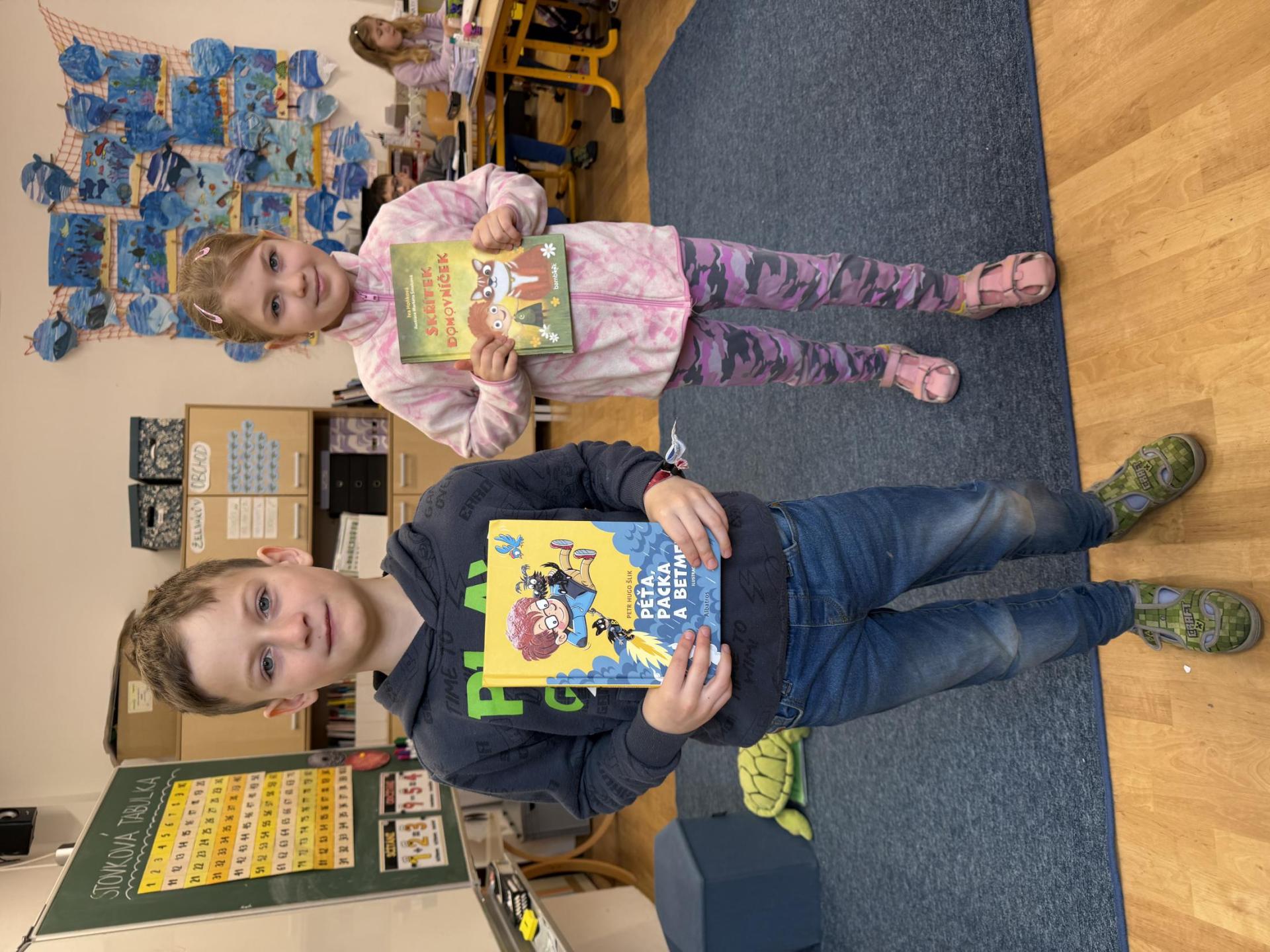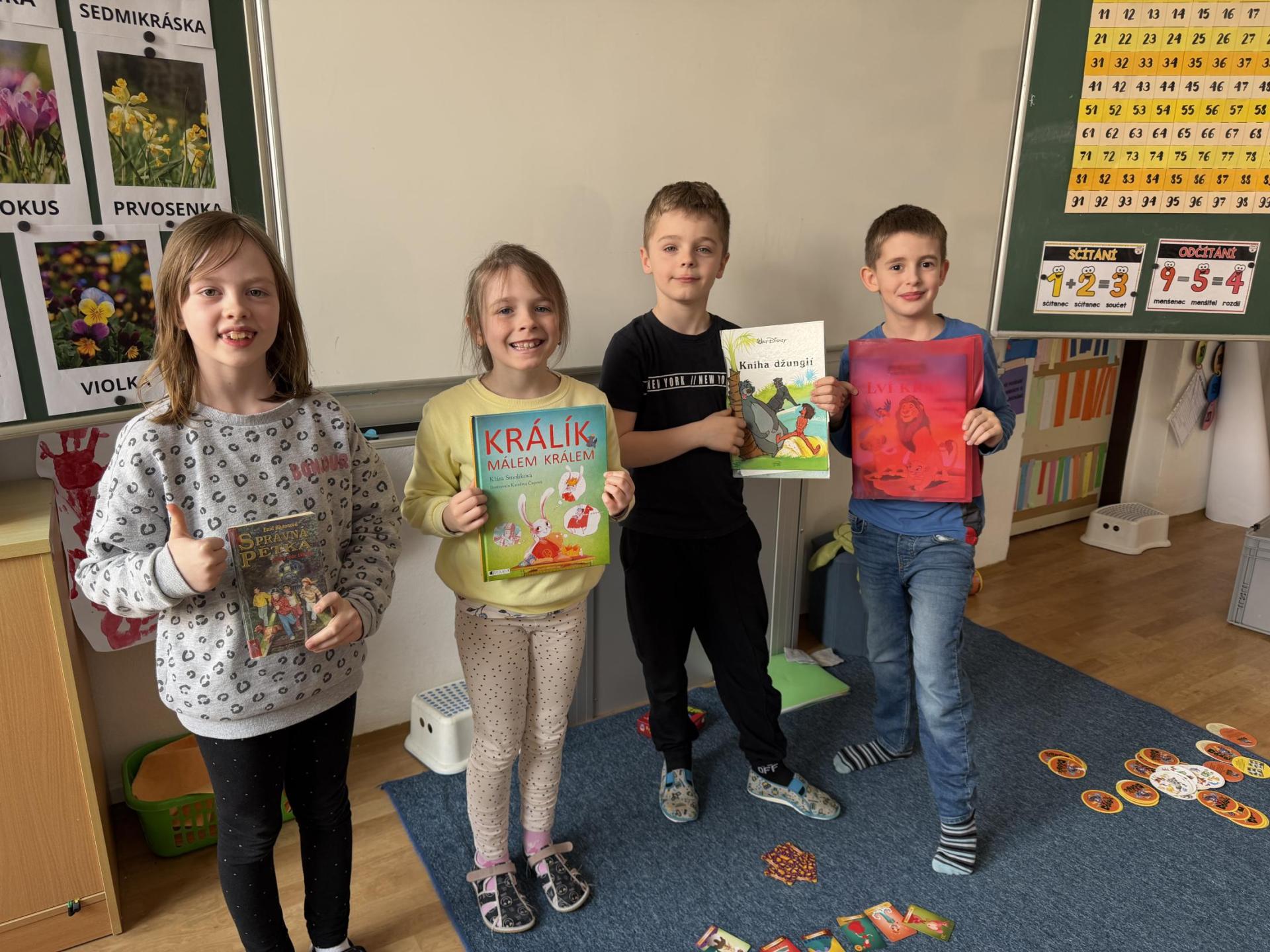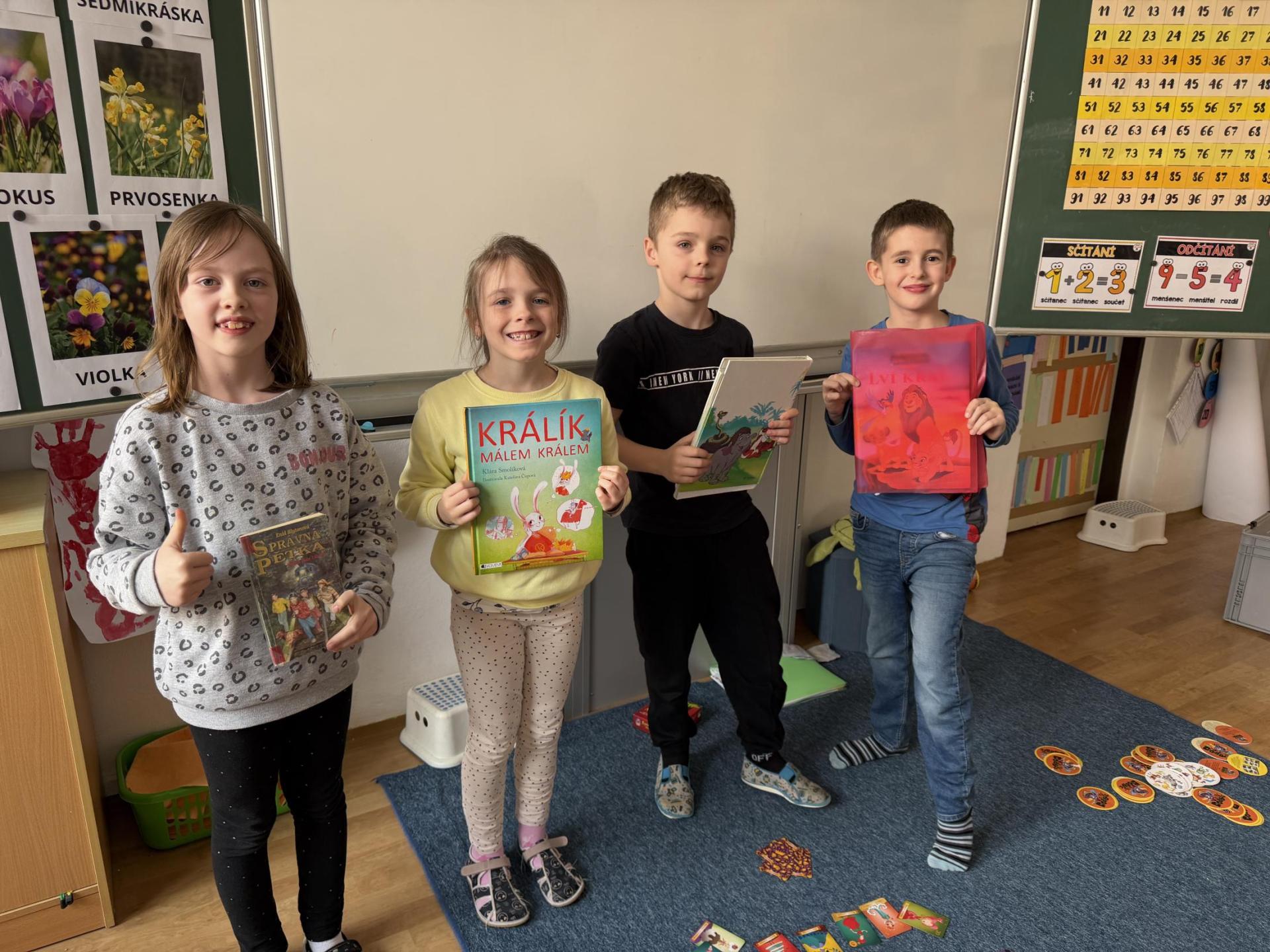 Představujeme si naše přečtené knihy, doporučujeme si je navzájem, prohlížíme si je a vyptáváme se na otázky, které nás zajímají.