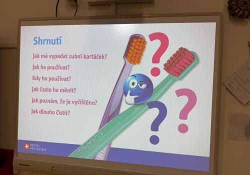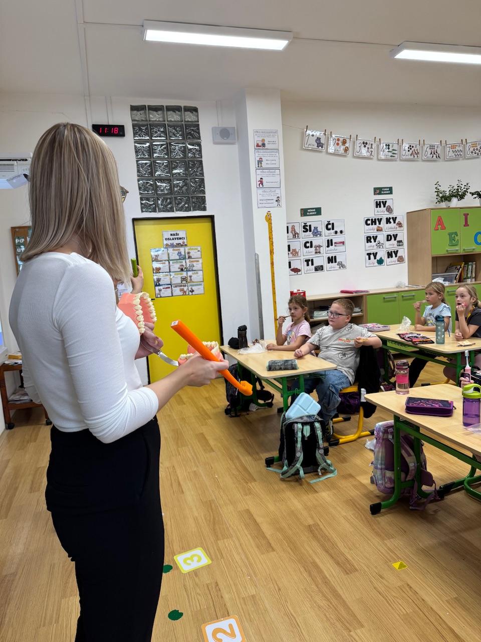 Žáci byli seznámeni se základní teorií o stavbě zubů, jejich významu a nutnosti pravidelné péče o chrup. Byly vysvětleny zásady správného čištění zubů – volba vhodného kartáčku, zubní pasty a správná technika pohybů. Následovala praktická ukázka správného čištění zubů s demonstrací na modelu.