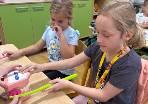 Poté proběhla kontrola žáků, zda správně přikládají kartáček k zubům a dásním a používají správné tahy.