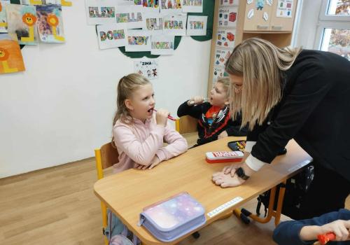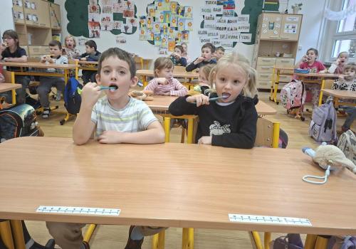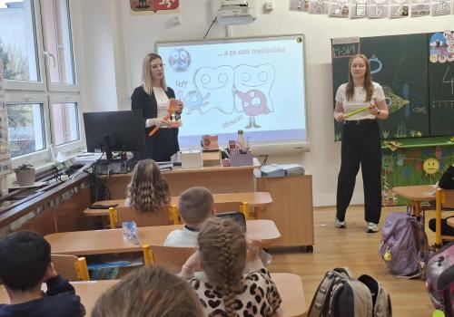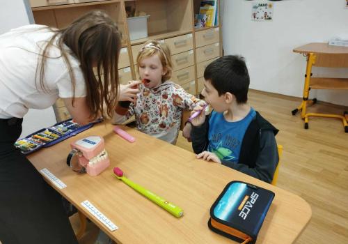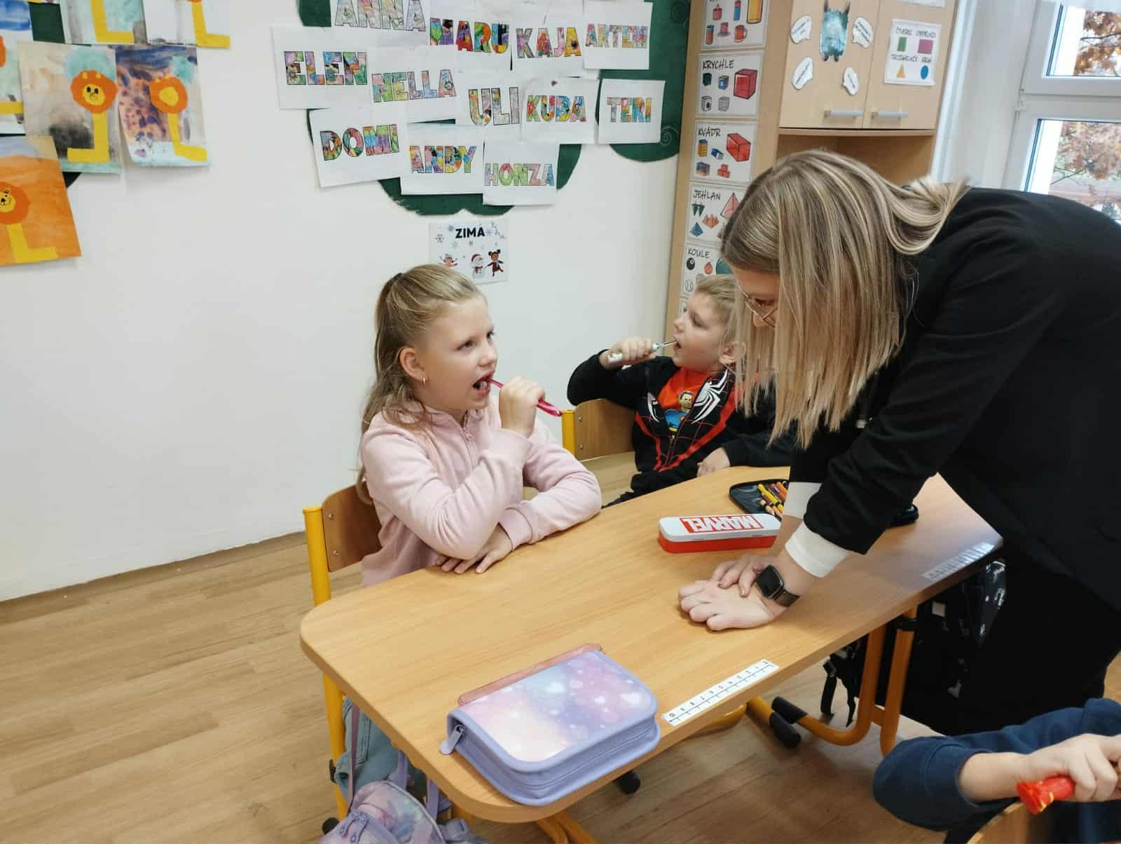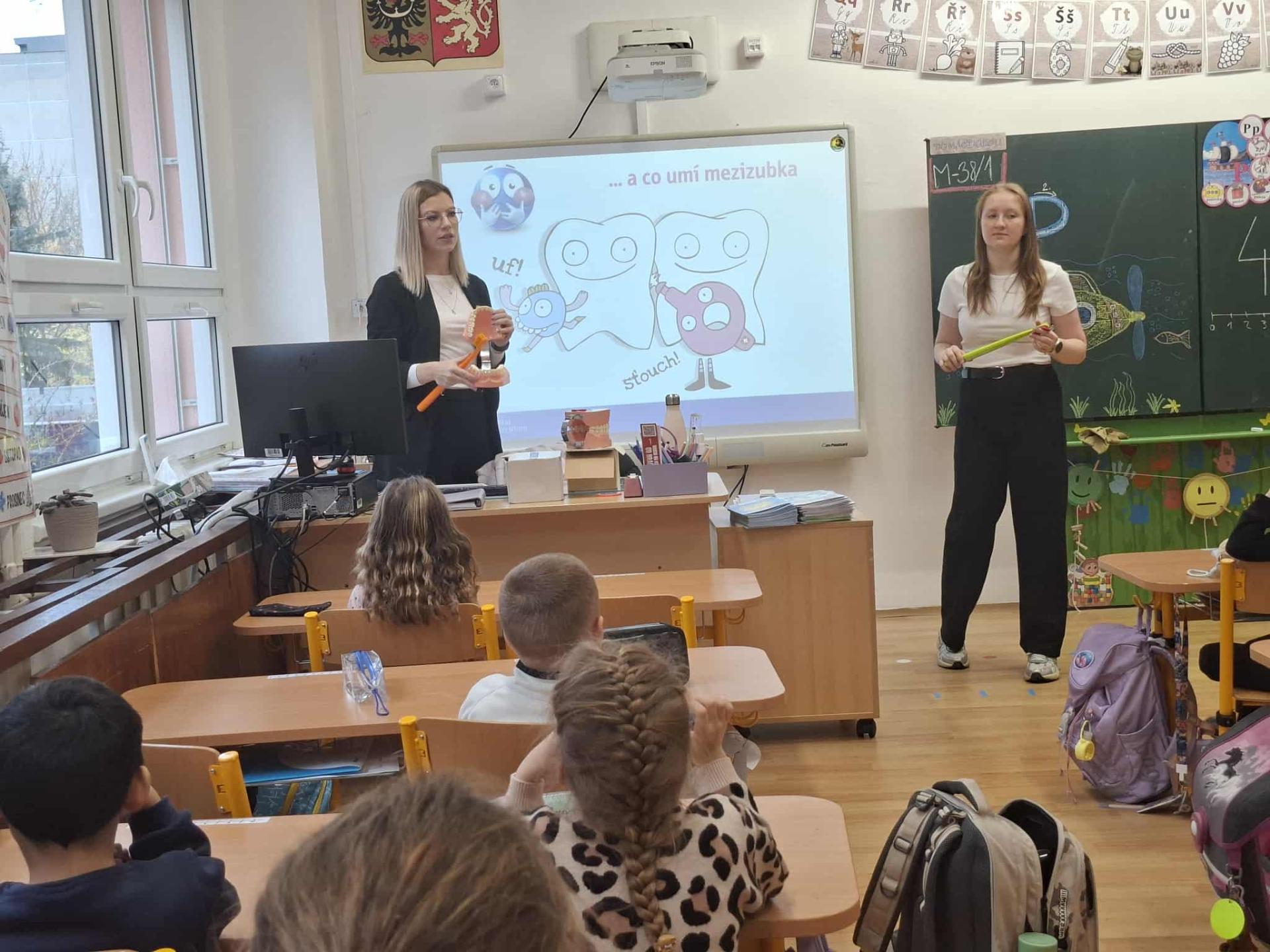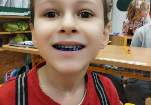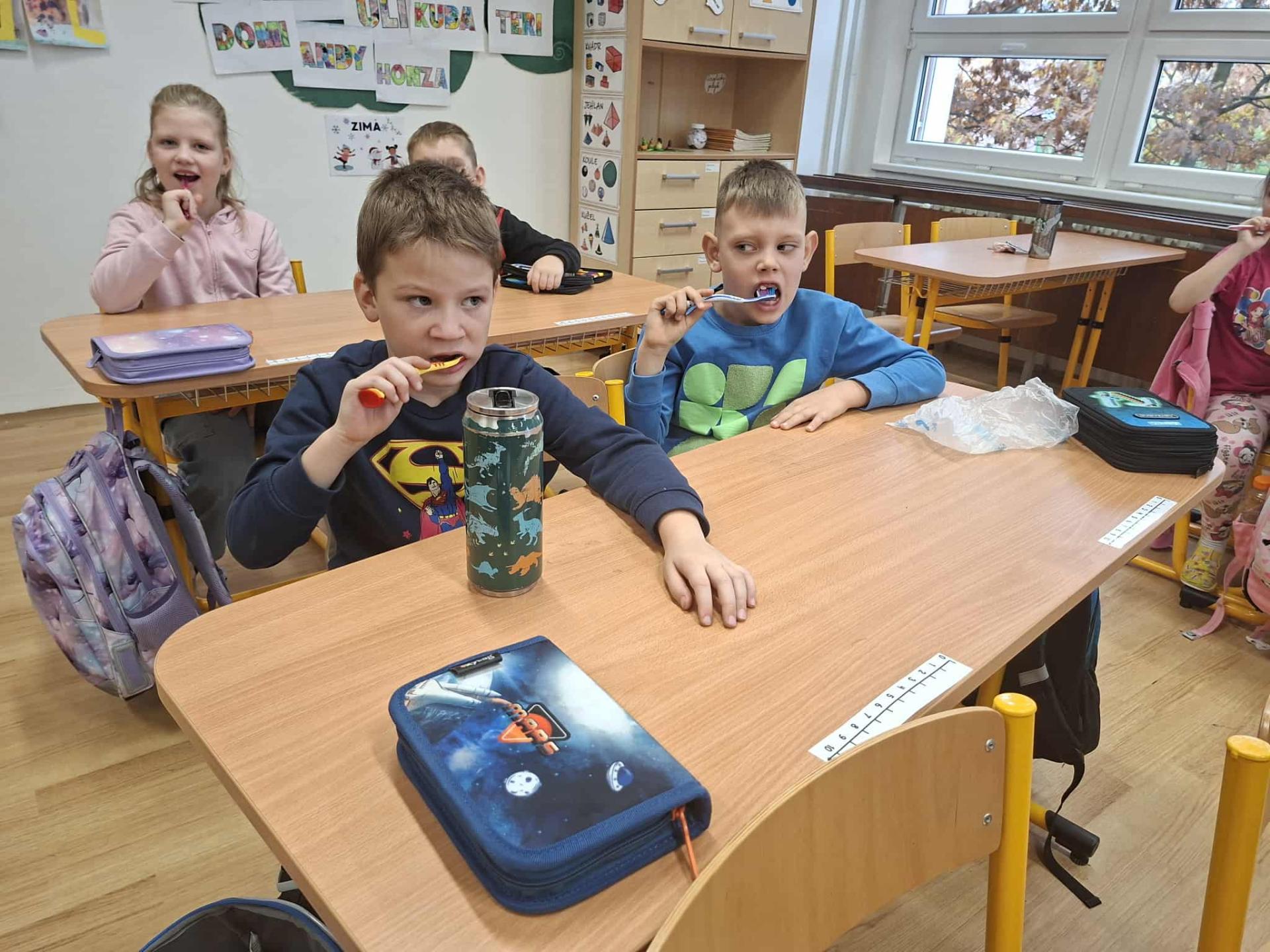 Dnes u nás ve třídě proběhla beseda na téma dentální prevence. Děti se dozvěděly, jak zub vypadá, jak se správně o zuby starat, jak by měl vypadat kartáček a jaké druhy kartáčků máme. V neposlední řadě měly možnost vyzkoušet si indikátor plaku a zjistit, jestli mají zoubky vyčištěné správně. Besedu jsme si moc užili!