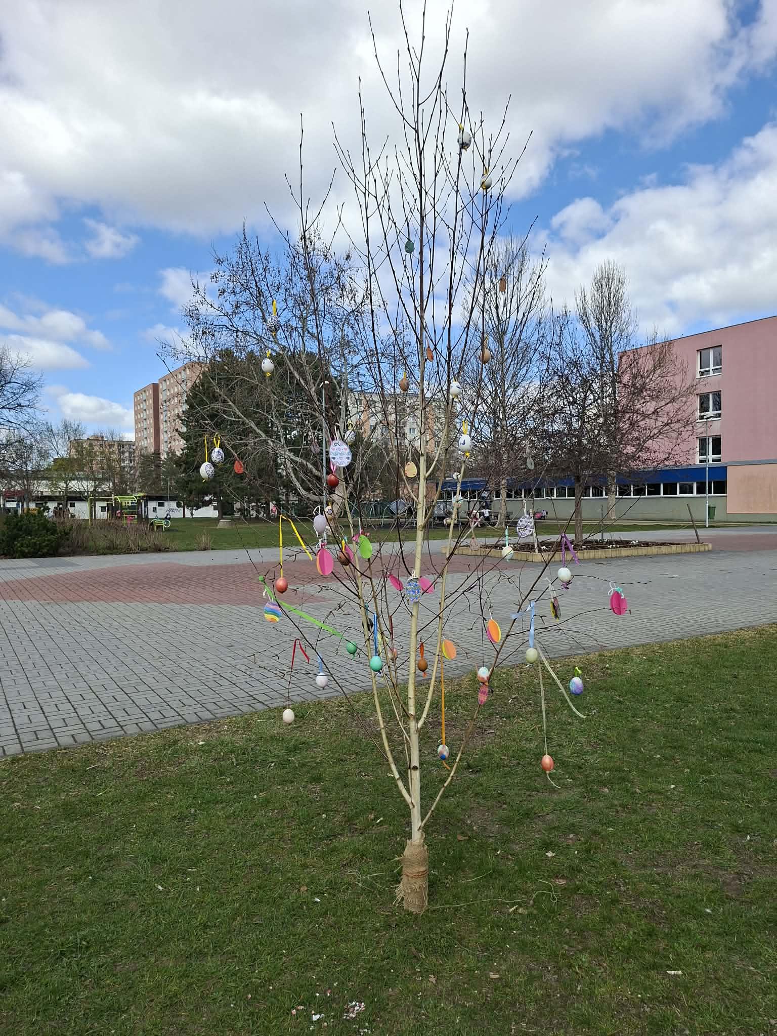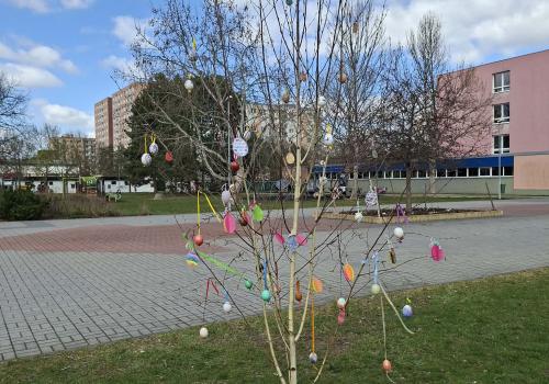 Vrcholem našich příprav bylo kreativní tvoření. Vyrobili jsme veselá velikonoční vajíčka, která zdobí stromy před naší školou. Teď dělají radost nejen nám, ale i všem rodičům a kolemjdoucím, kteří jdou kolem.