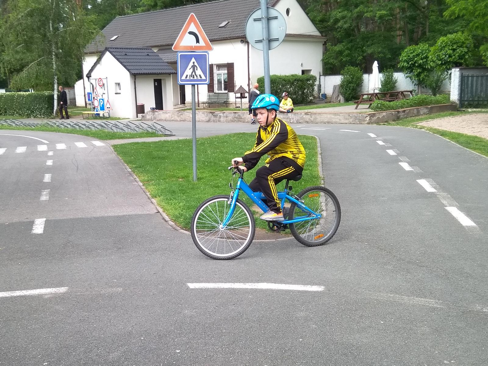Po pečlivé teoretické přípravě jsme sedli na kola. Kruhový objezd jsme zvládli, kupodivu nikdo neskončil v protisměru.