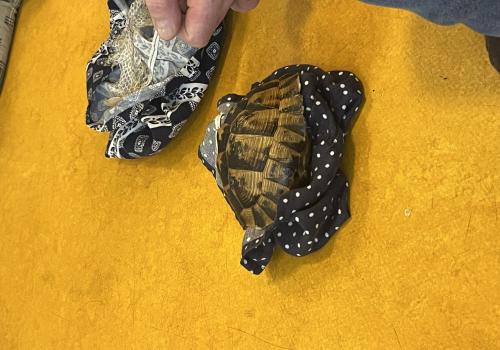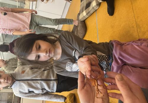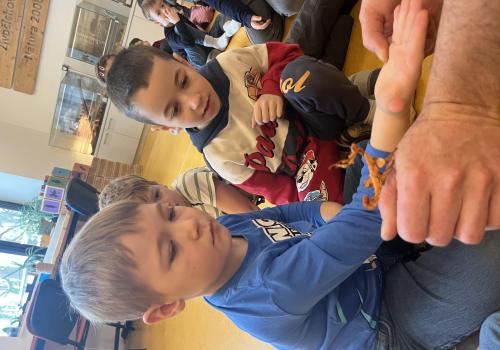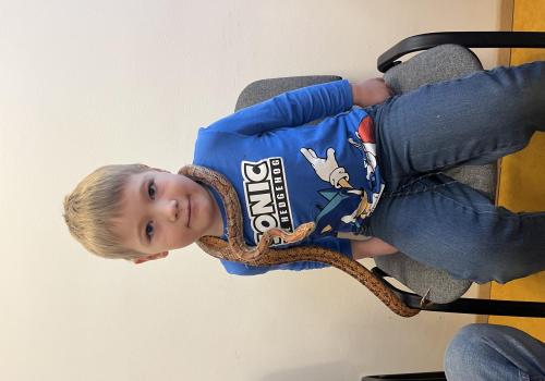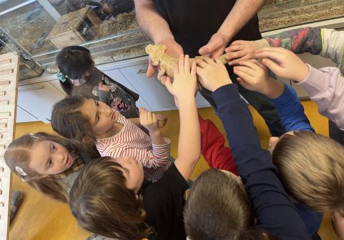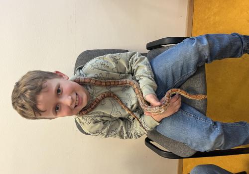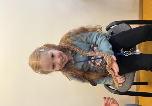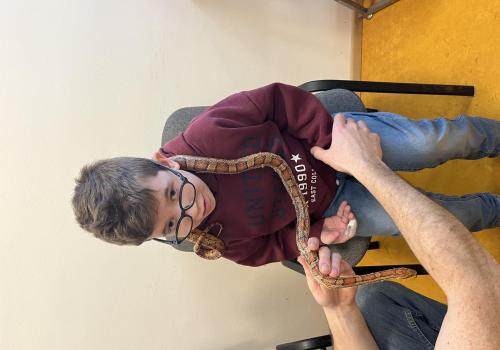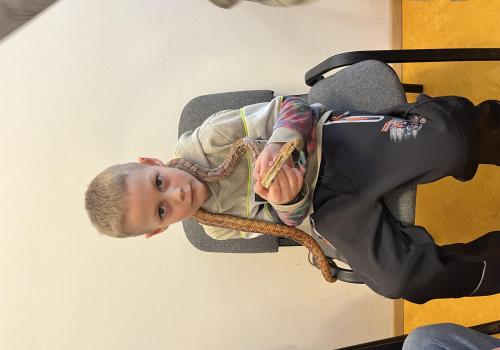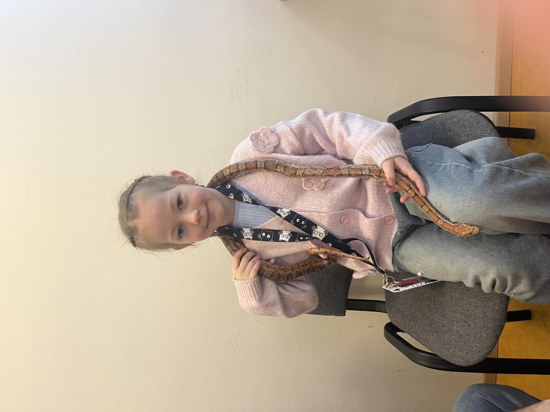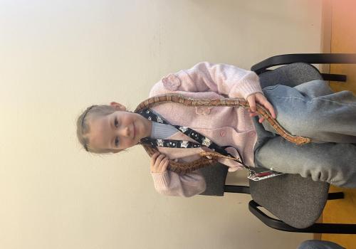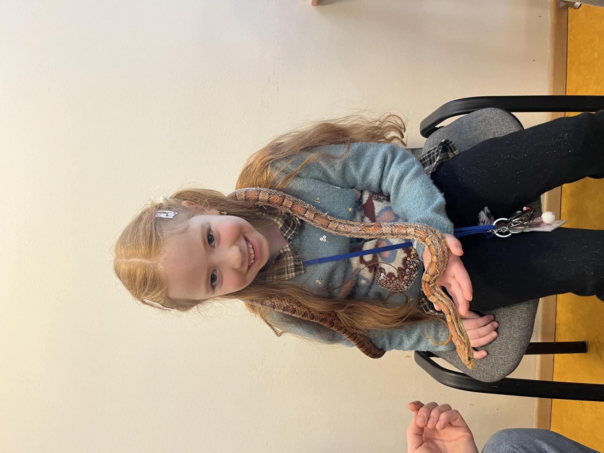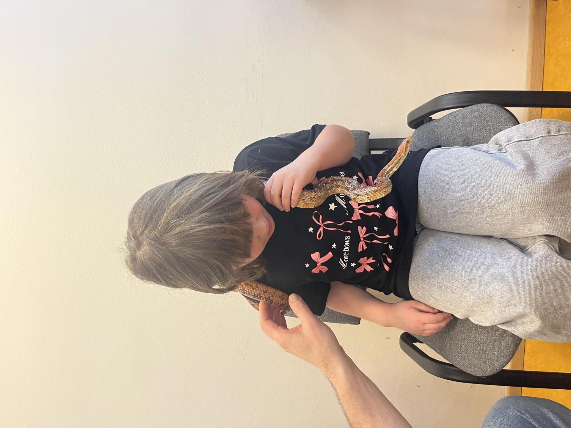 Obdiv si také získala užovka. Některé odvážné děti si ji dokonce mohly dát kolem krku a pozorovat ji z bezprostřední blízkosti. Během programu jsme si také vyzkoušeli poznávání zvířat hmatem – například jsme sahali na suchou hadí kůži nebo na krunýř želvy.