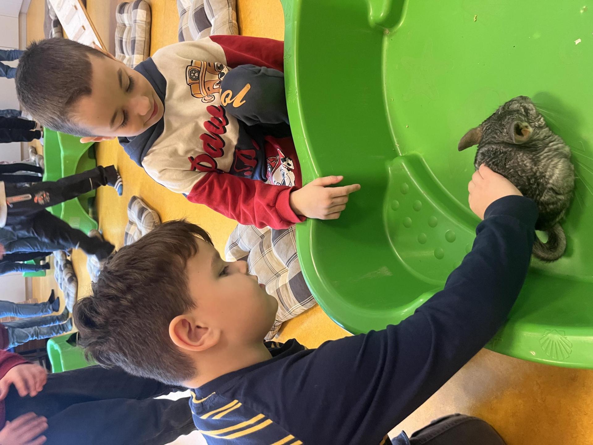 Největší zájem však děti projevily při setkání s živými zvířaty. Měly možnost si je prohlédnout zblízka, pohladit si je a některá dokonce vzít do ruky. Viděli jsme mláďata i dospělé jedince. Mezi zvířaty byli například králíci, myši, křečci, strašilky, suchozemské želvy a činčily.