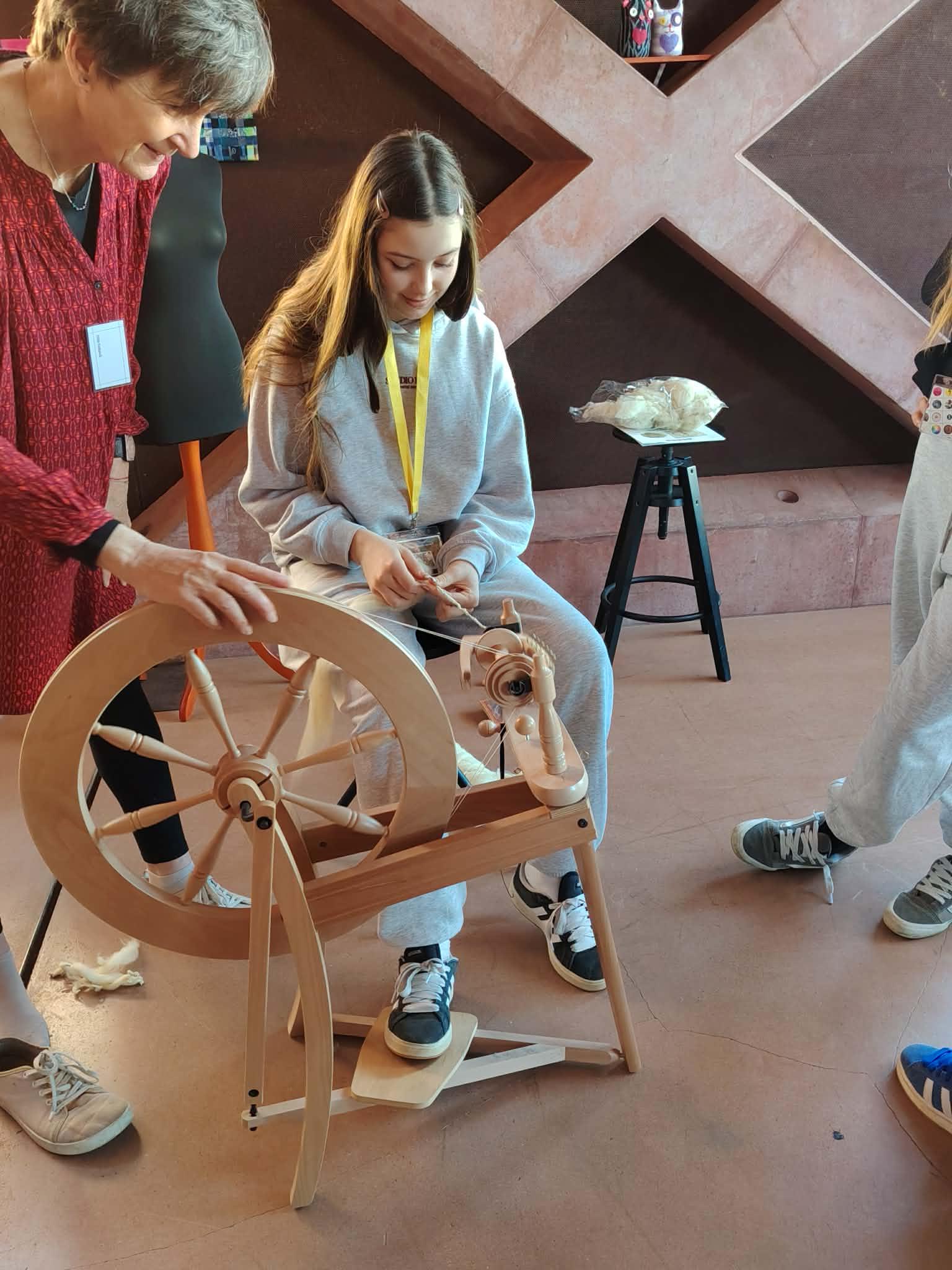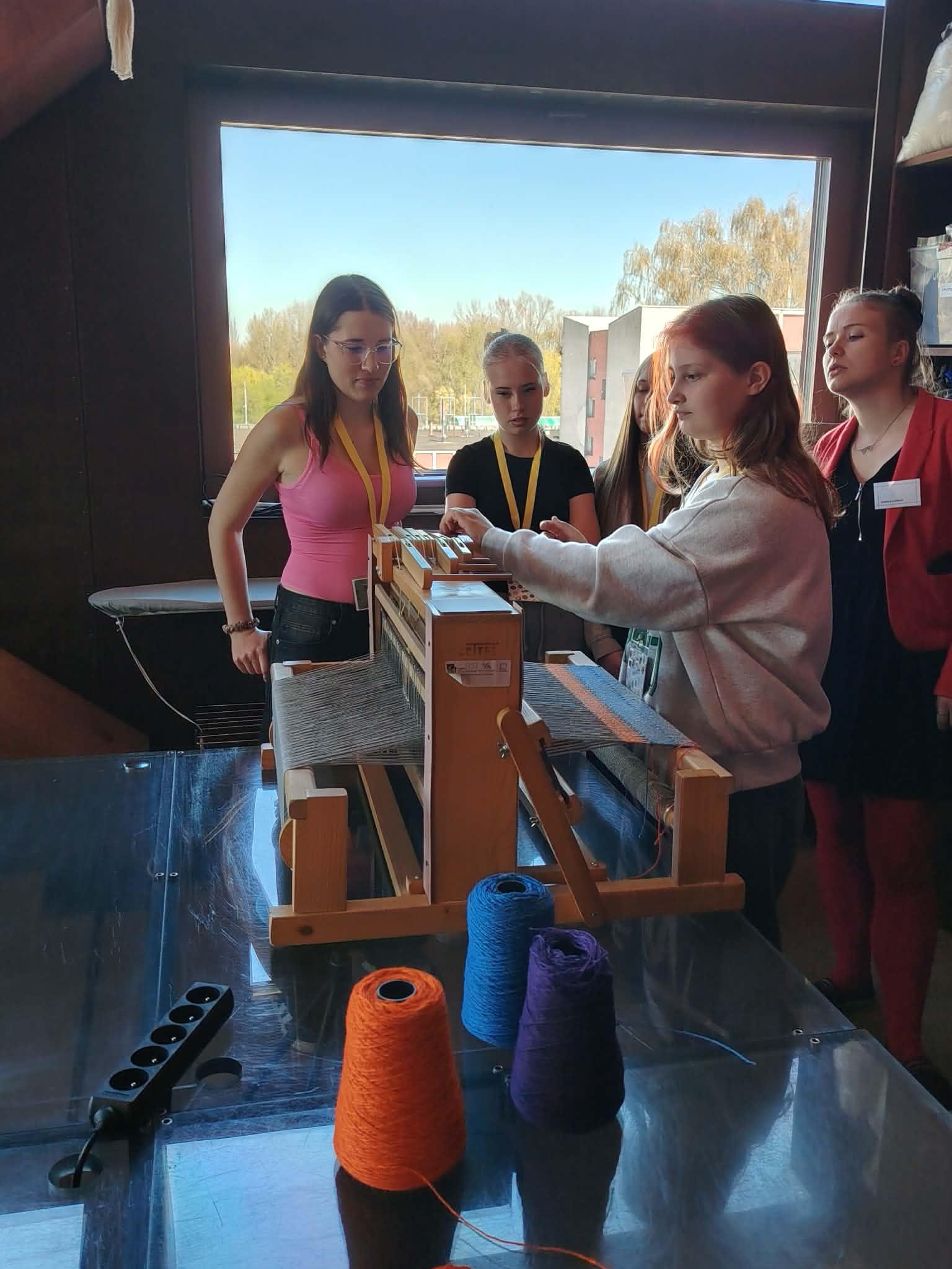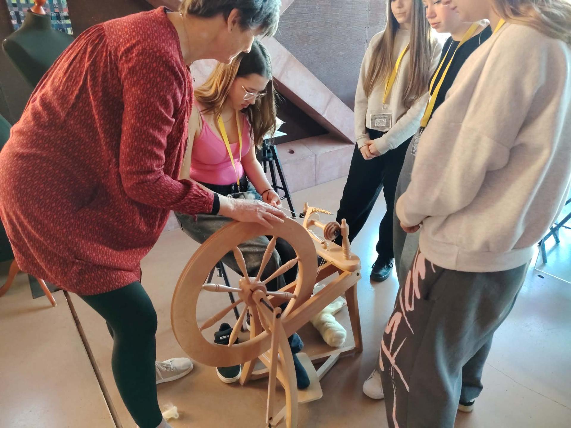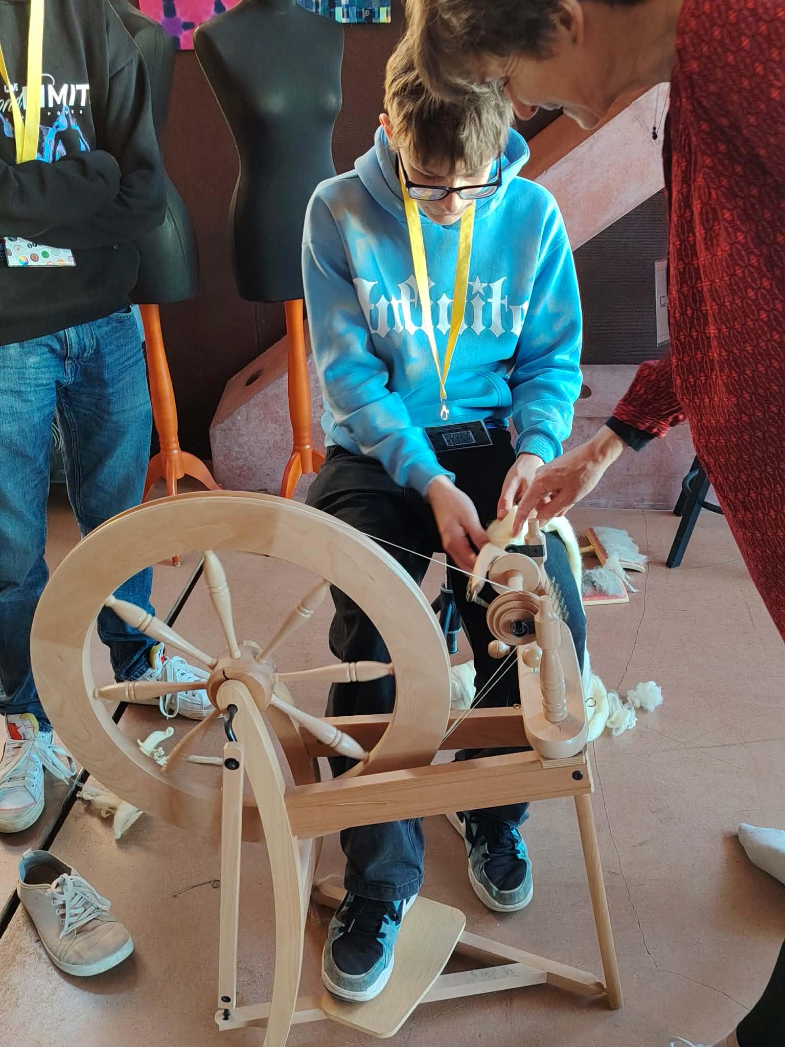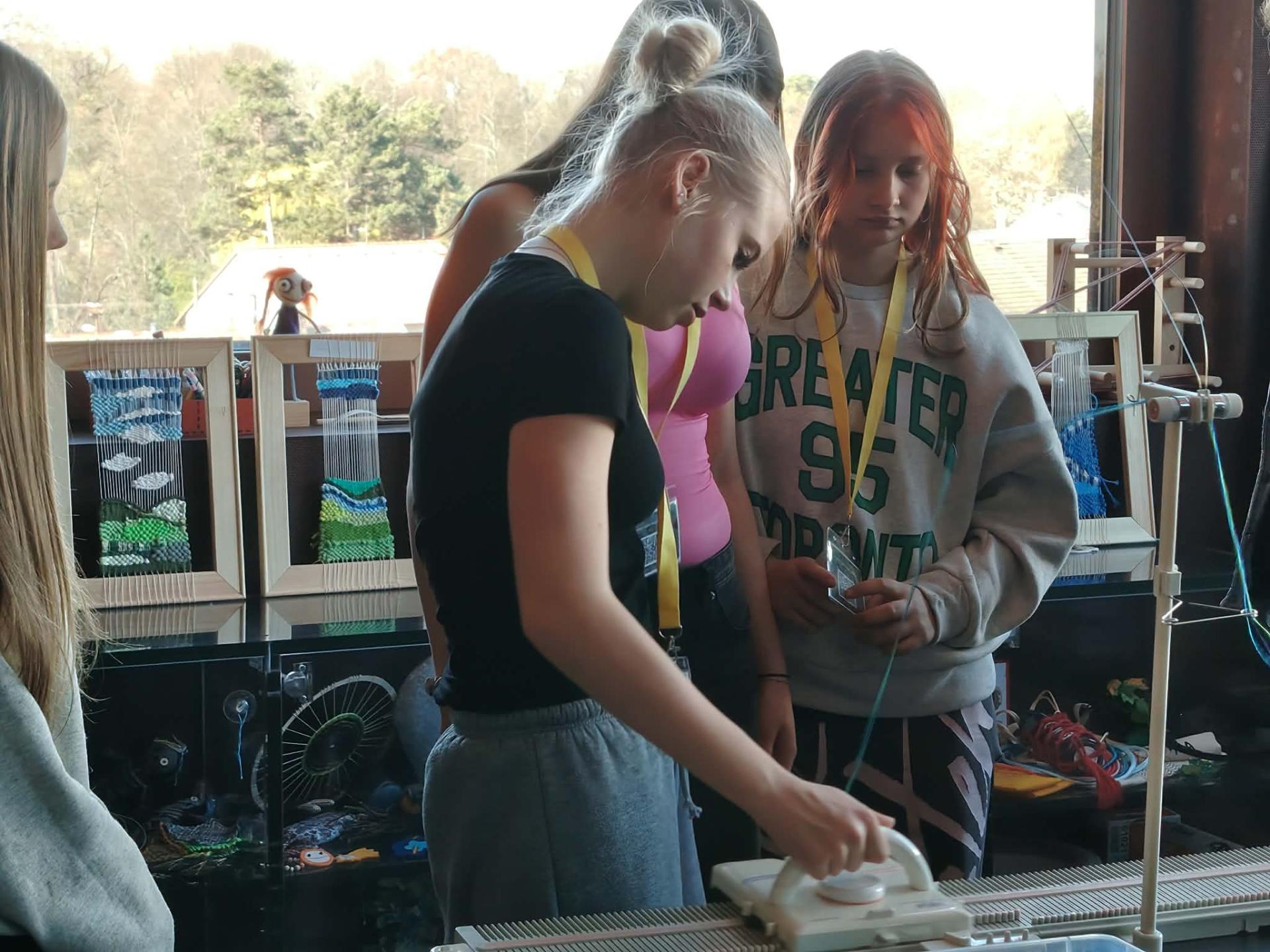 Zkusili jsme si, jak se vyrábí látky pomocí kolovratu, tkalcovského stavu nebo na pletacím stroji.