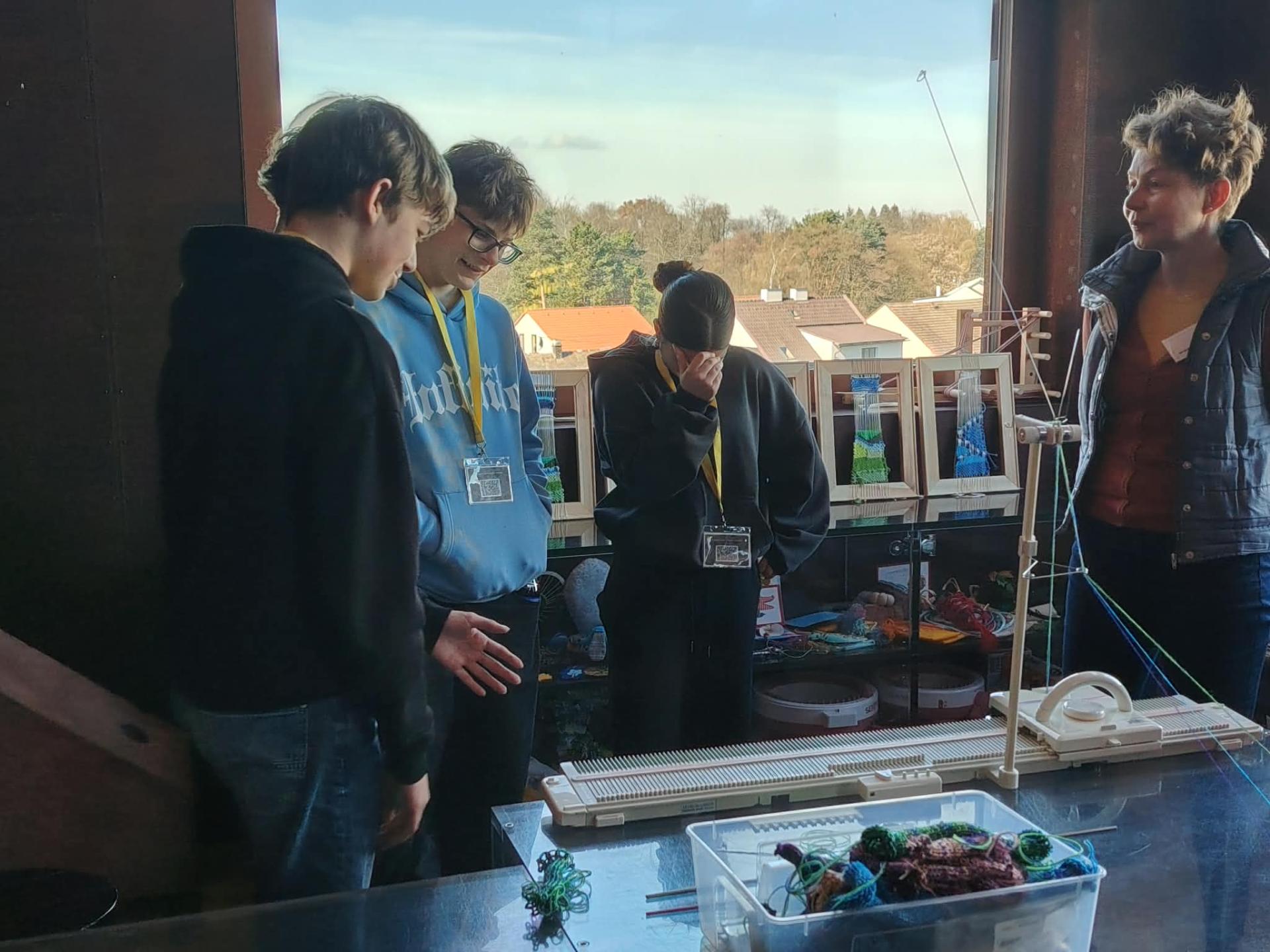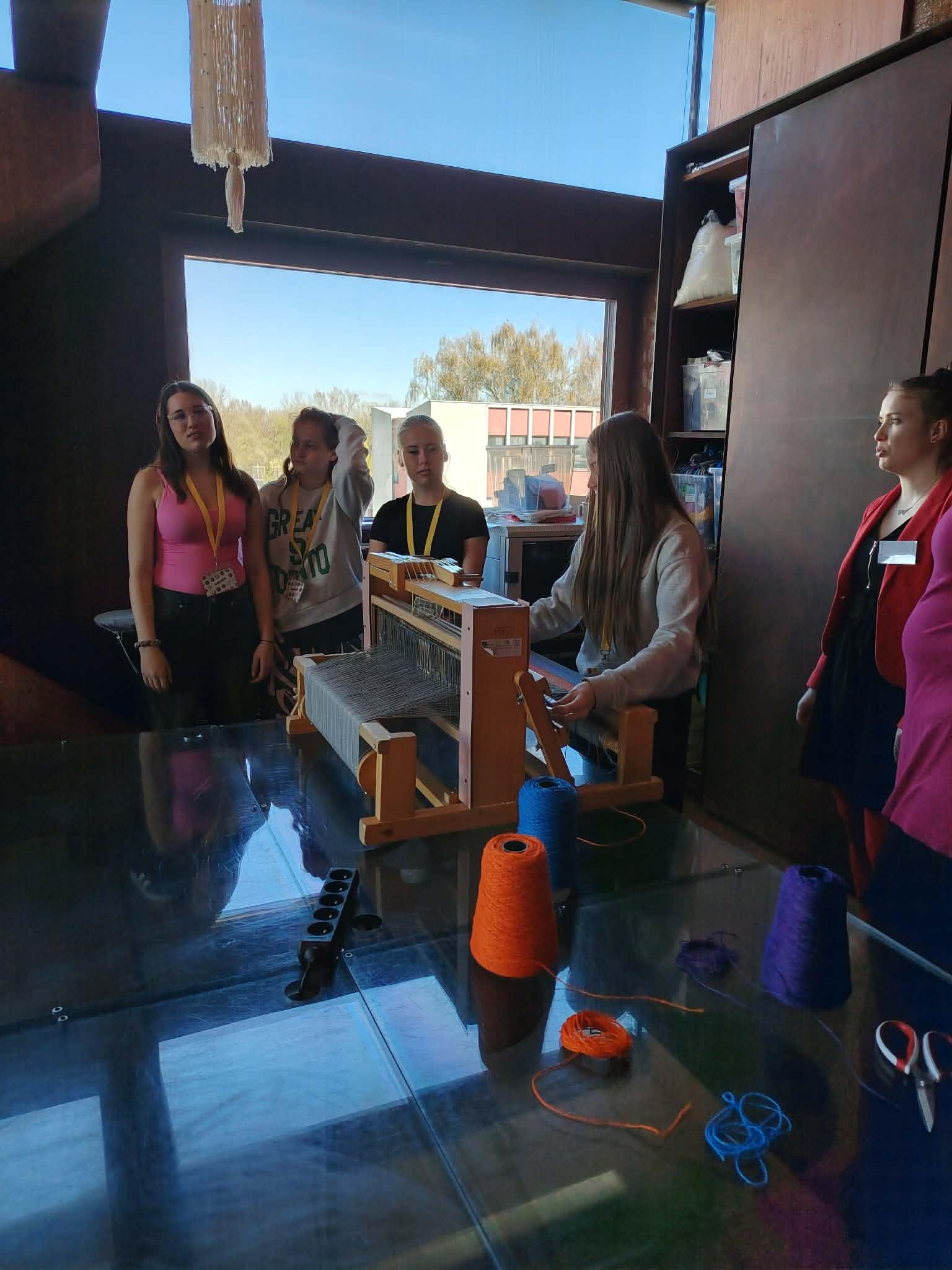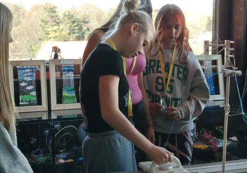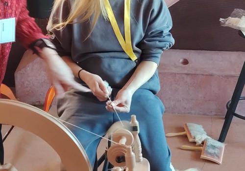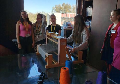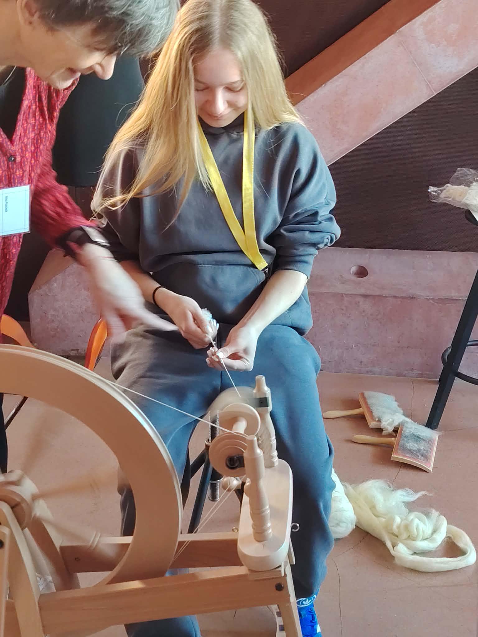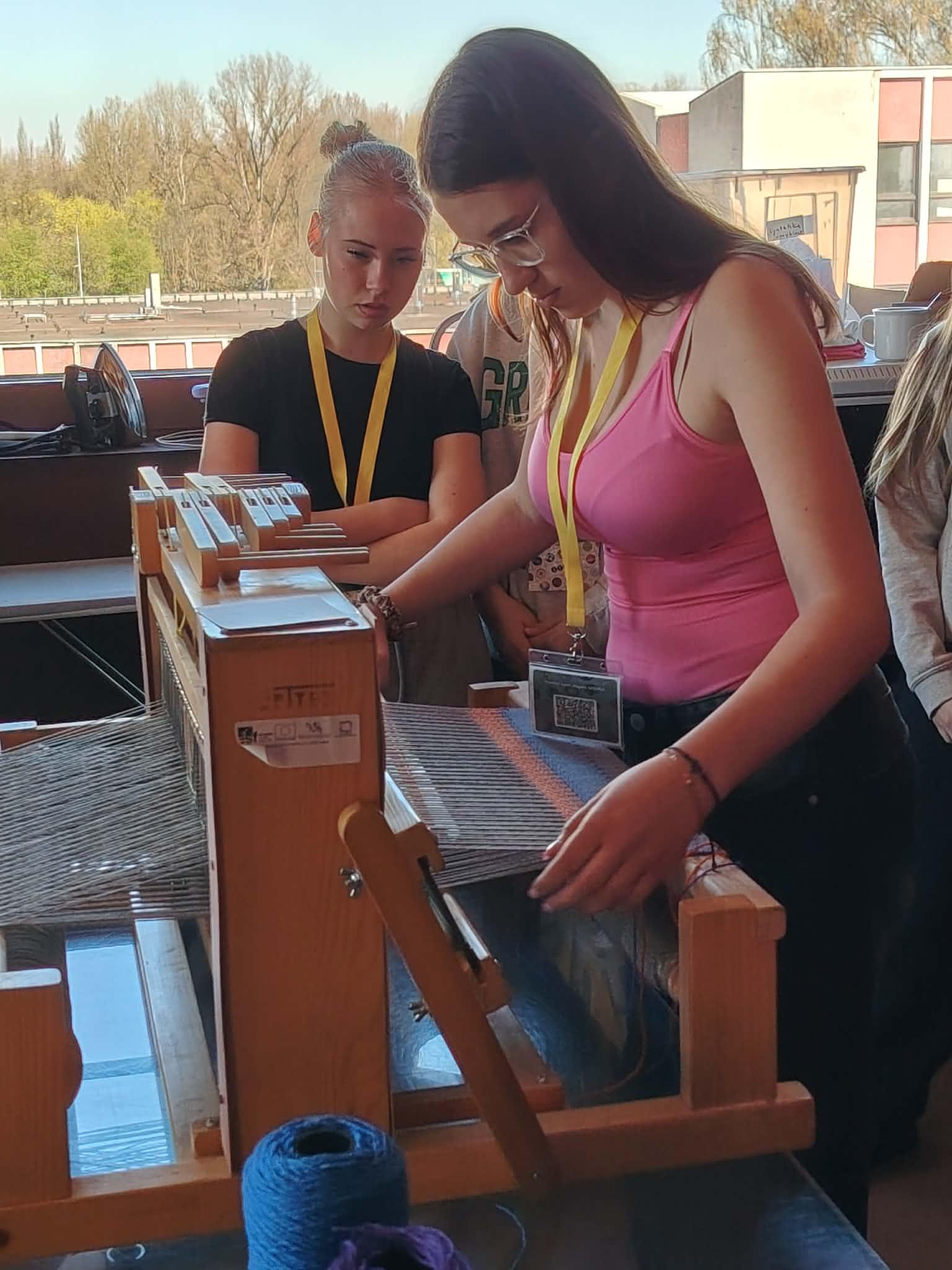 Zkusili jsme si, jak se vyrábí látky pomocí kolovratu, tkalcovského stavu nebo na pletacím stroji.