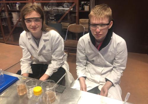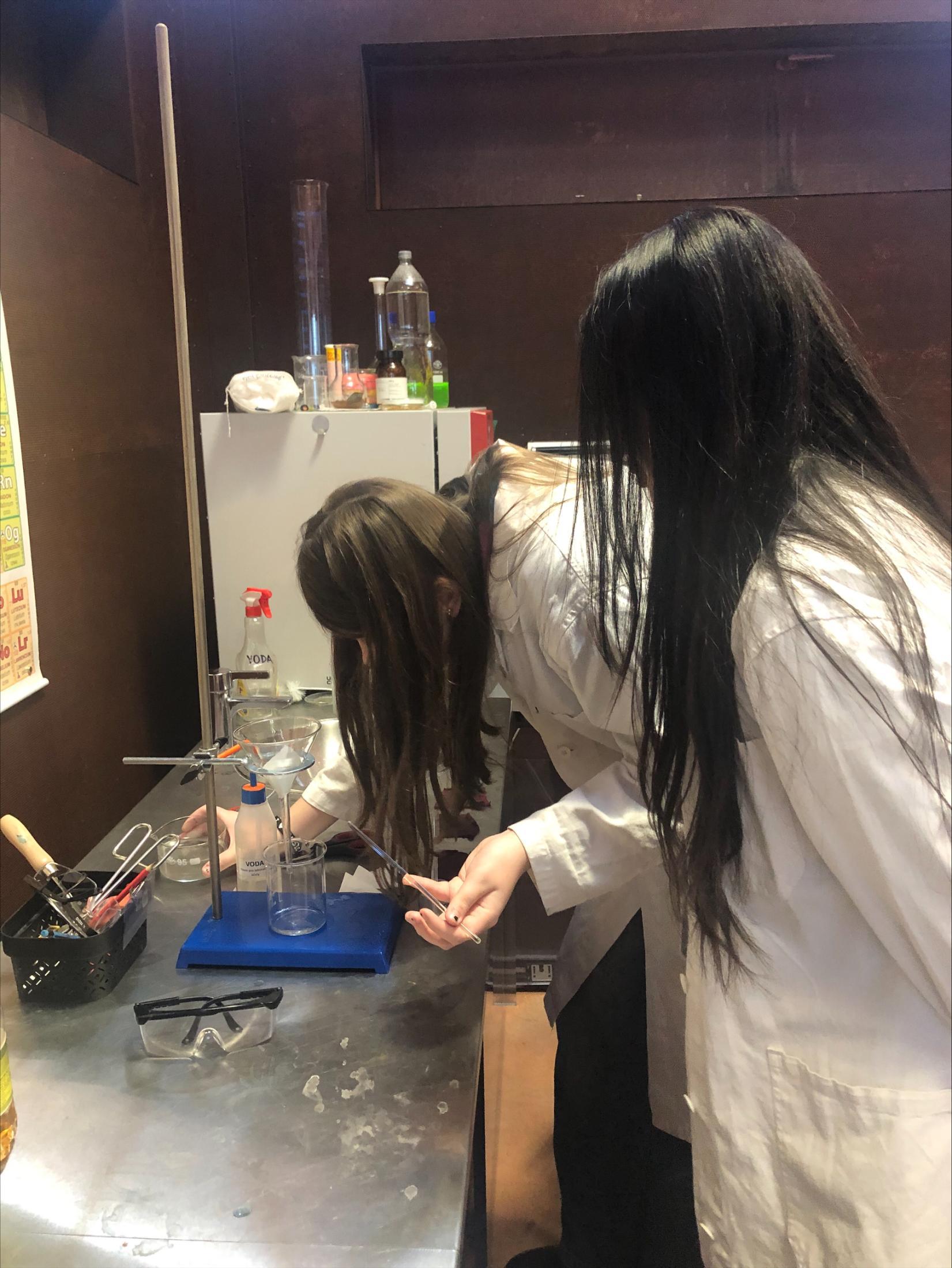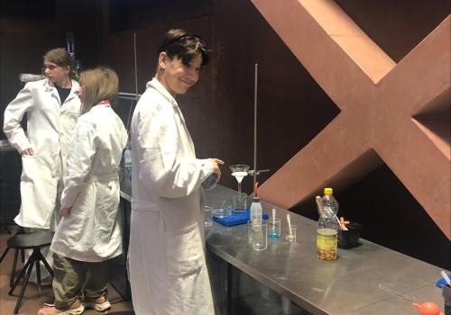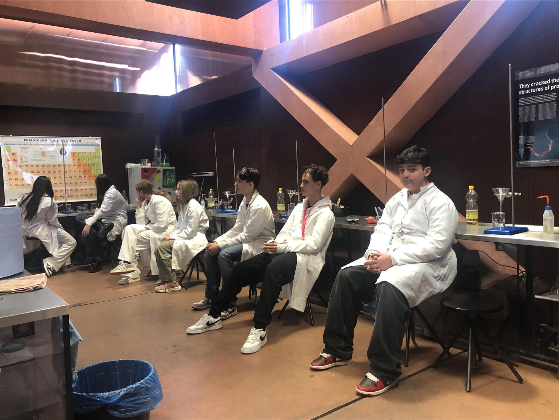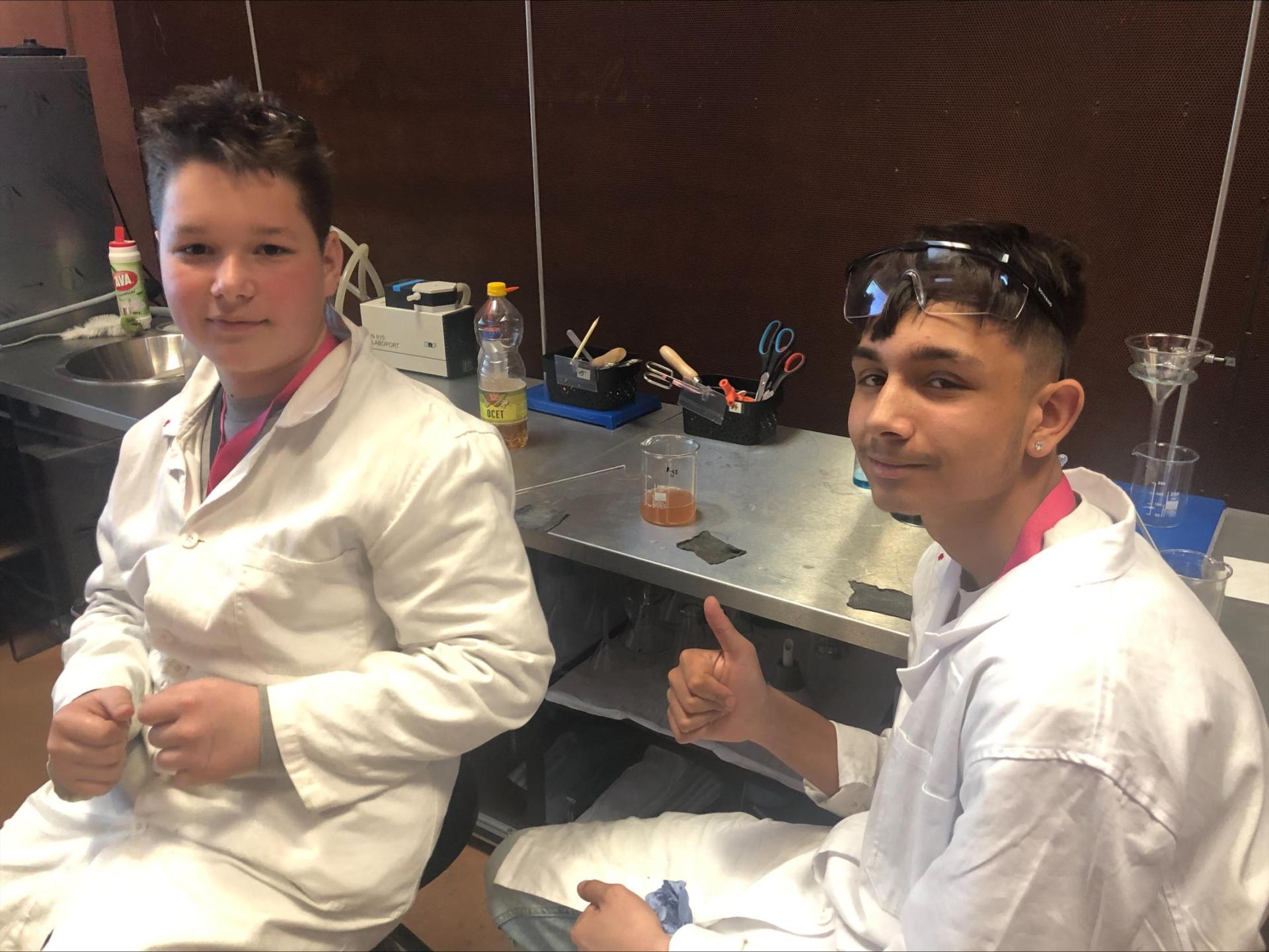 Dostali jsme 3 kousky látky, na které se daly kapky oleje, výluhu z červeného zelí a sypké kakao. Vše se „pralo“ v připravených roztocích. Nejčistší byla látka ze zásaditého, nejhůře dopadl kyselý roztok. Nakonec jsme si prohlédli zbylé roztoky po praní – plavala v nich textilní vlákna.