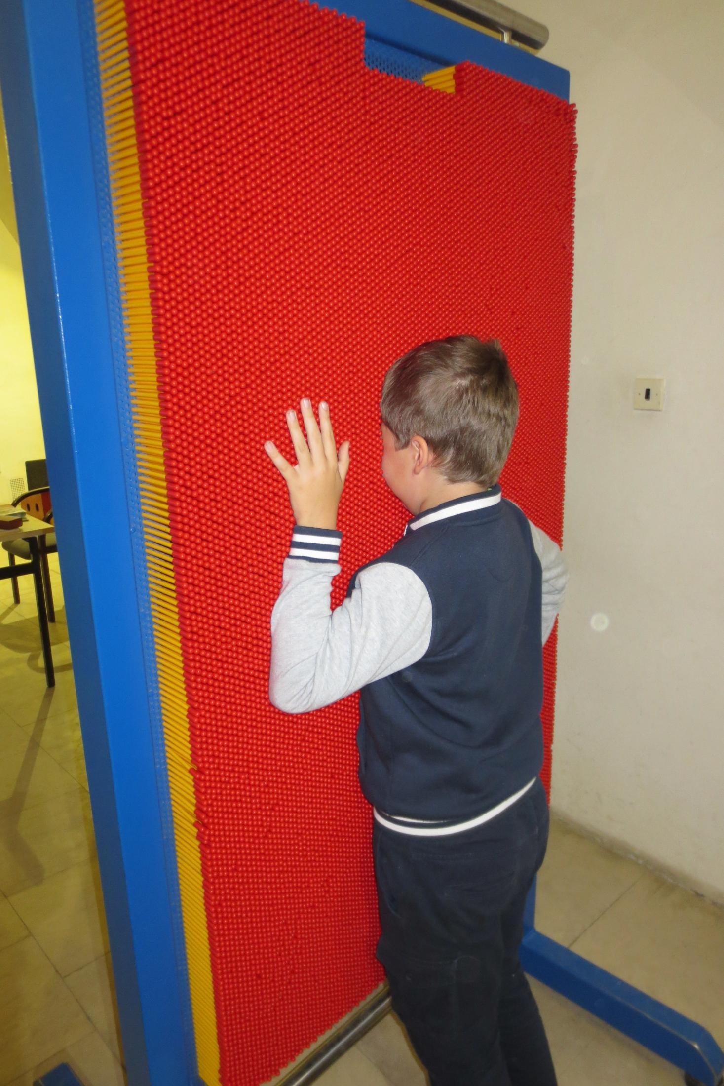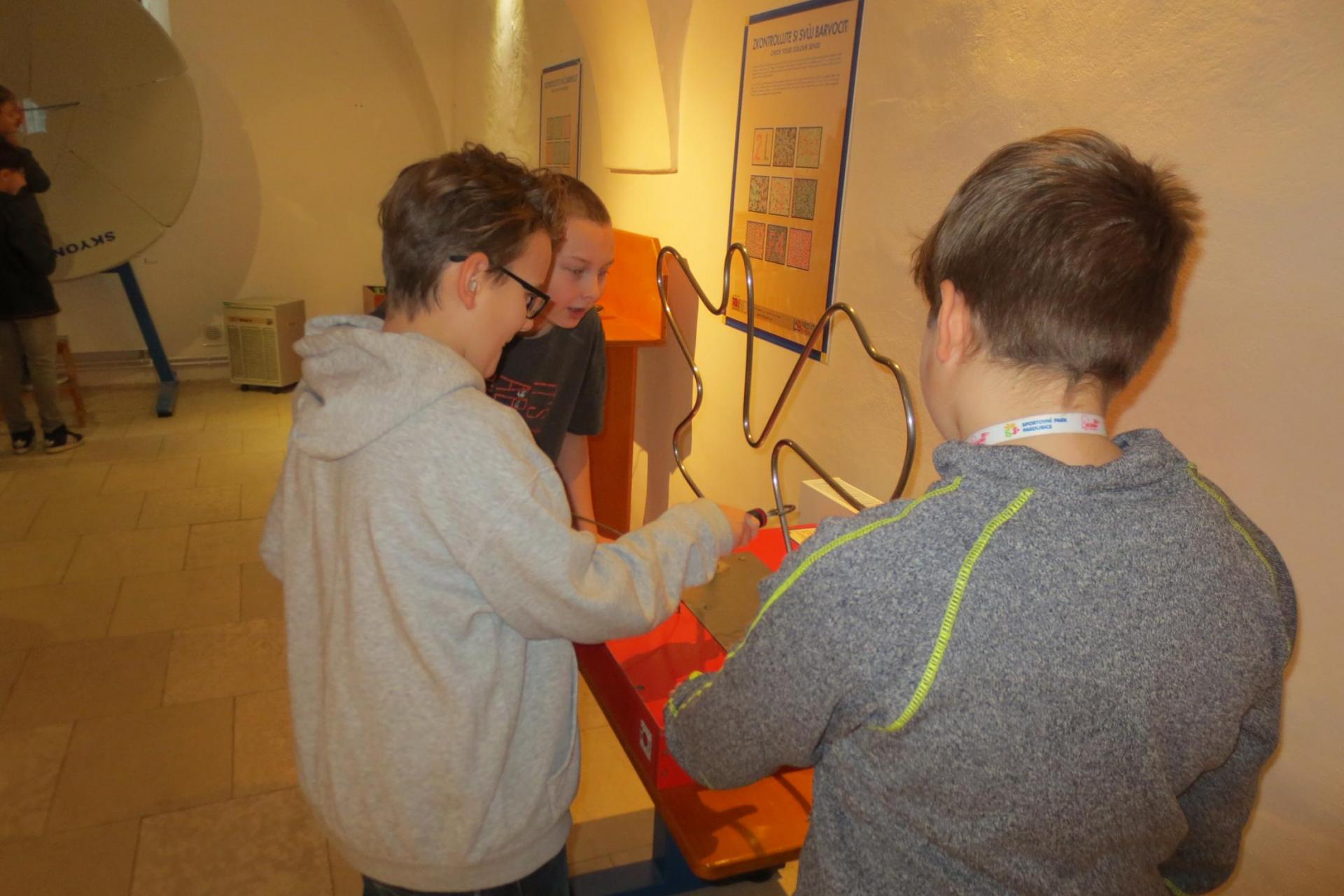 Mezi exponáty nechybí experimenty se zvukem, zrcadly, skly a barevnými klamy, takzvaná černá díra nebo rám s tisíci kolíků, do kterého lze obtisknout ruce, hlavu či celé tělo a vytvářet nejrůznější obrazce.