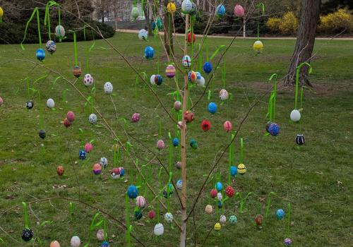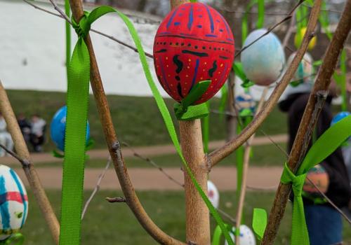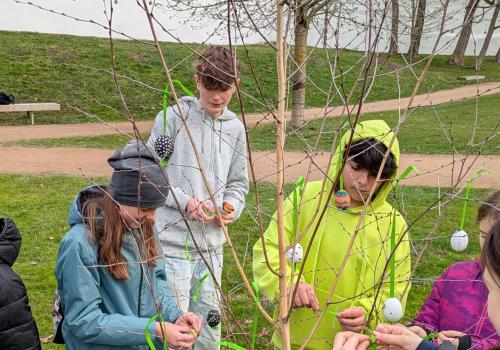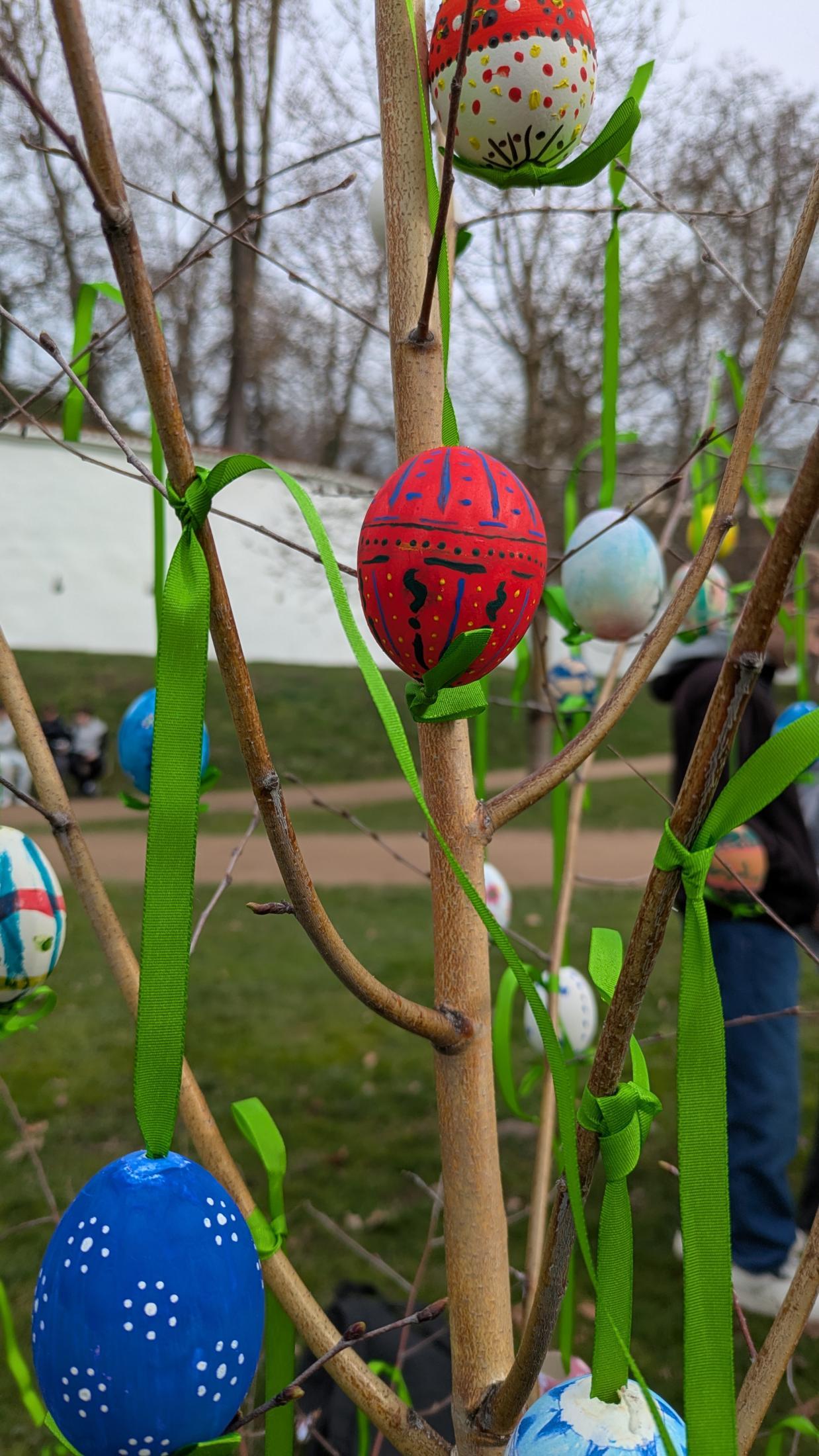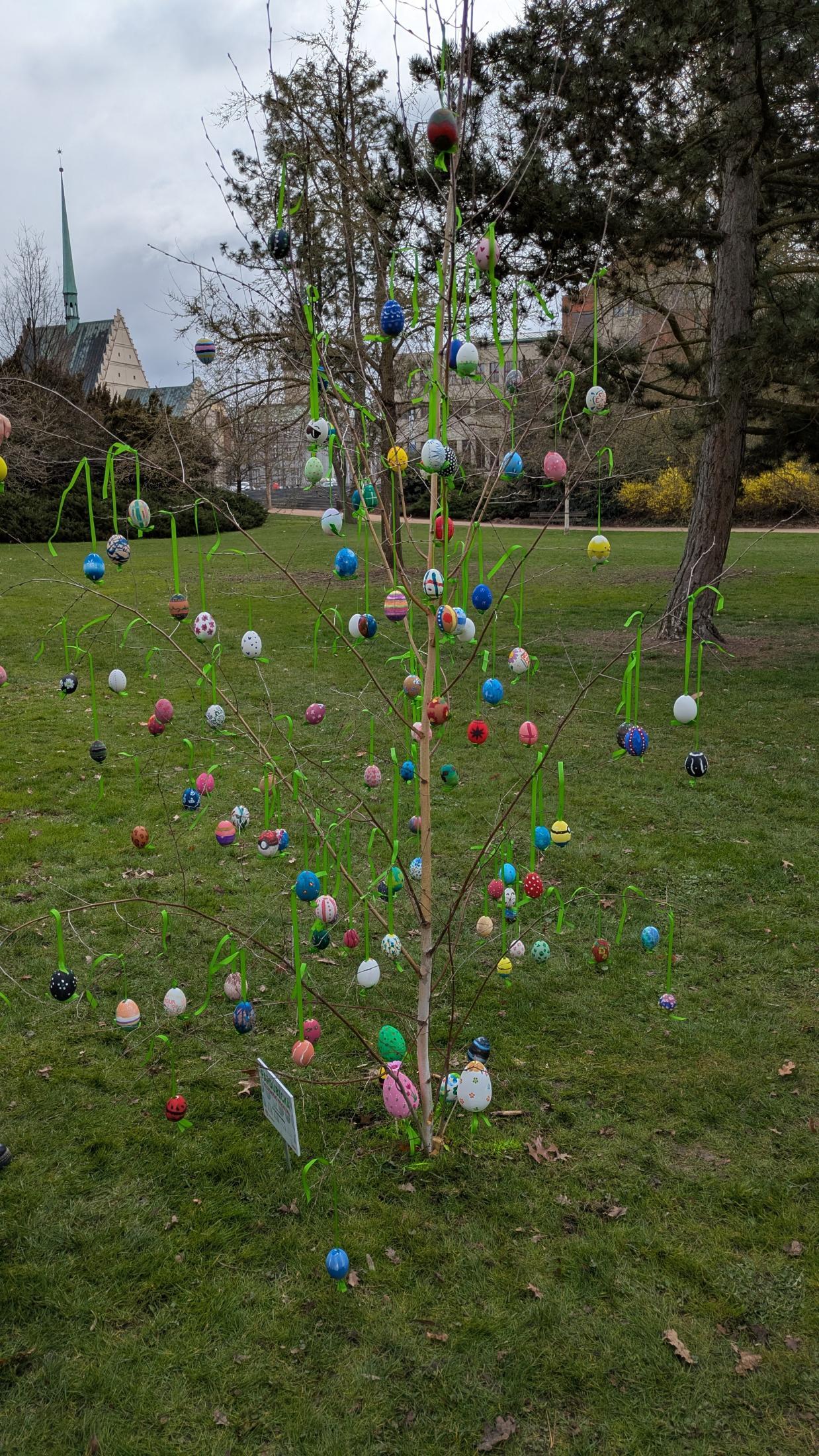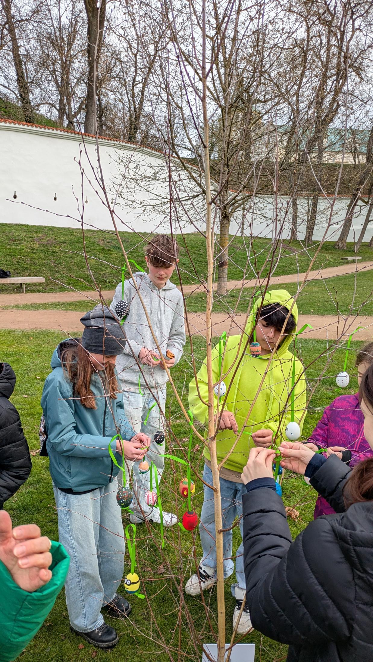 Dne 26. března jsme v Tyršových sadech nainstalovali velikonoční vajíčka. I když bylo počasí chladné, akci jsme si užili. Původně plánovaný piknik se sice nekonal v takovém rozsahu, v jakém by byl za slunečného počasí, ale na svačinkách, jež jsme měli s sebou, jsme si pochutnali. Navíc jsme dostali za odvedenou práci perník. A to se počítá.