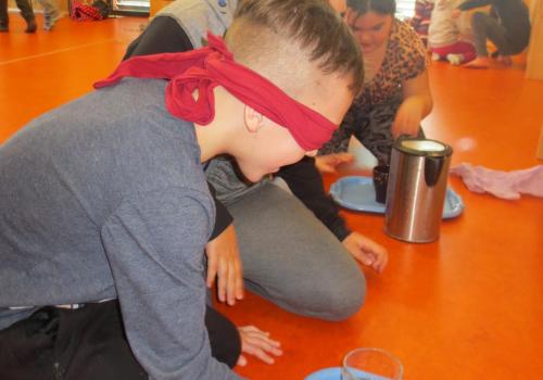 V Ekocentru si děti vyzkoušely několik činností, které musí zvládnout i nevidomí (včetně čtení Braillova písma).