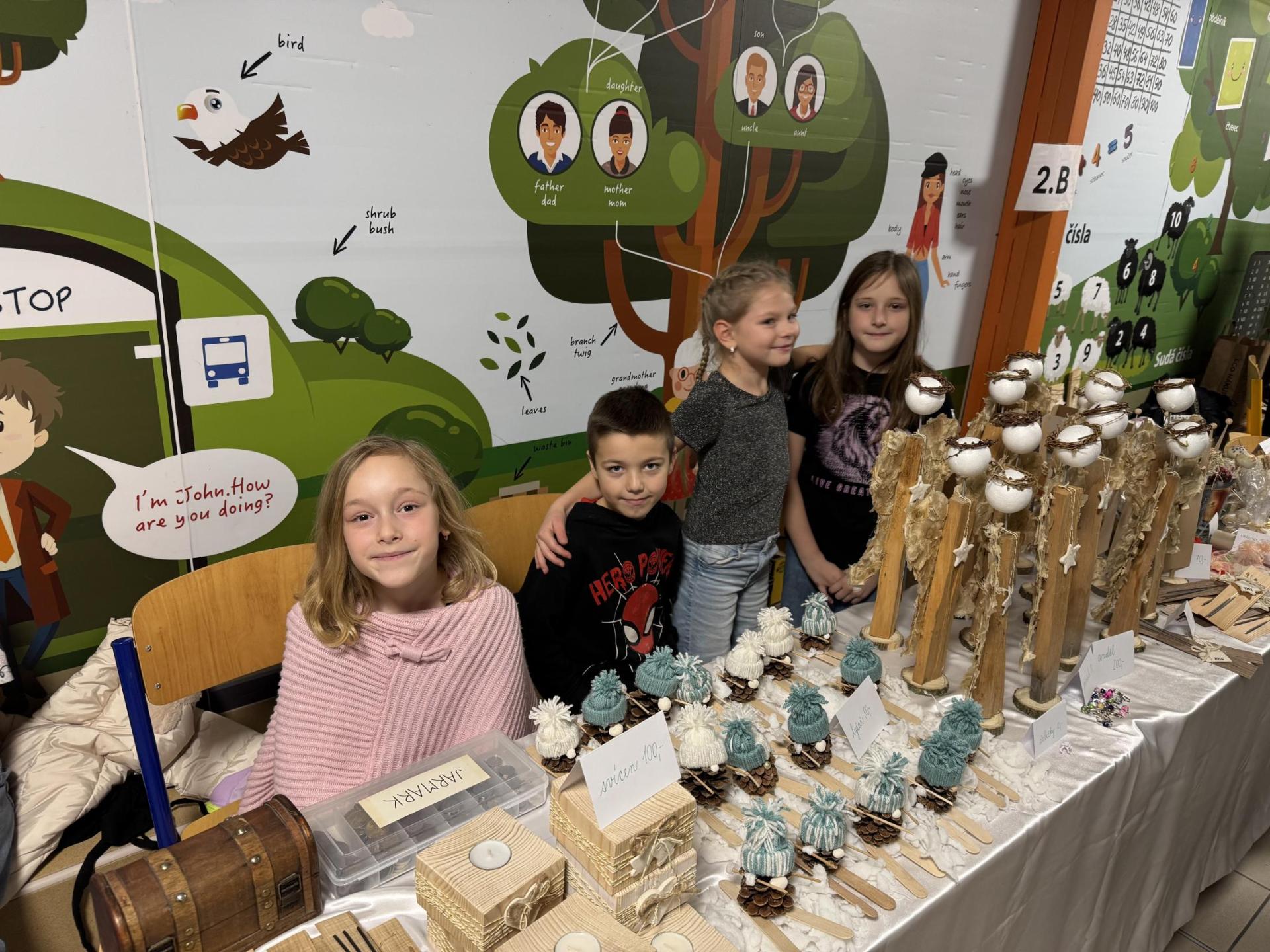 Zástupci třídy prodávali výrobky a vedli si skvěle. Děkujeme všem, co si u našeho stánku něco koupili a podpořili nás.