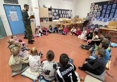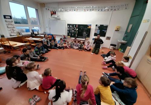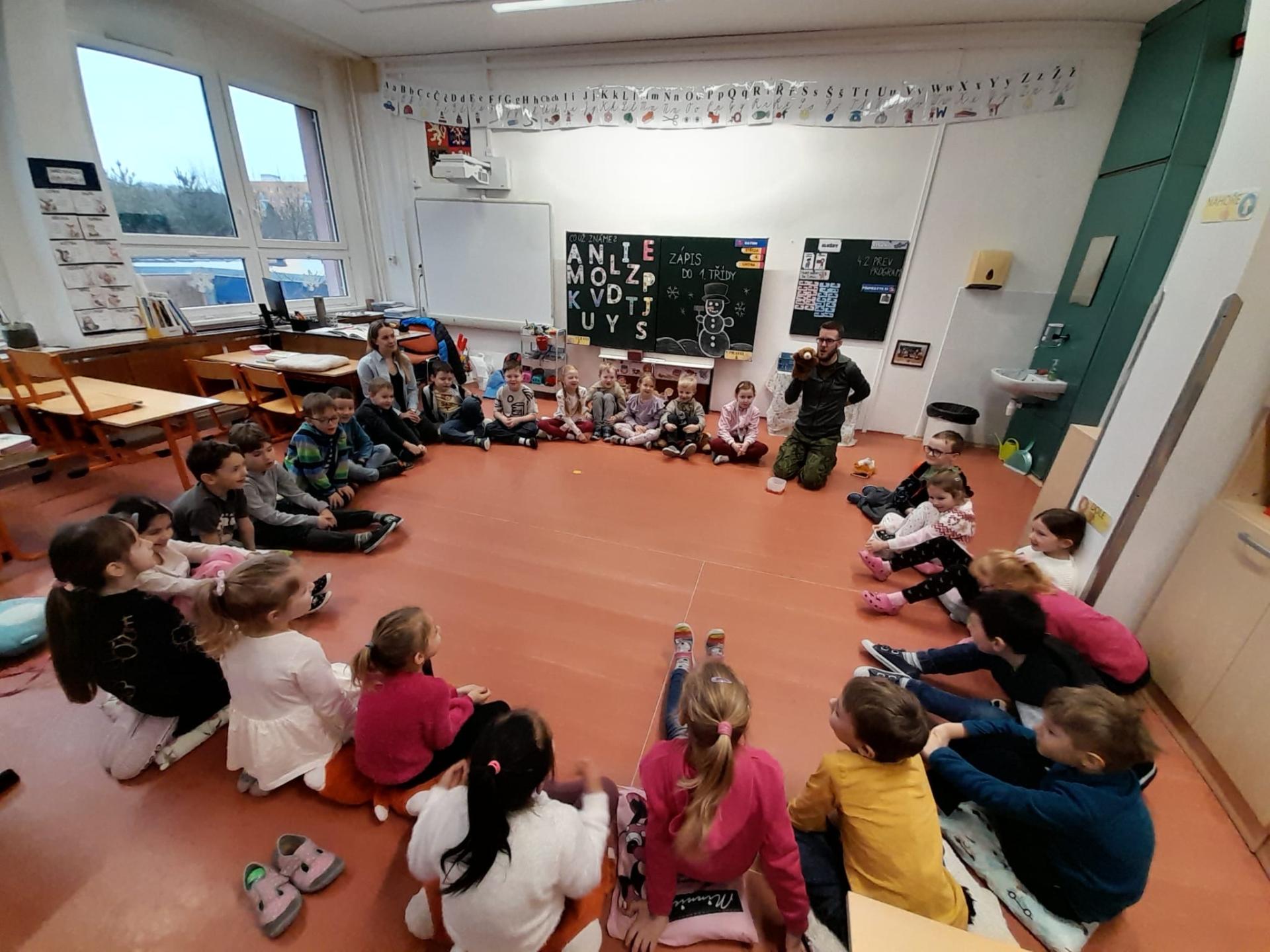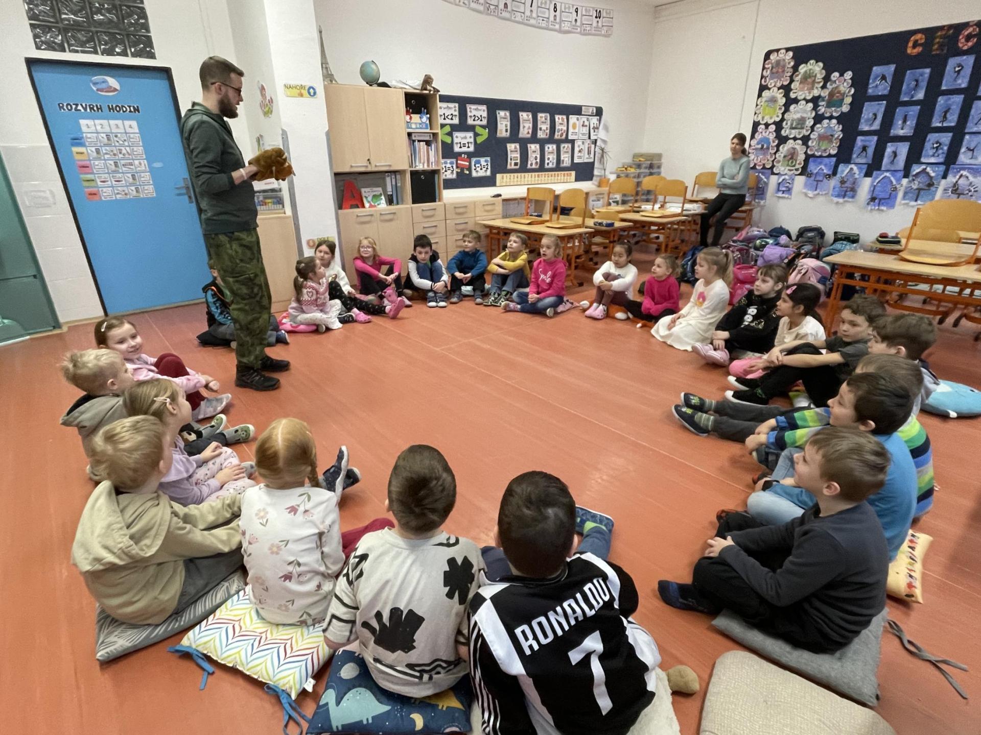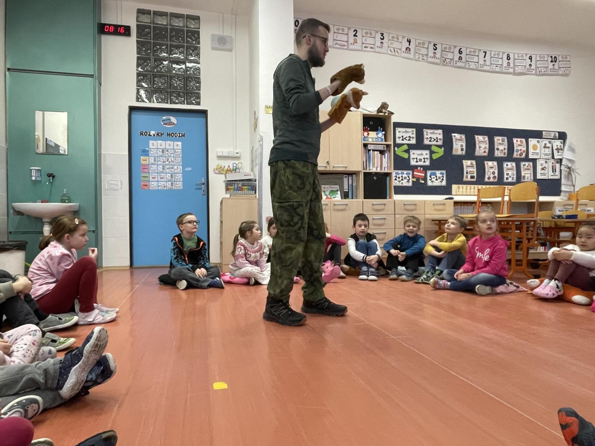 Dnešní dopoledne jsme strávili v příjemné atmosféře preventivního programu s názvem Kamarádem být, kamarády mít. Společně s liškou a medvědem jsme se vydali na dobrodružnou cestu lesem, během které jsme objevovali, co všechno patří k pravému kamarádství.