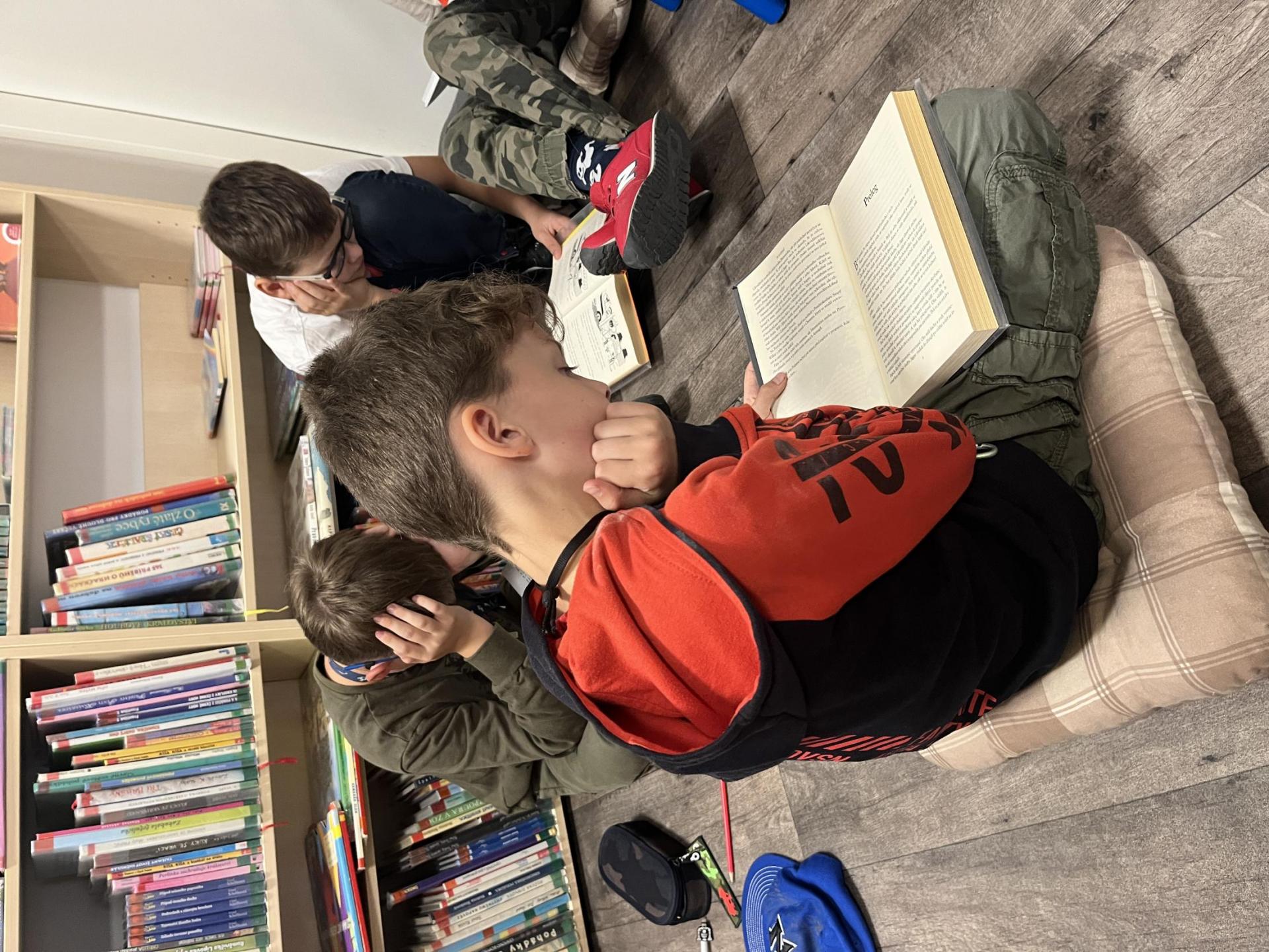 Chodíme na besedy do Krajské knihovny, děláme si čtenářské dílny a dnes jsme si takovou čtenářskou dílnu udělali přímo v knihovně na Dubině. Vybrali jsme si knížky, které nás zaujaly, předvídali jsme, o čem asi budou a pak jsme porovnávali s tím, co jsme přečetli. Uteklo to jako voda a bylo fajn zase číst i někde jinde než ve škole. Některé knížky nadchly tak, že si je možná i někdo vypůjčí domů. ![]()