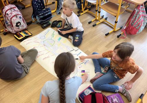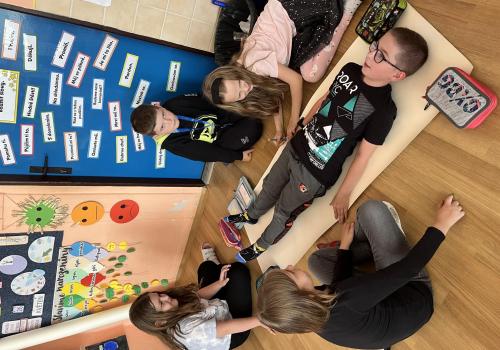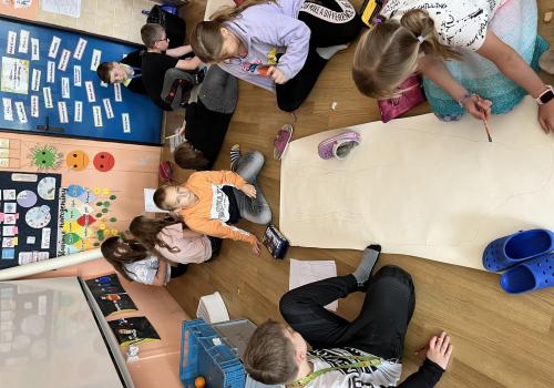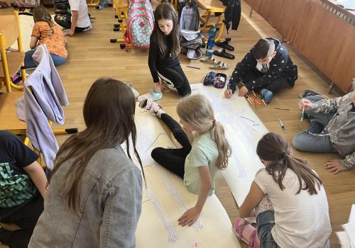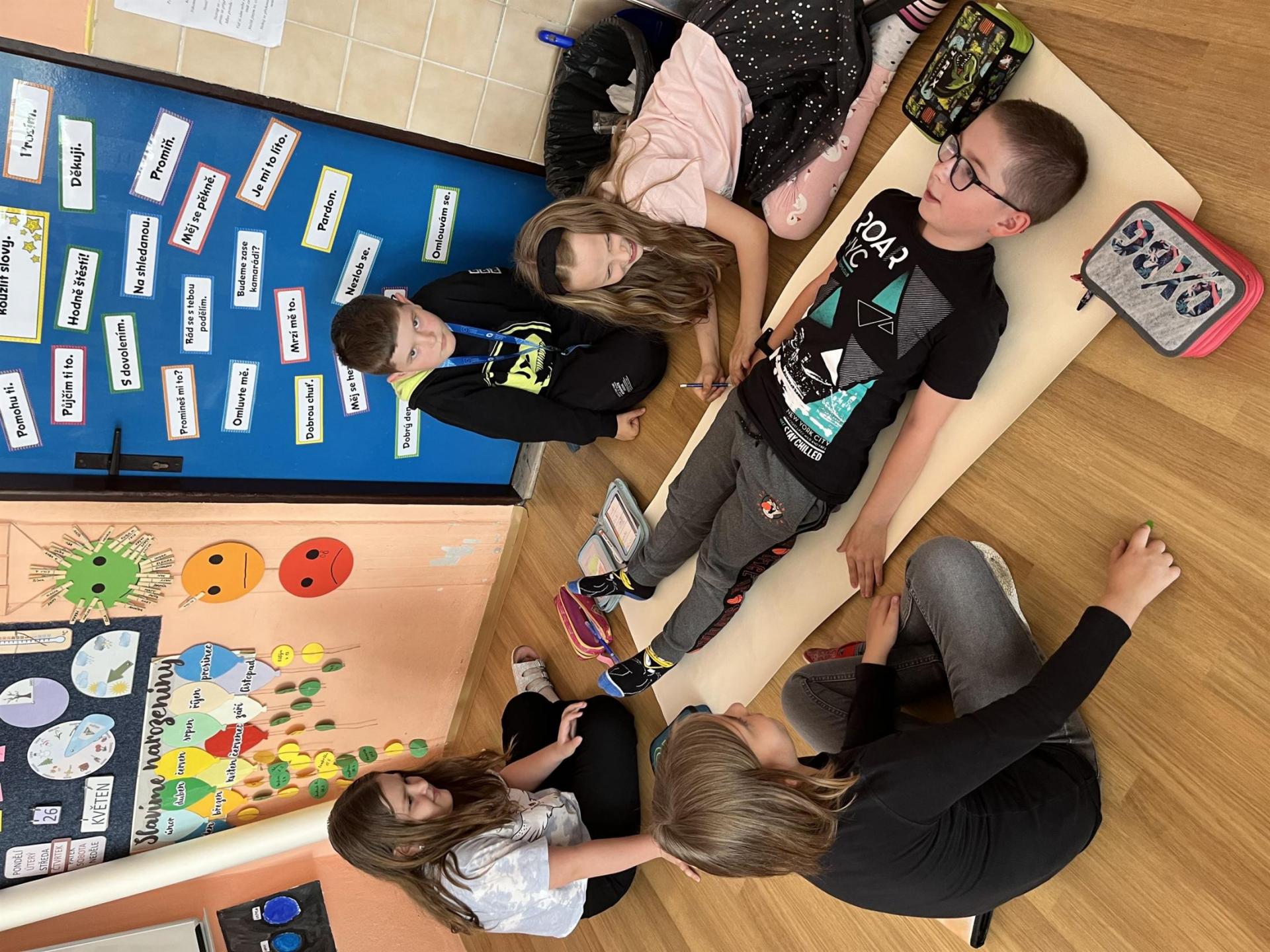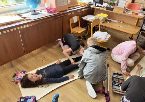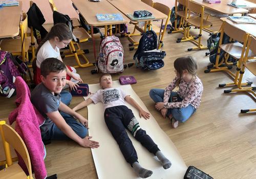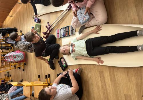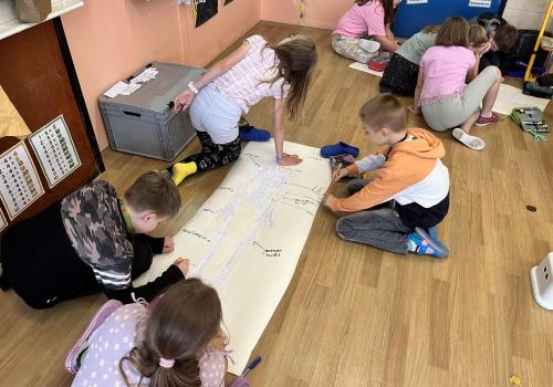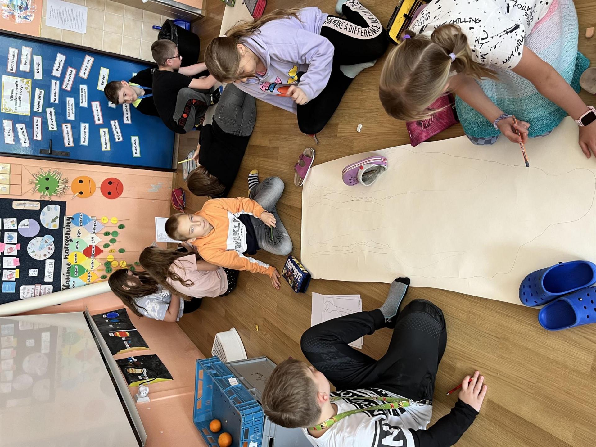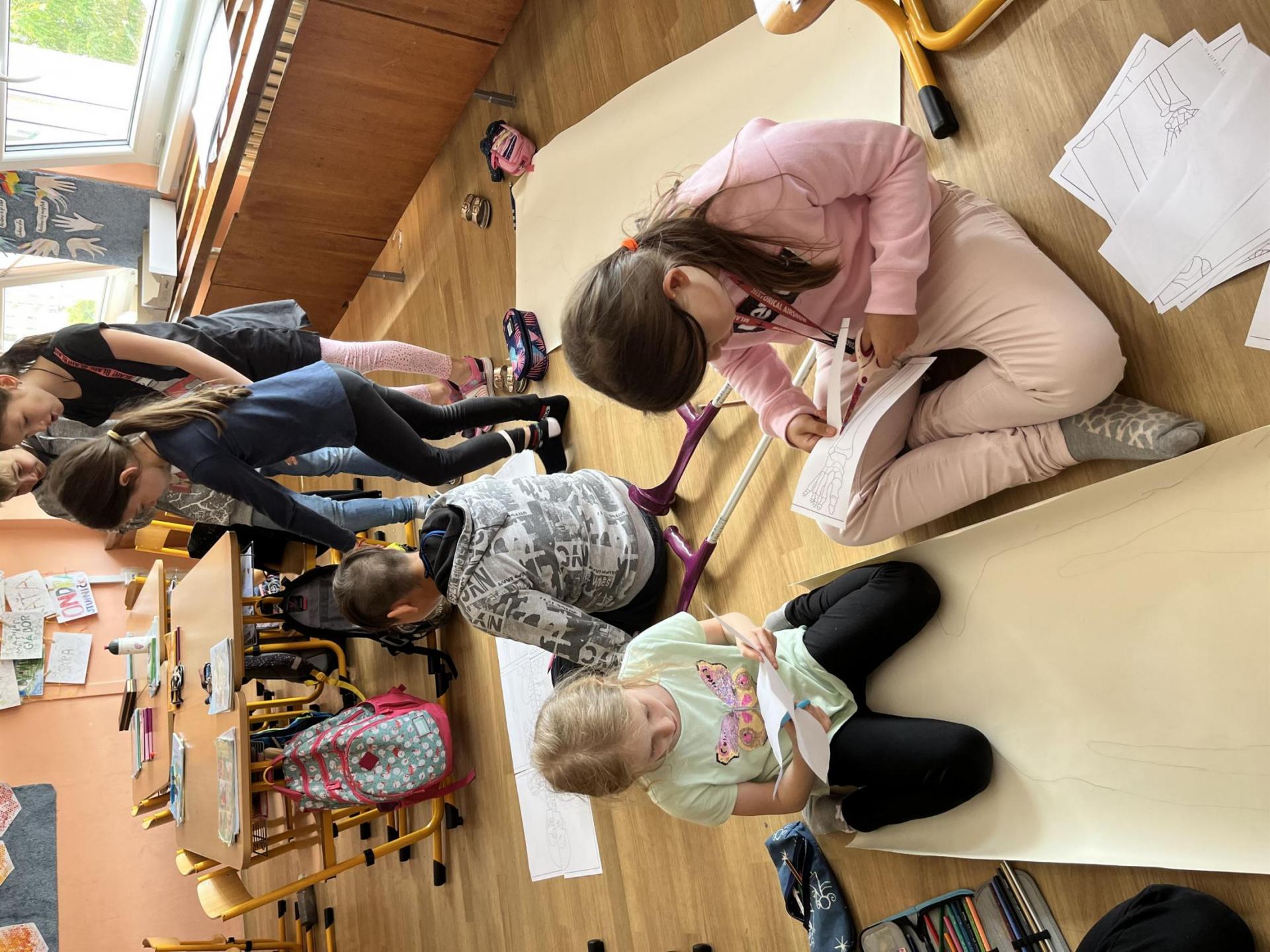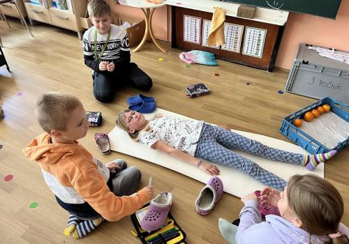 V rámci SKN jsme si vytvářeli ve skupinkách vlastní kostlivce. Obkreslili jsme lidské tělo, sestavili kostru a popisovali části těla.