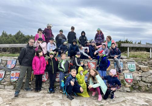 Po vydatné snídani jsme si nabalili svačinky a řízek na cestu a vydali se na celodenní dobrodružství. Čekala nás dlouhá cesta. Hned v tom největším kopci nás zachytit deštík, který ani nebyl na radaru. V pláštěnkách jsme tedy došli k Martinově boudě, kde jsme se posilnili poctivou malinovkou. Pak už nám počasí přálo. Cesta byla pěkná a zavedla nás přes Labskou boudu až k cíli - k Prameni Labe, kde jsme si dali obídek. Dál jsme pokračovali ke Sněžným jámám. Pak začal adrenalin! Vzrušující cesta nadchla i méně nadšené turisty. Pak už jsme jen přes Mužské a Dívčí kameny došli zpět k naší chatě. Nečekaně vysvitlo i sluníčko. Někteří máme pěkně červené tvářičky.