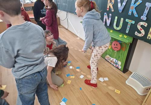 Po třídě byly rozmístěny kartičky se slovy, které byly rozděleny podle barevného kódu. Úkol dětí byl jasný: