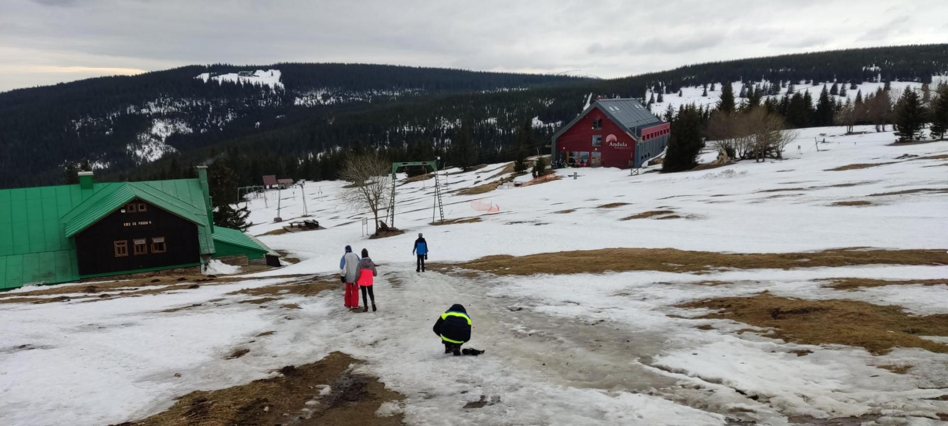 A je tu poslední den pobytu na horách... Dnešní den byl bohužel ve znamení deštivého počasí a mokrého sněhu. Dopoledne jsme museli tedy rychle vymyslet náhradní program za lyžování, protože po poměrně teplé noci na sjezdovce zůstaly jen zbytky sněhu. Po pokojích opět proběhlo pár soutěží ve vymýšlení slov a také soutěž jednotlivců v internetové hře „Kahoot“. Před obědem s kuřecím řízkem a kaší jsme vyrazili ještě na procházku k hezkému výhledu na Herlíkovice. Po poledním klidu jsme se chystali dojít do bufetu „Na rozcestí“ na něco dobrého, ale deštivé počasí nám to nedovolilo a museli jsme se předčasně vrátit. Pak už jsme začali pomalu balit lyže a naše zavazadla. Večer proběhlo závěrečné vyhlášení všech soutěží a zhodnocení lyžařského kurzu. Nesměla chybět ani závěrečná diskotéka.