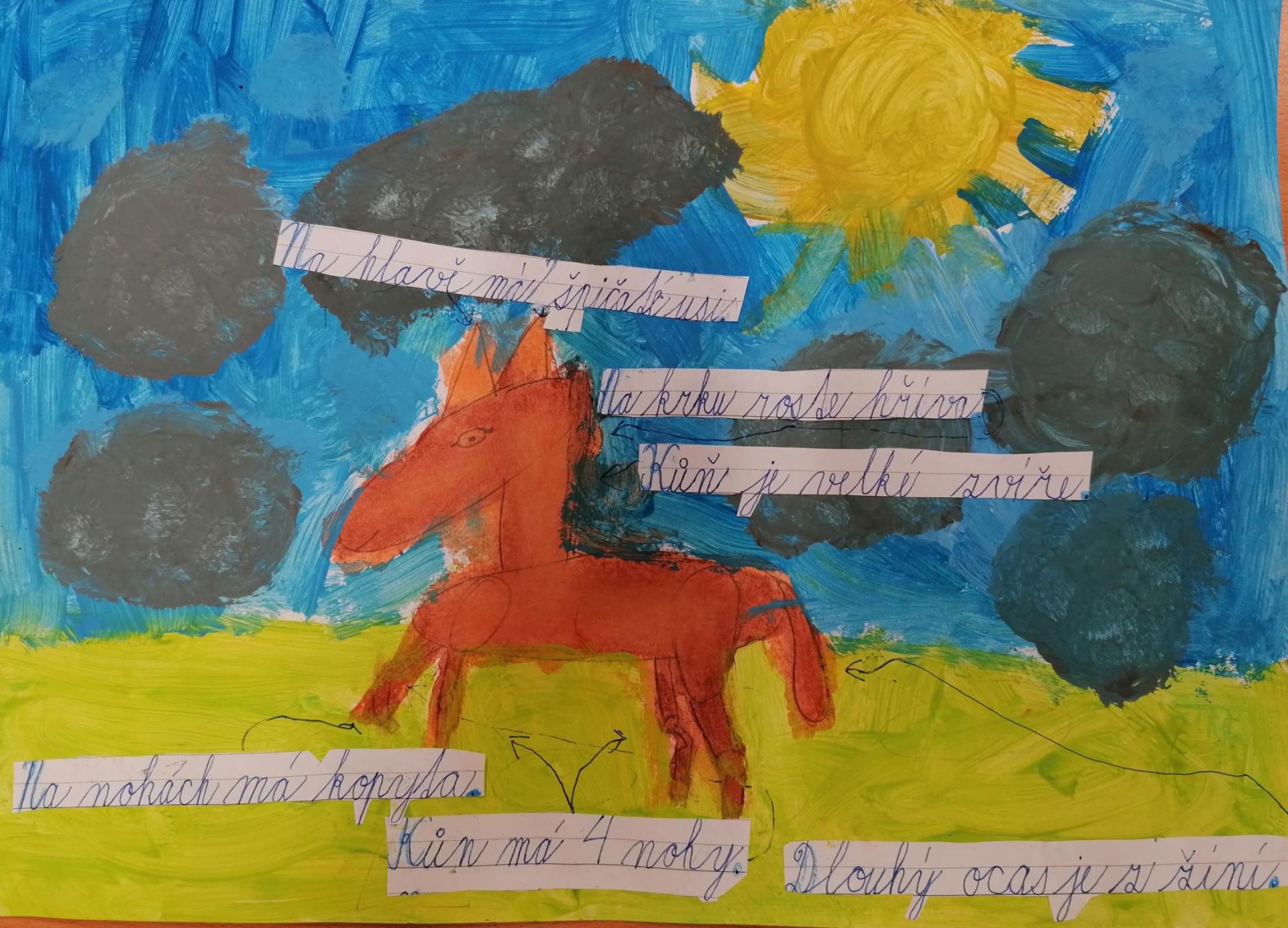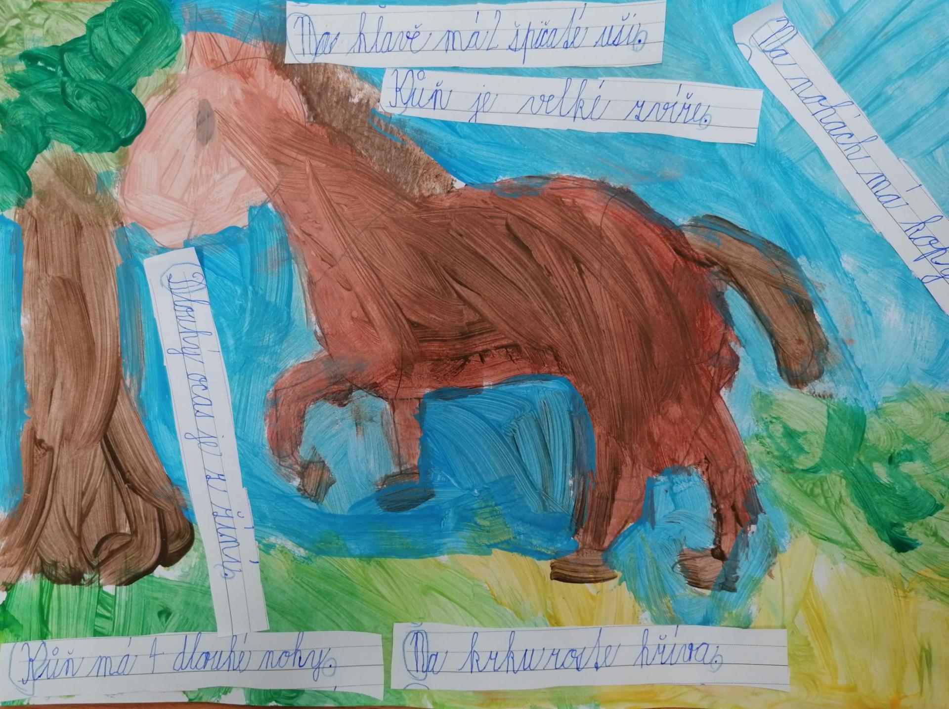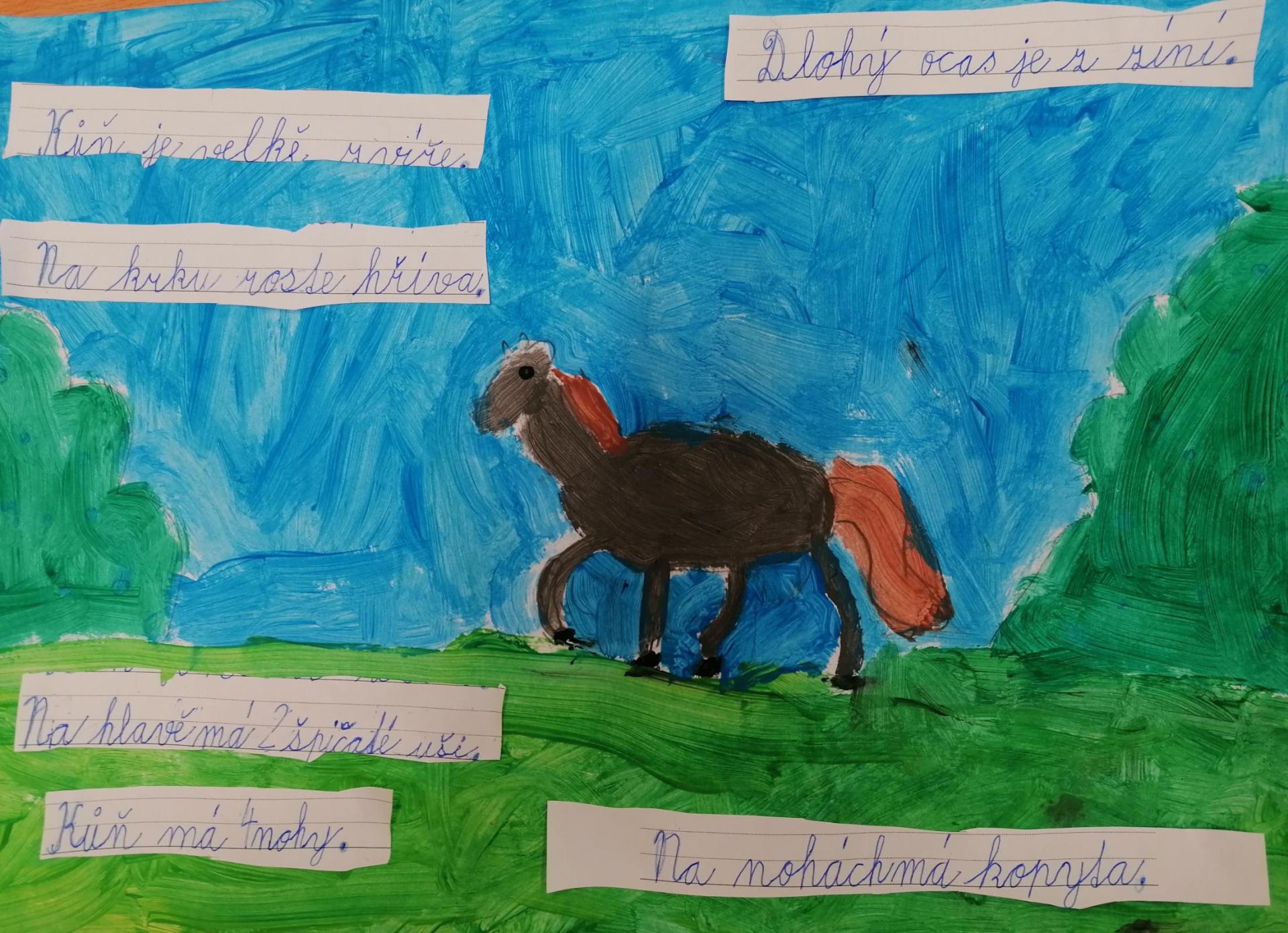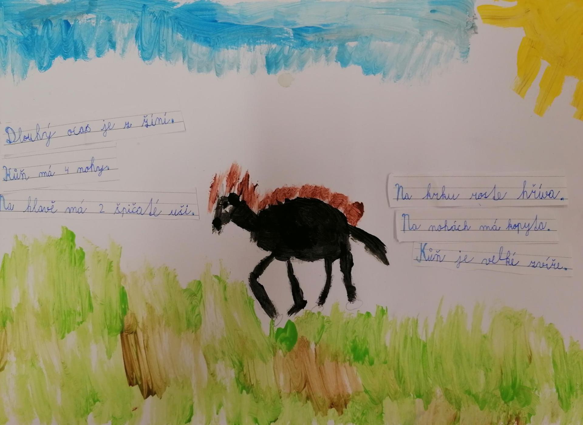 Namalovat koně? To není nic jednoduchého. Připravili jsme se na to. Napsali jsme si pár vět o tom, co by koníkovi nemělo chybět. Koně se nám povedli (až na pár nedostatků), malování nás bavilo moc.