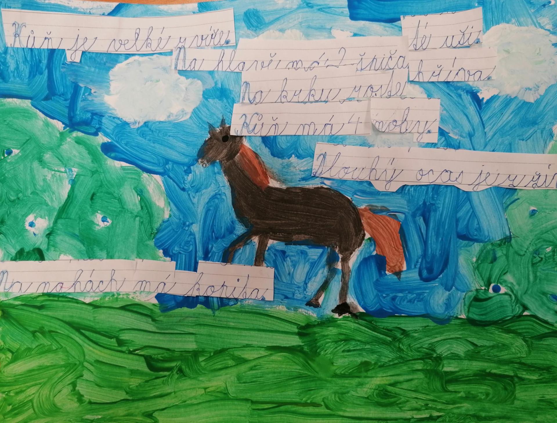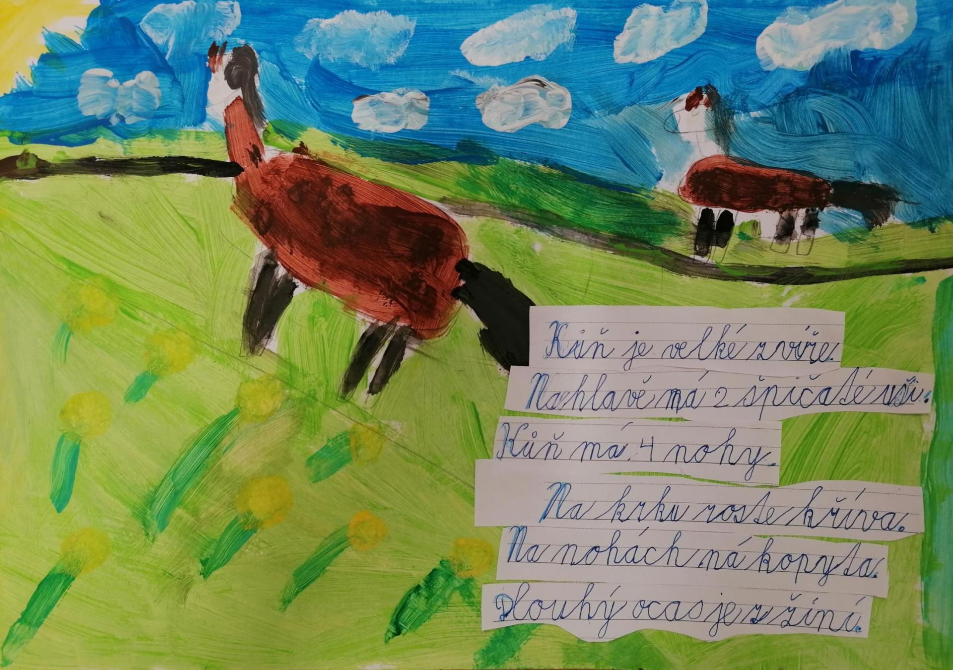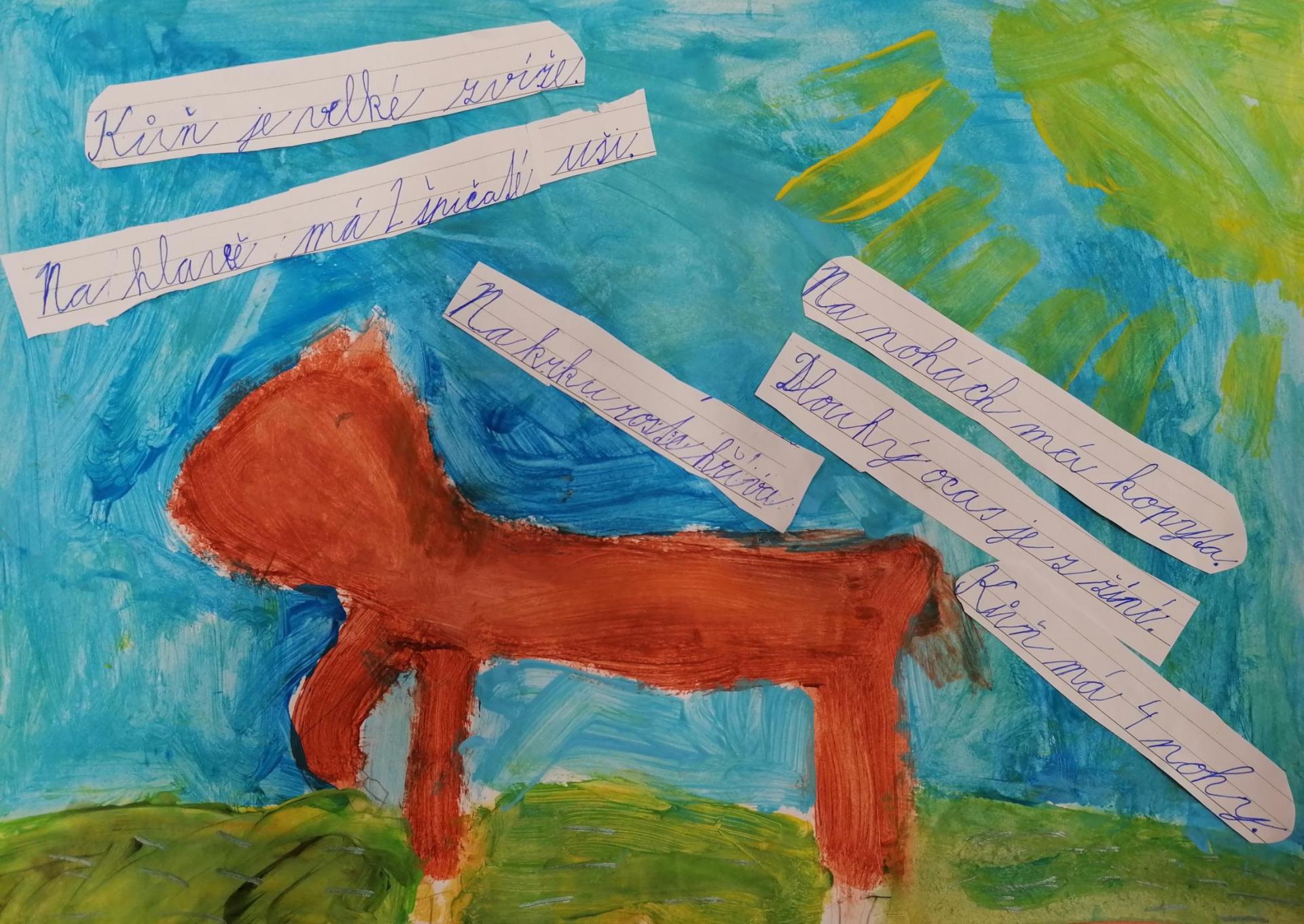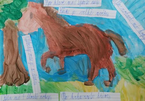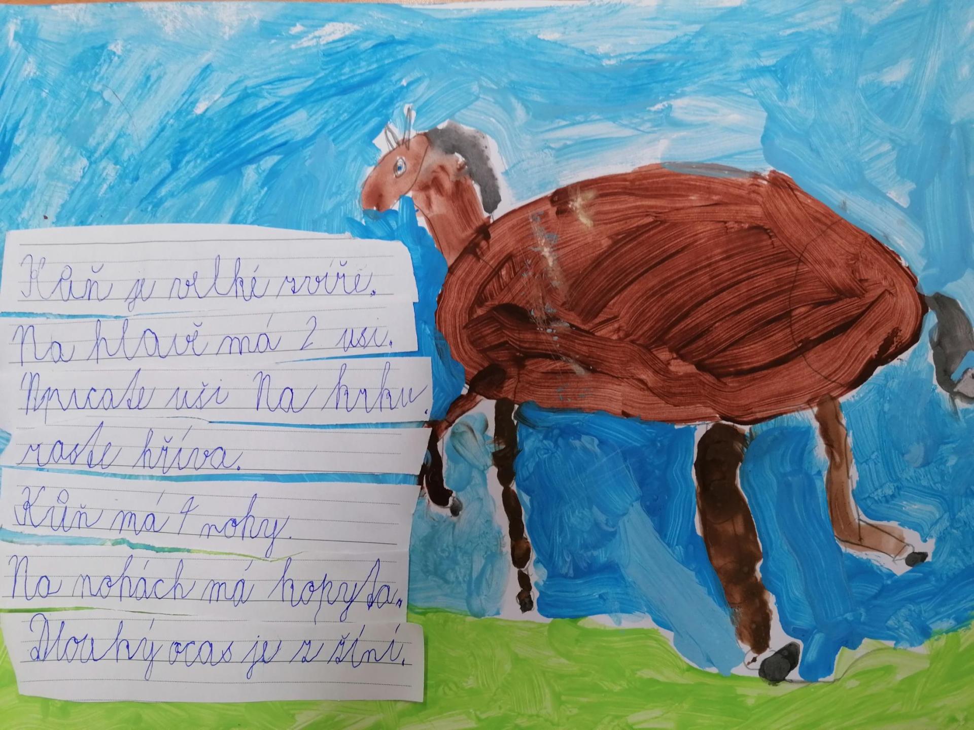 Namalovat koně? To není nic jednoduchého. Připravili jsme se na to. Napsali jsme si pár vět o tom, co by koníkovi nemělo chybět. Koně se nám povedli (až na pár nedostatků), malování nás bavilo moc.