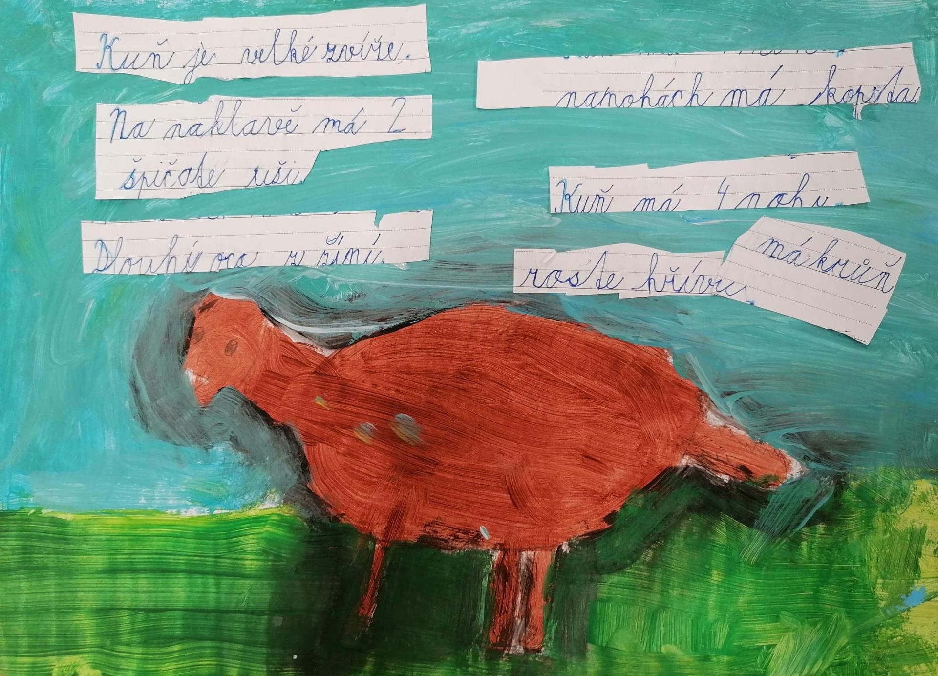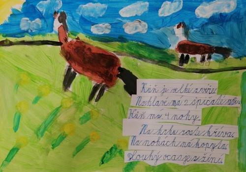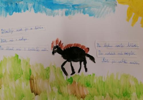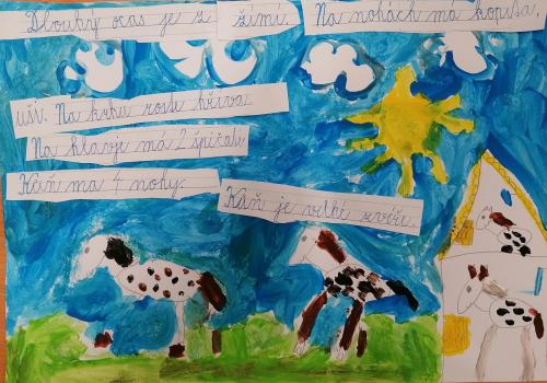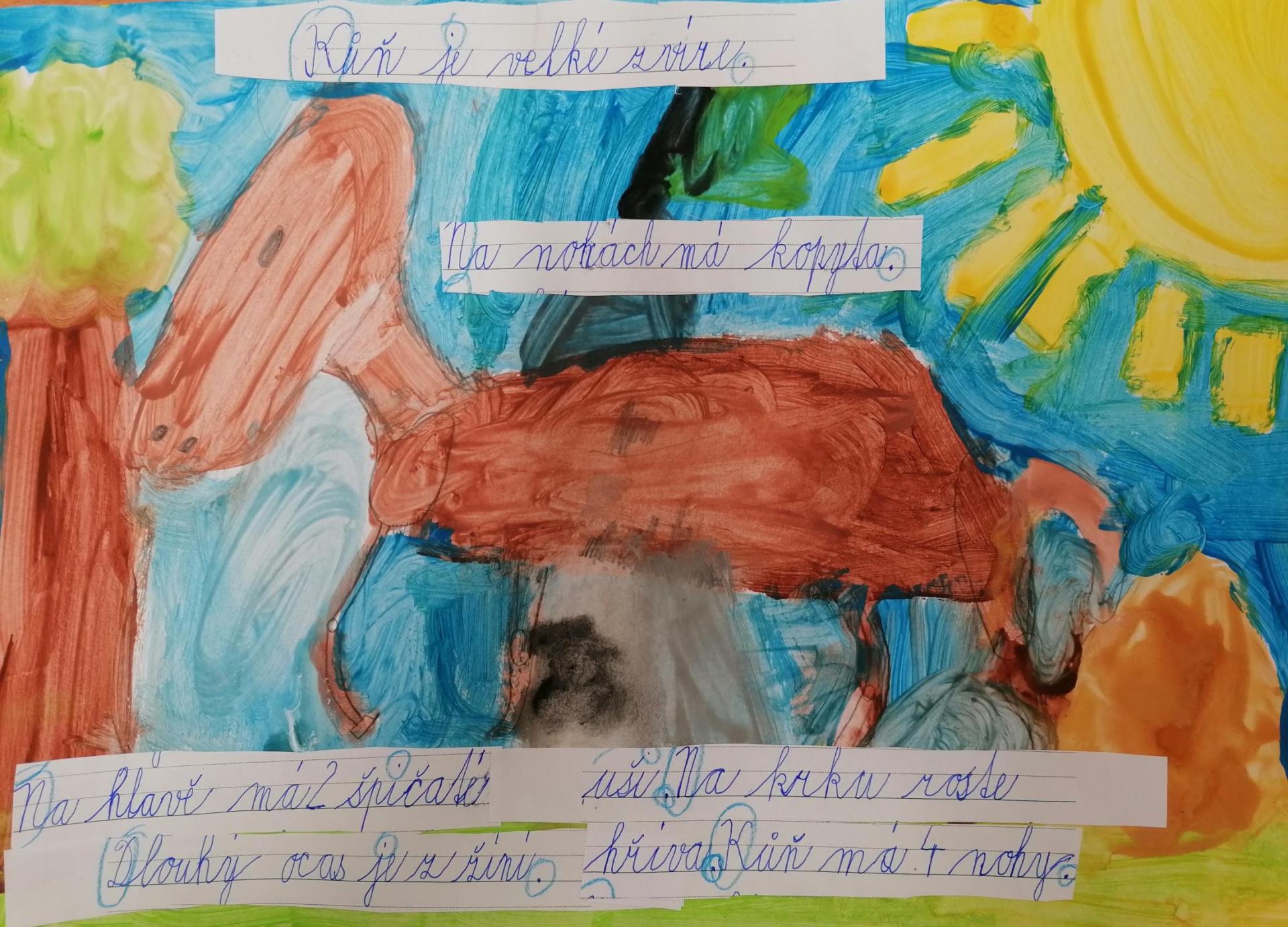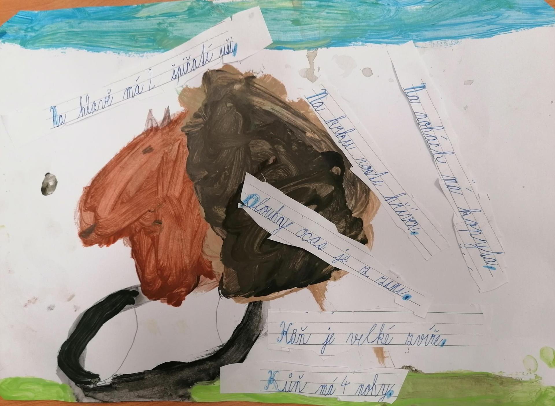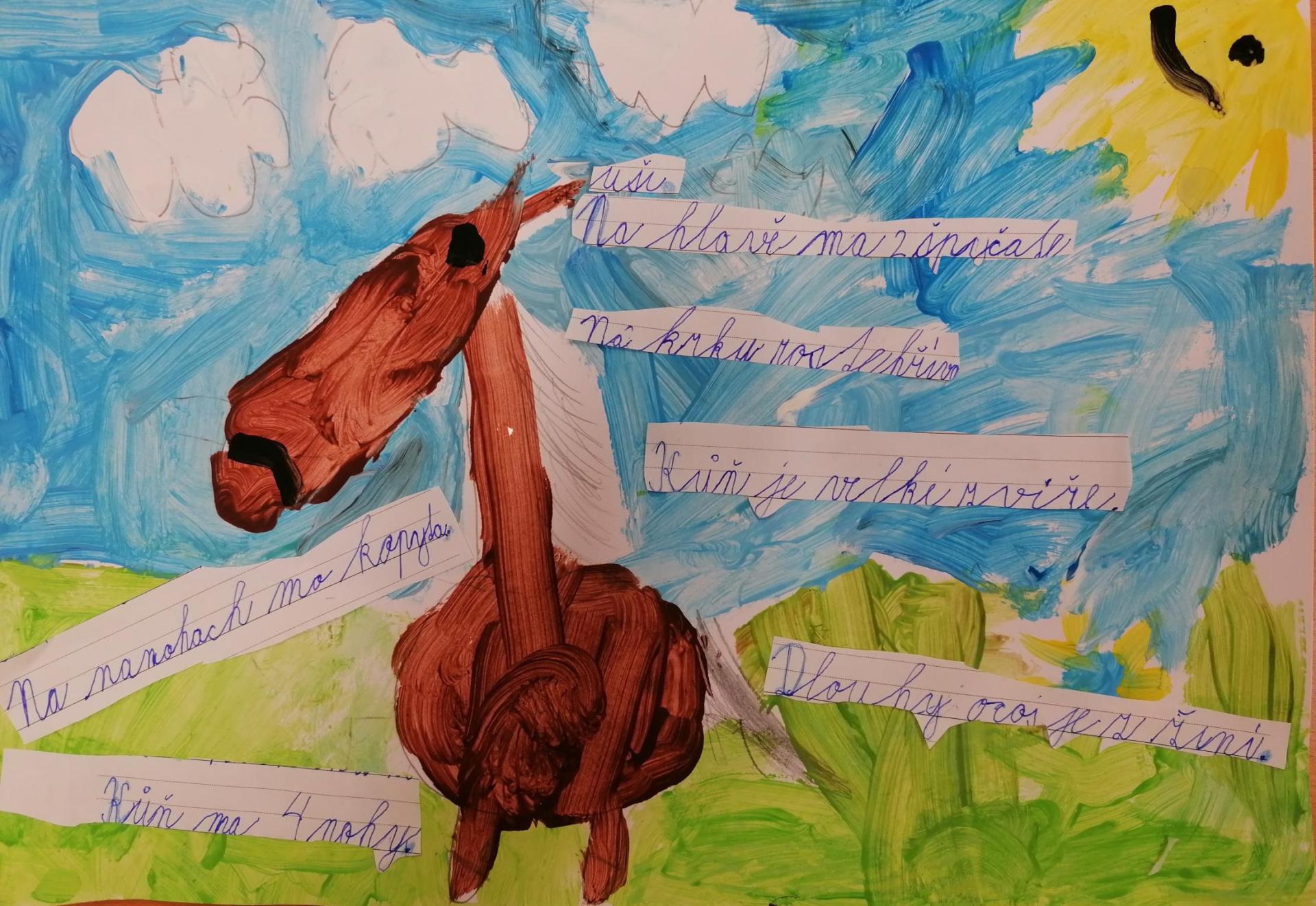 Namalovat koně? To není nic jednoduchého. Připravili jsme se na to. Napsali jsme si pár vět o tom, co by koníkovi nemělo chybět. Koně se nám povedli (až na pár nedostatků), malování nás bavilo moc.