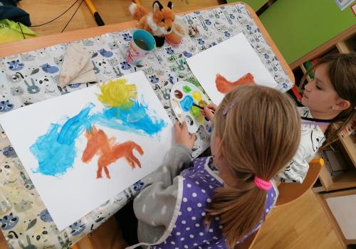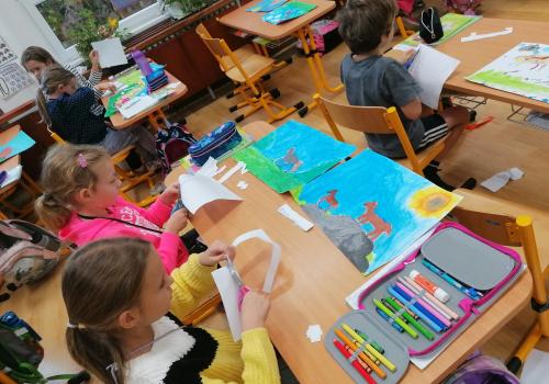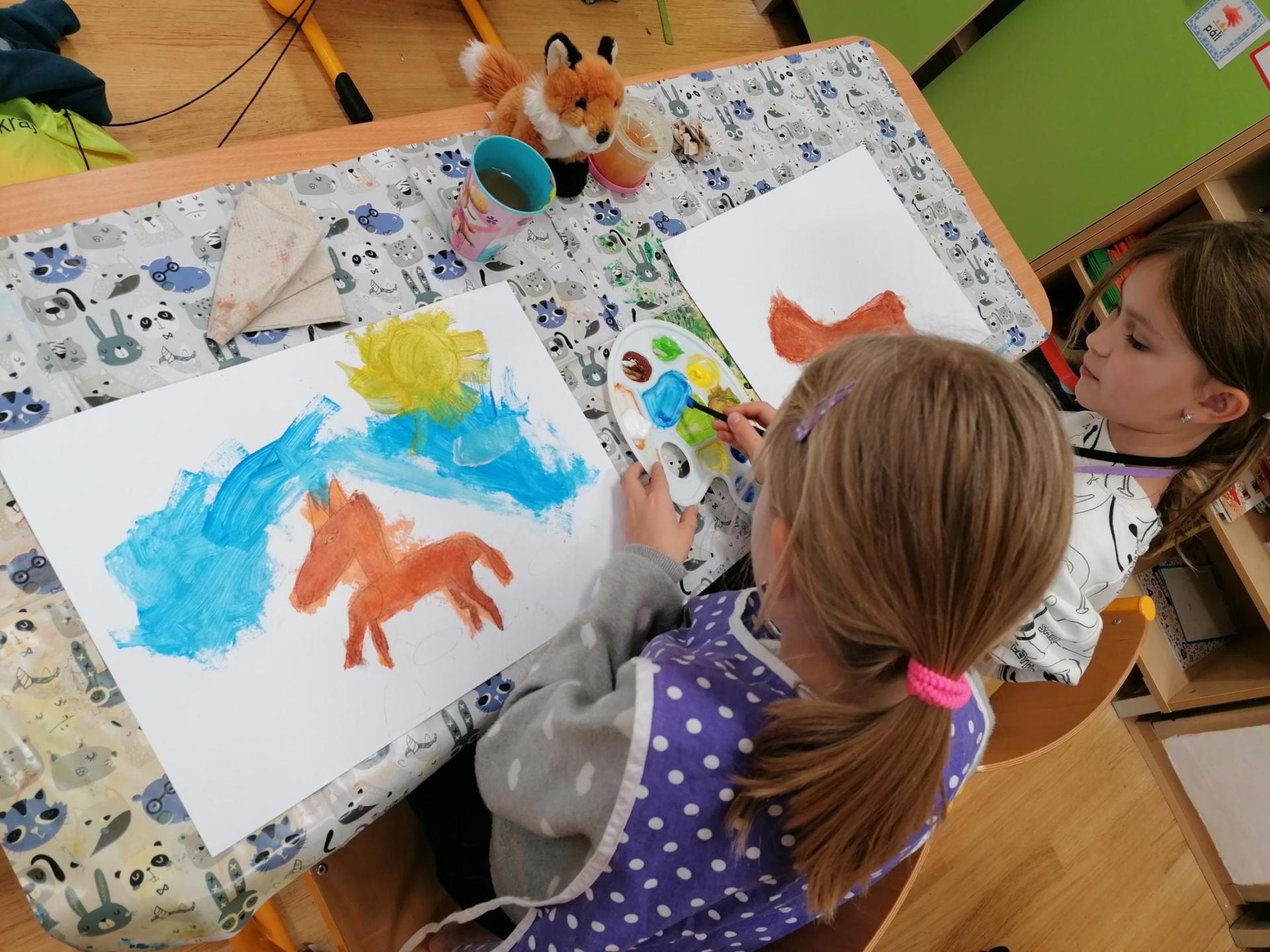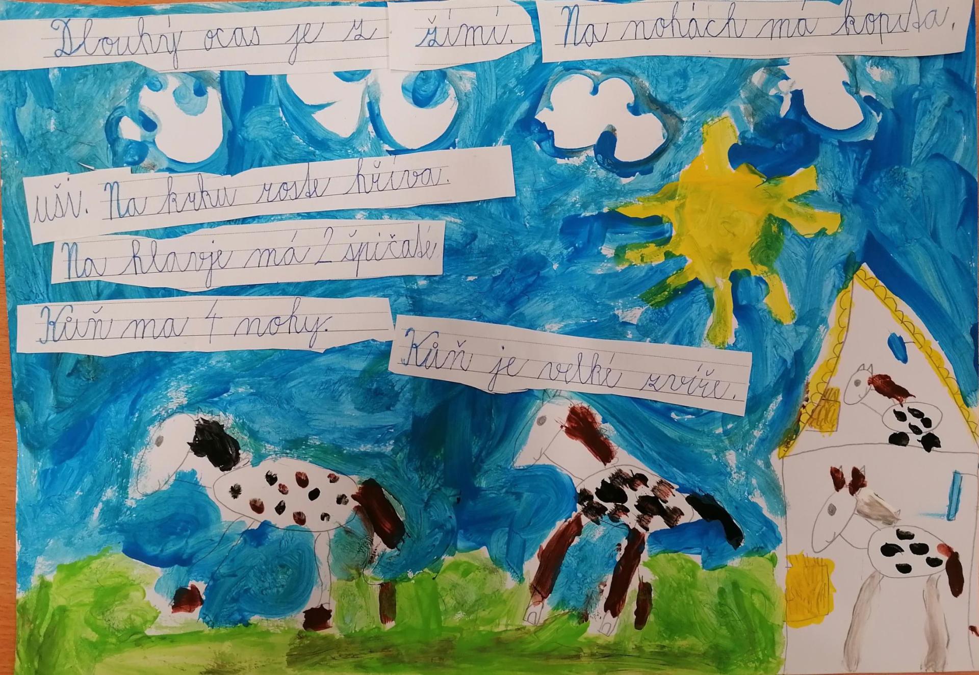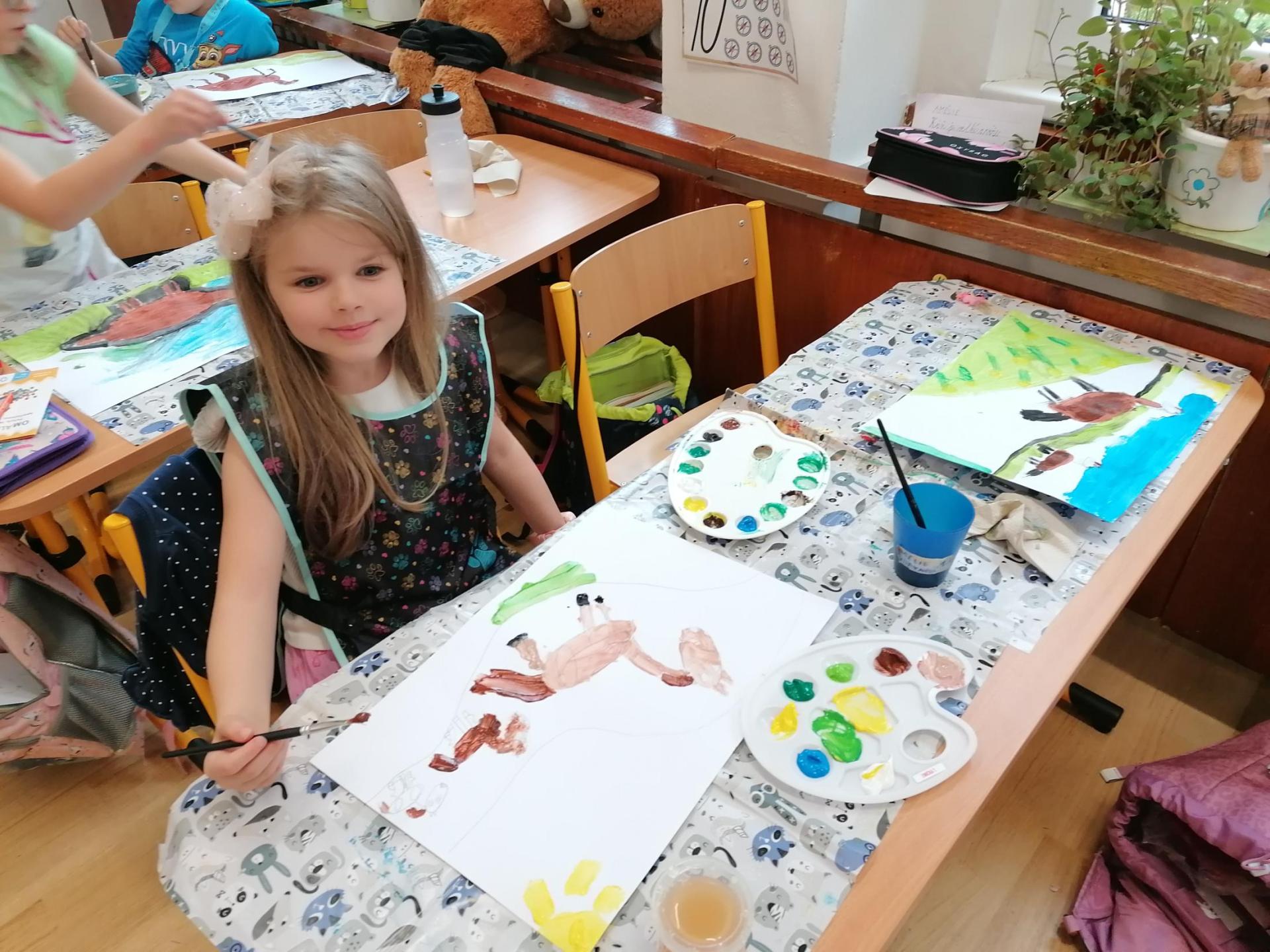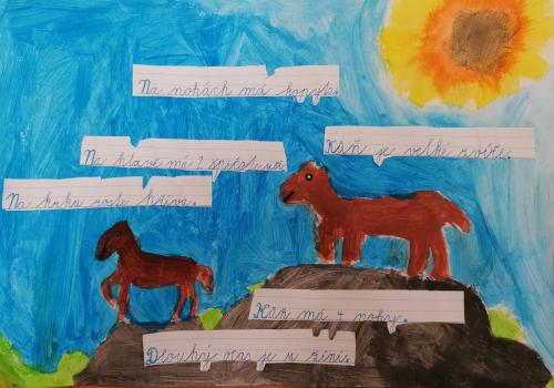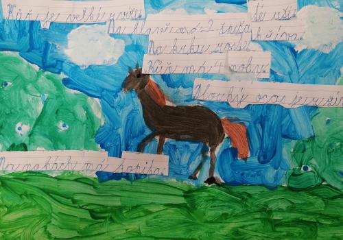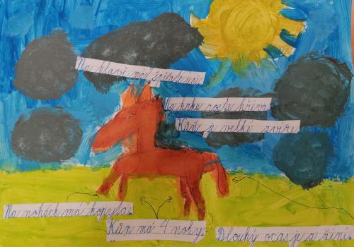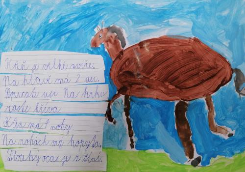 Namalovat koně? To není nic jednoduchého. Připravili jsme se na to. Napsali jsme si pár vět o tom, co by koníkovi nemělo chybět. Koně se nám povedli (až na pár nedostatků), malování nás bavilo moc.