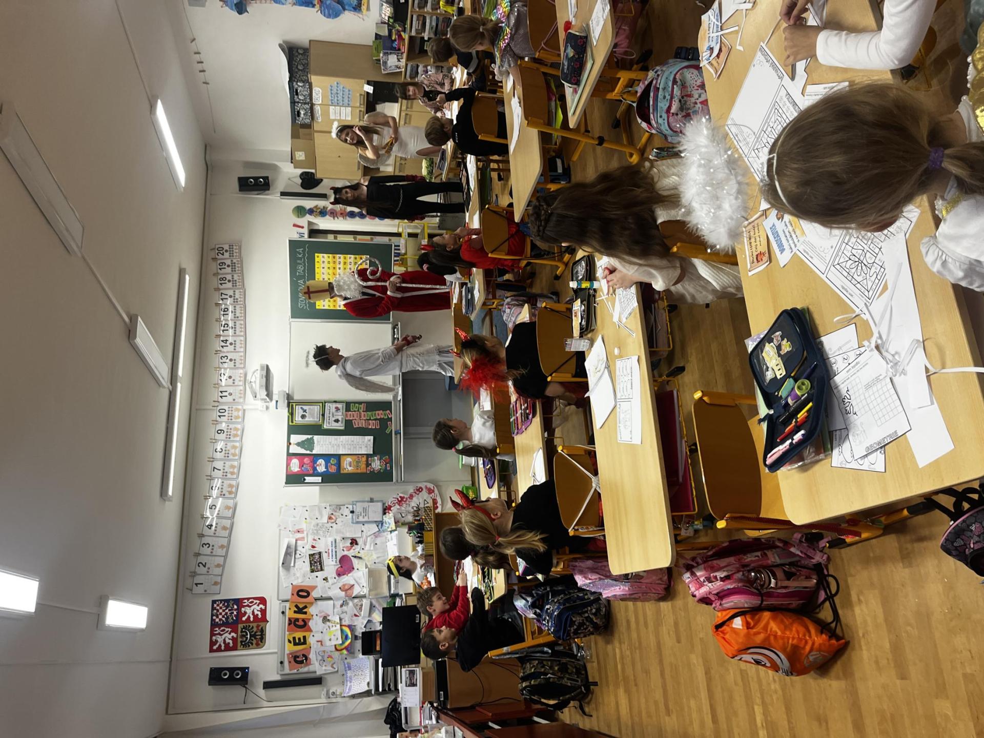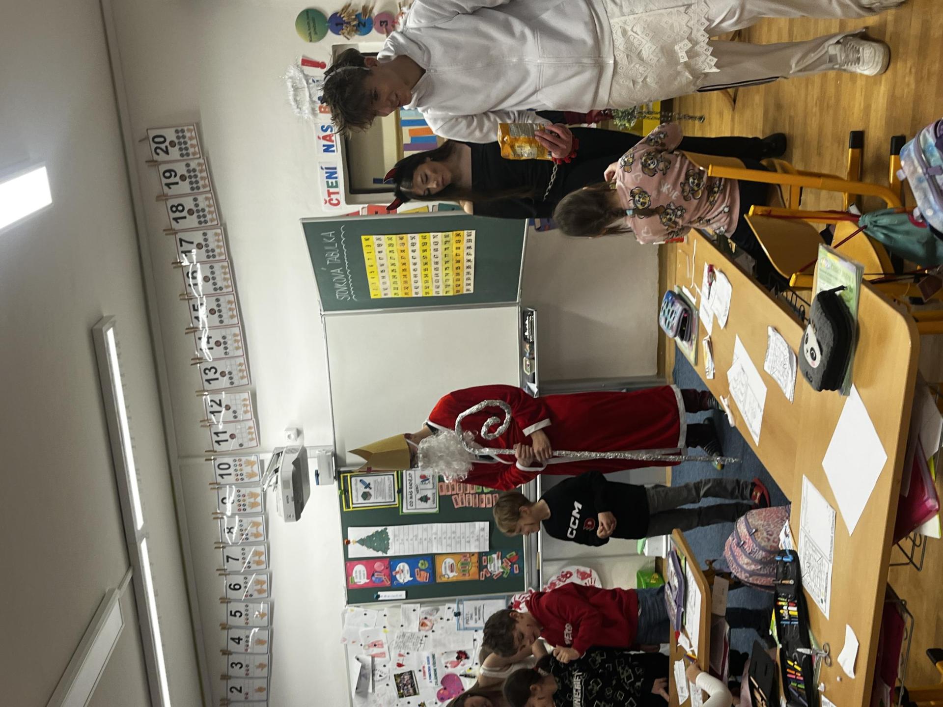Povídali jsme si o svatém Mikulášovi. Plnili mikulášské úkoly, povídali si, co znamenají pranostiky a nakonec nás i sám Mikuláš navštívil.