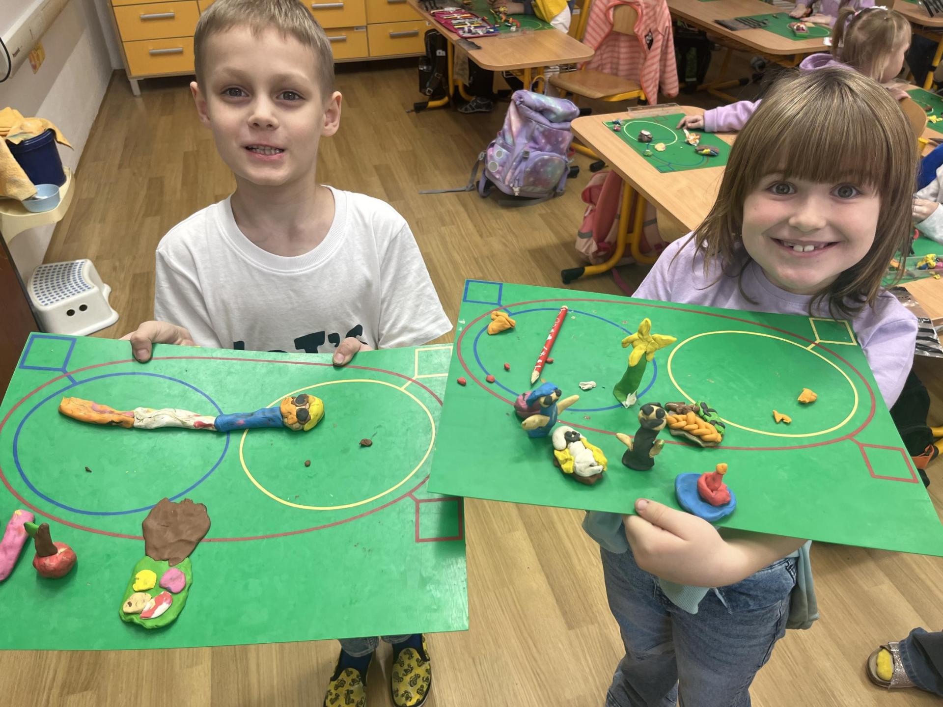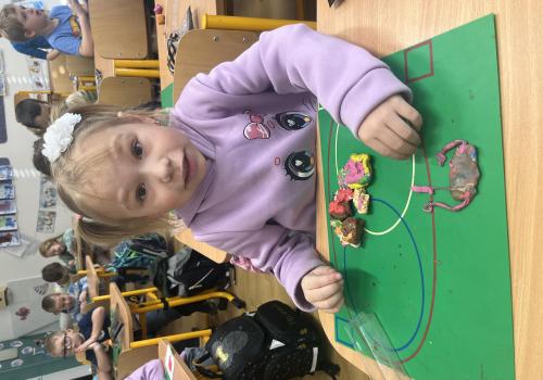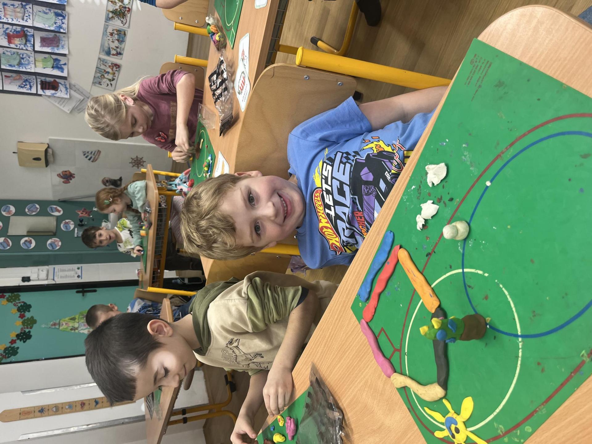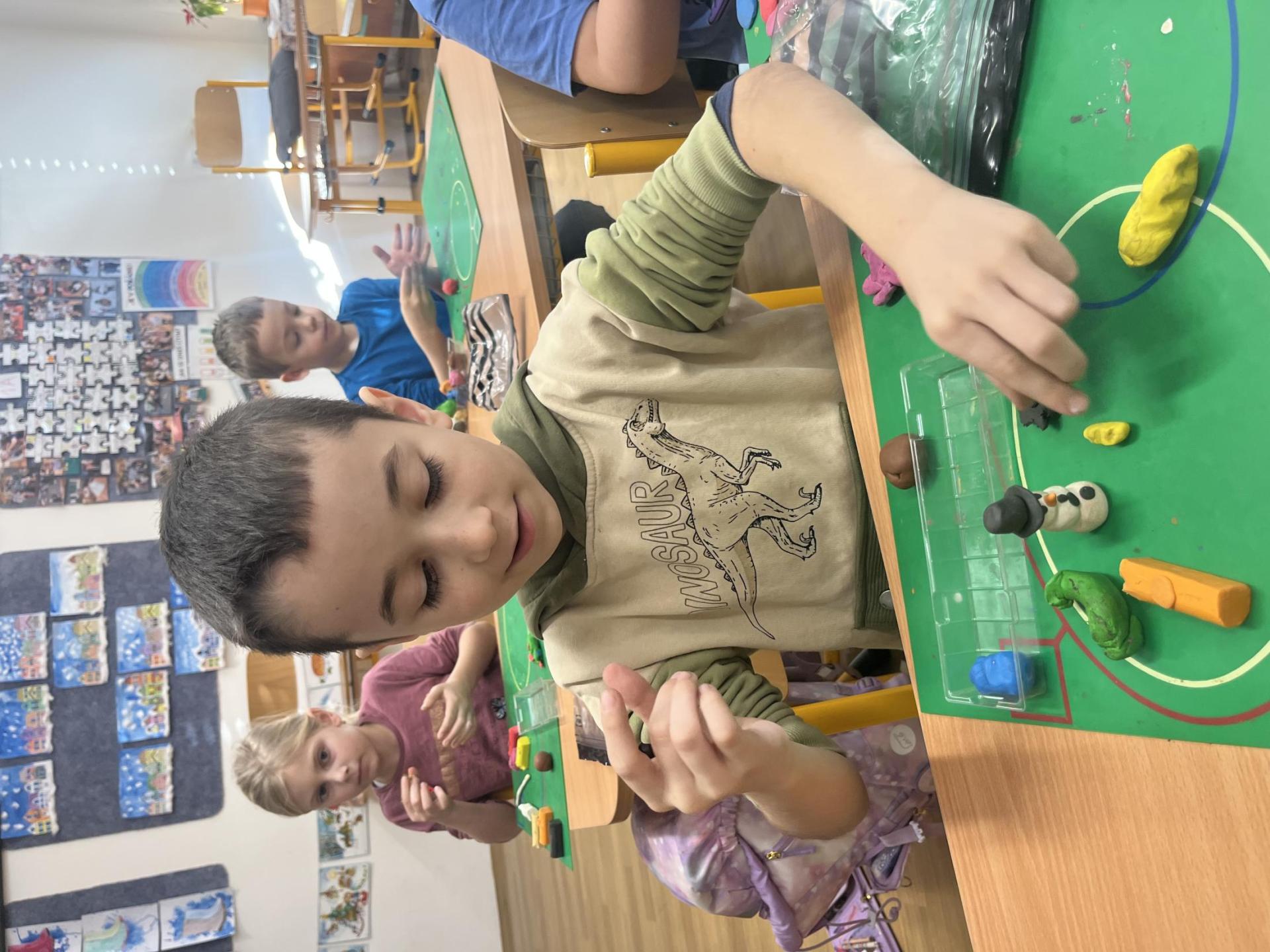 Při tvořivých činnostech jsme vytáhli modelínu a modelovali věci spojené s Vánoci. Děti byly kreativní - na fotkách můžete vidět, že modelovaly Mikuláše, vánoční stromeček, kapry, adventní věnce, sněhové vločky, sněhuláky, jablíčka, betlém a spoustu dalšího :-)