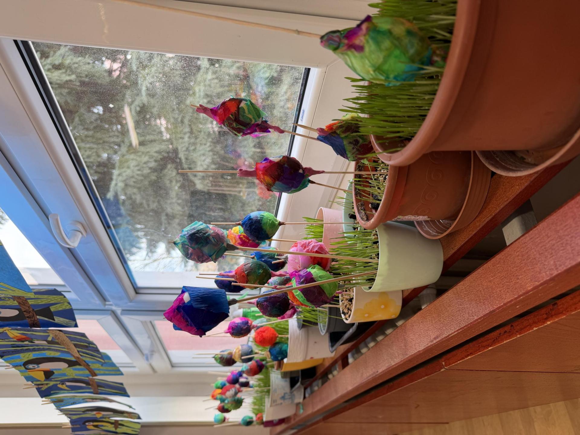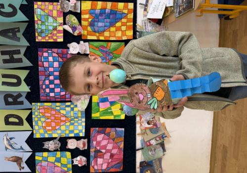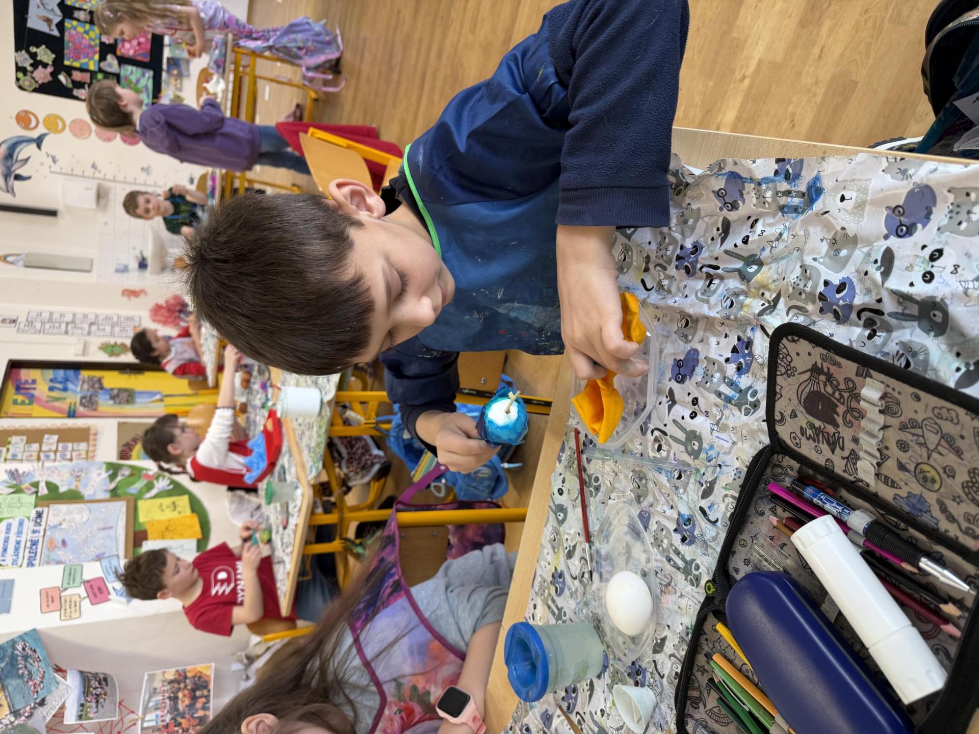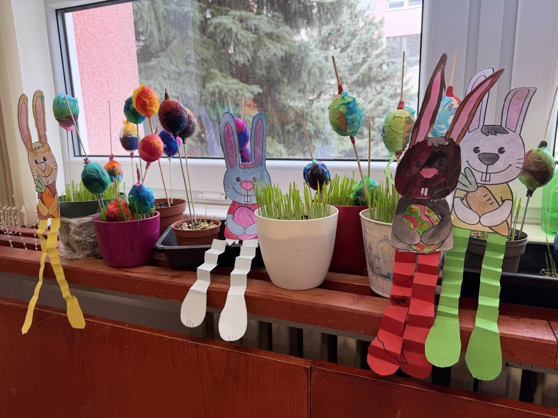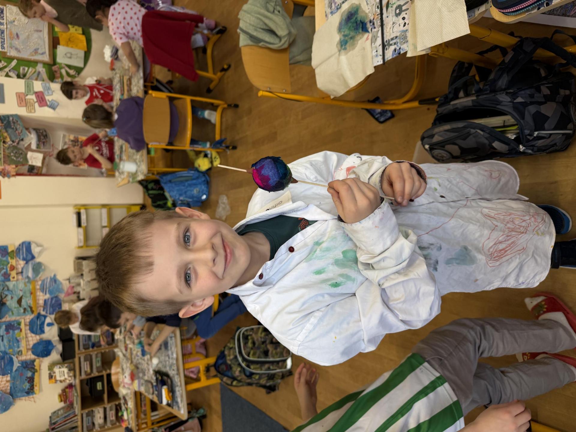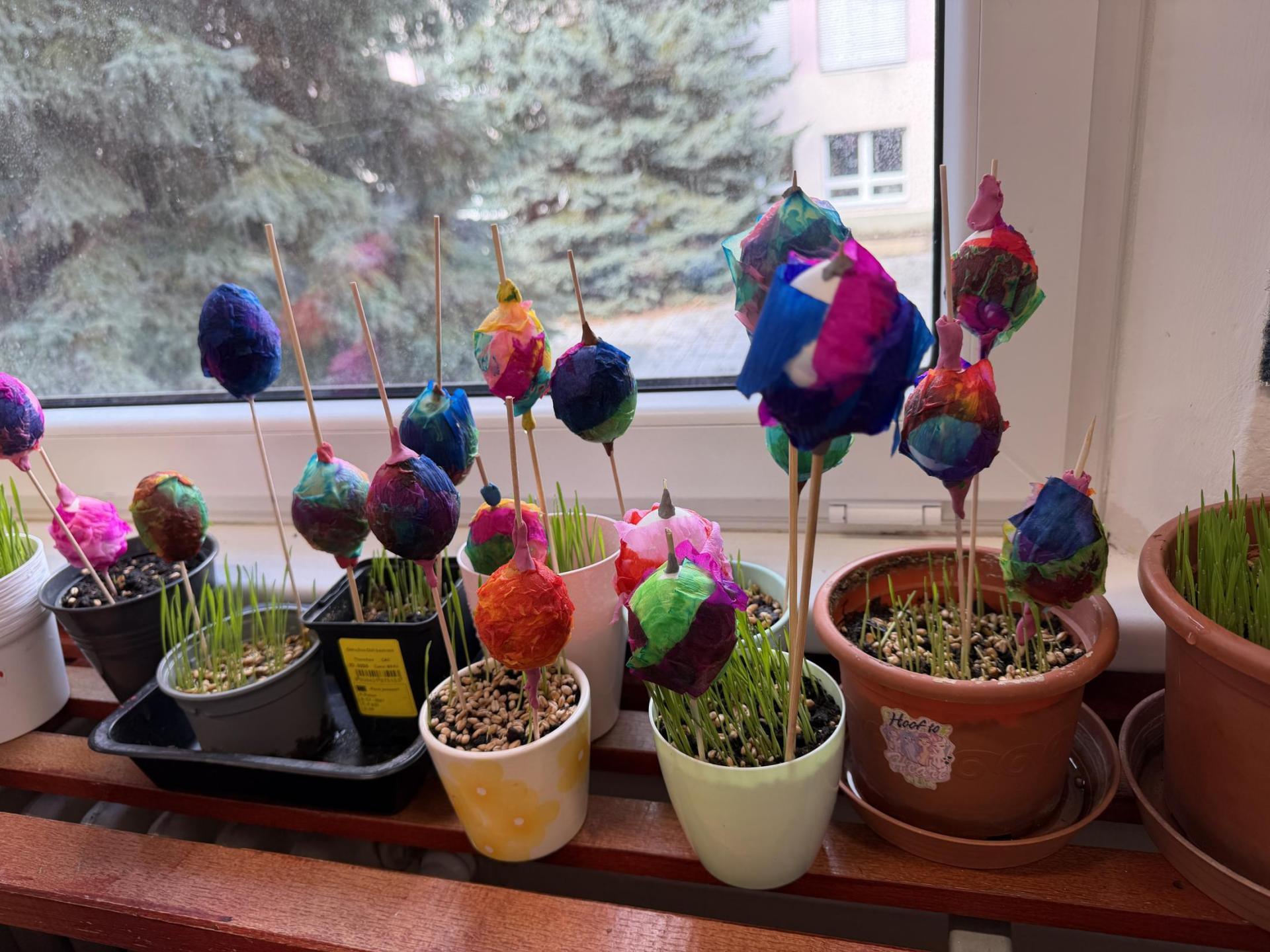Modré pondělí, Žluté úterý a středa? Ta byla Škaredá, ale my si ji udělali veselou. Každý měl oblíbenou barvu, barvili jsme vajíčka, osení nám naklíčilo, vyrobili jsme zajíčka a tak mohou Velikonoce začít.
