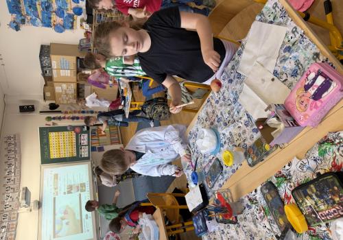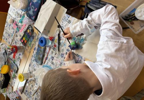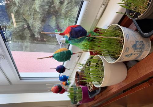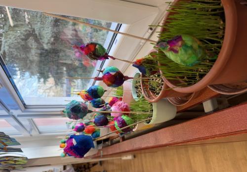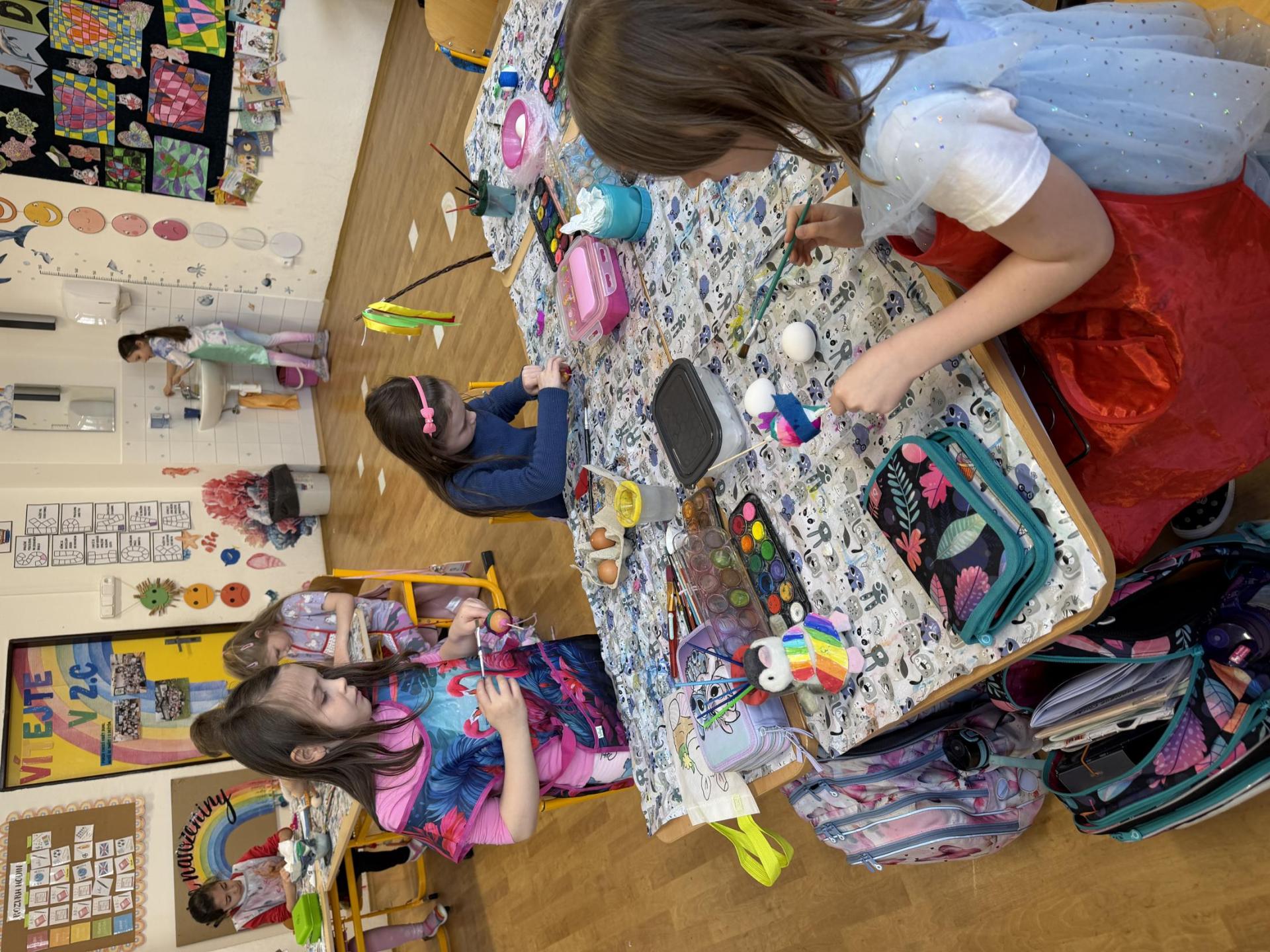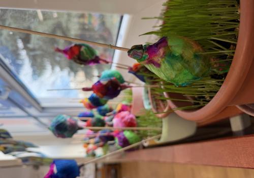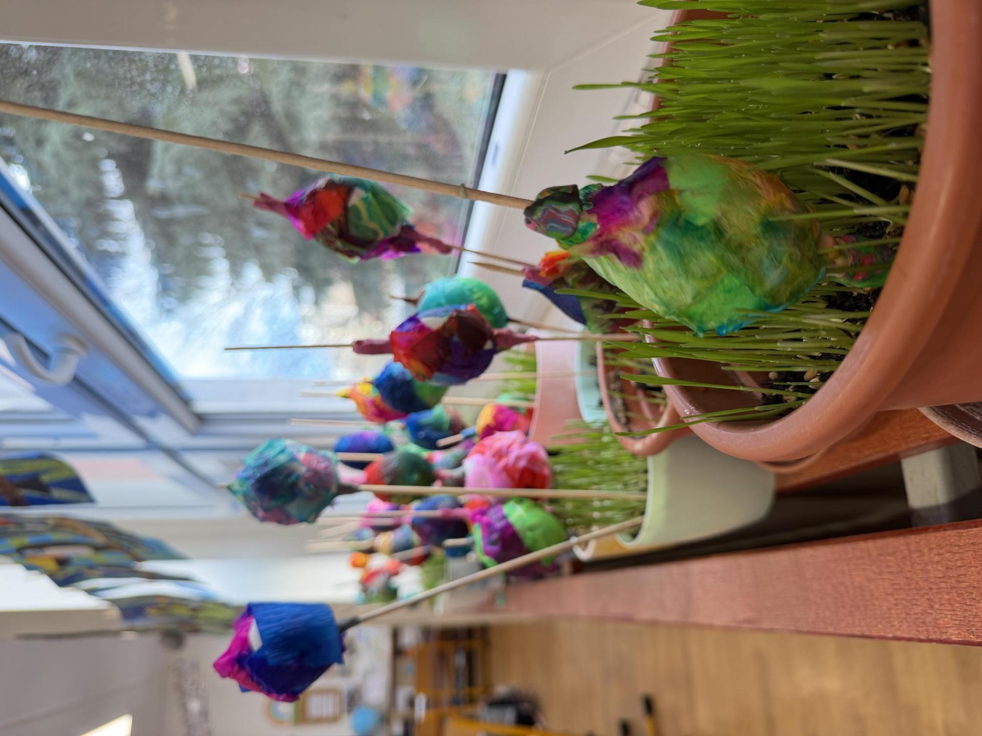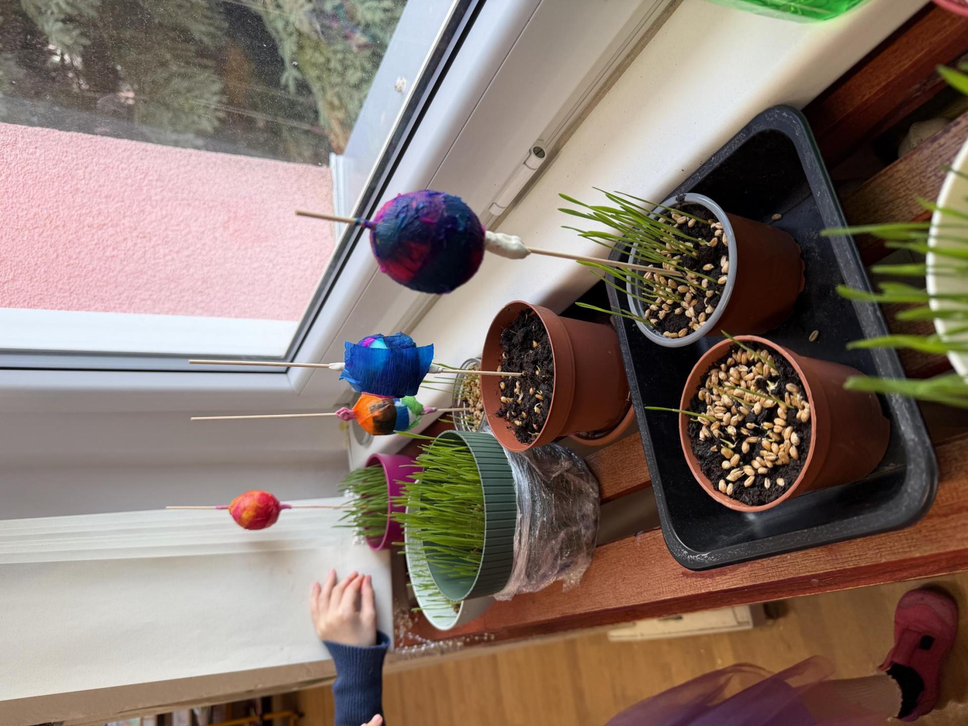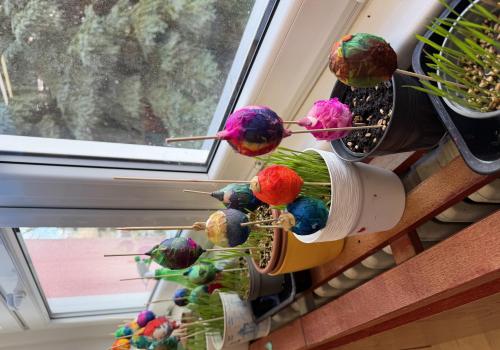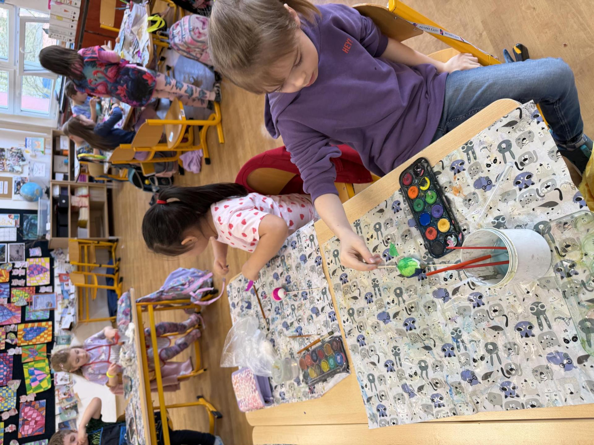 Modré pondělí, Žluté úterý a středa? Ta byla Škaredá, ale my si ji udělali veselou. Každý měl oblíbenou barvu, barvili jsme vajíčka, osení nám naklíčilo, vyrobili jsme zajíčka a tak mohou Velikonoce začít.