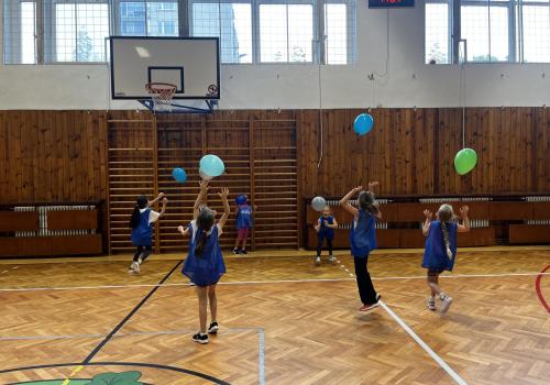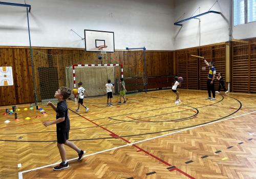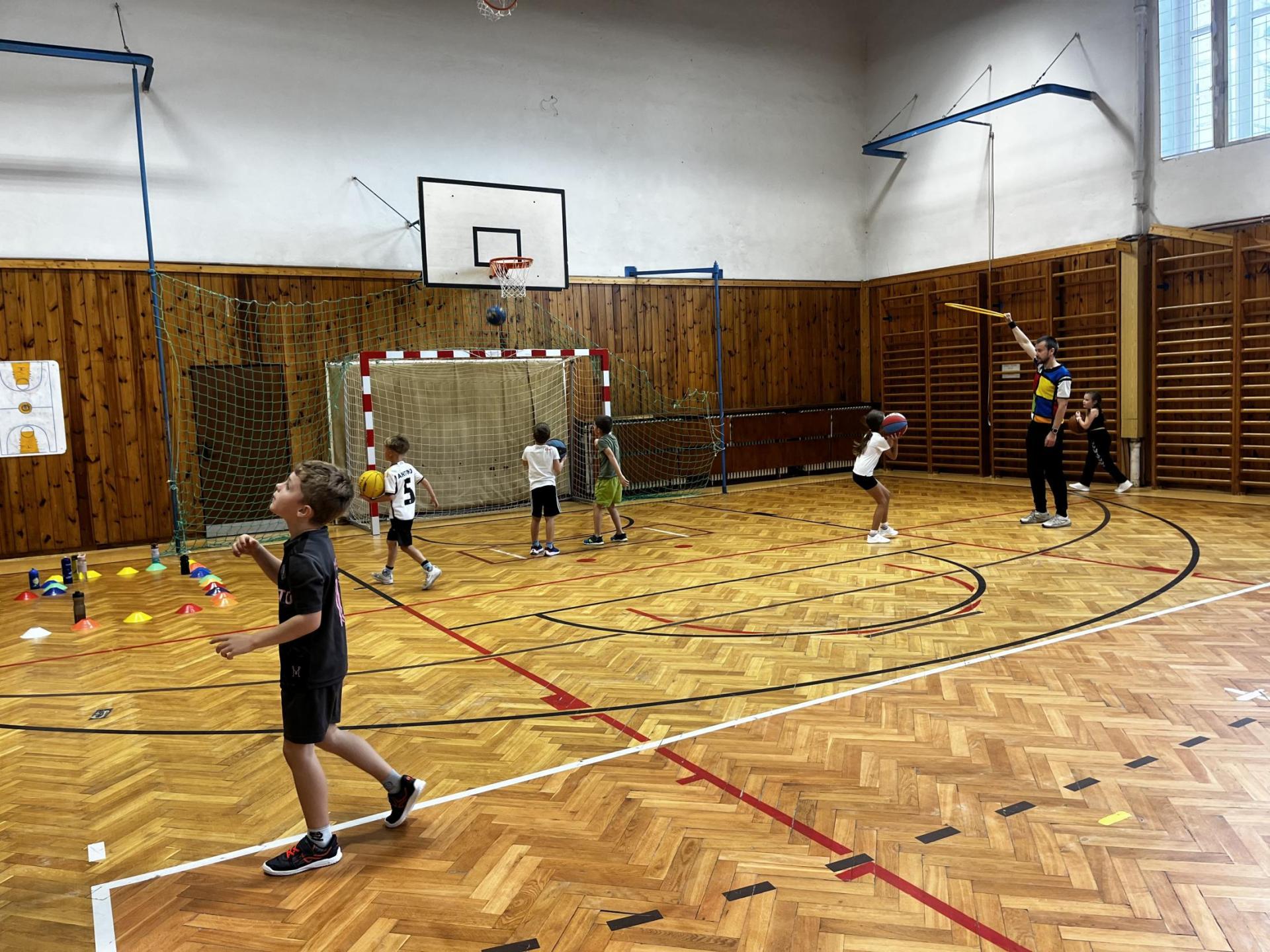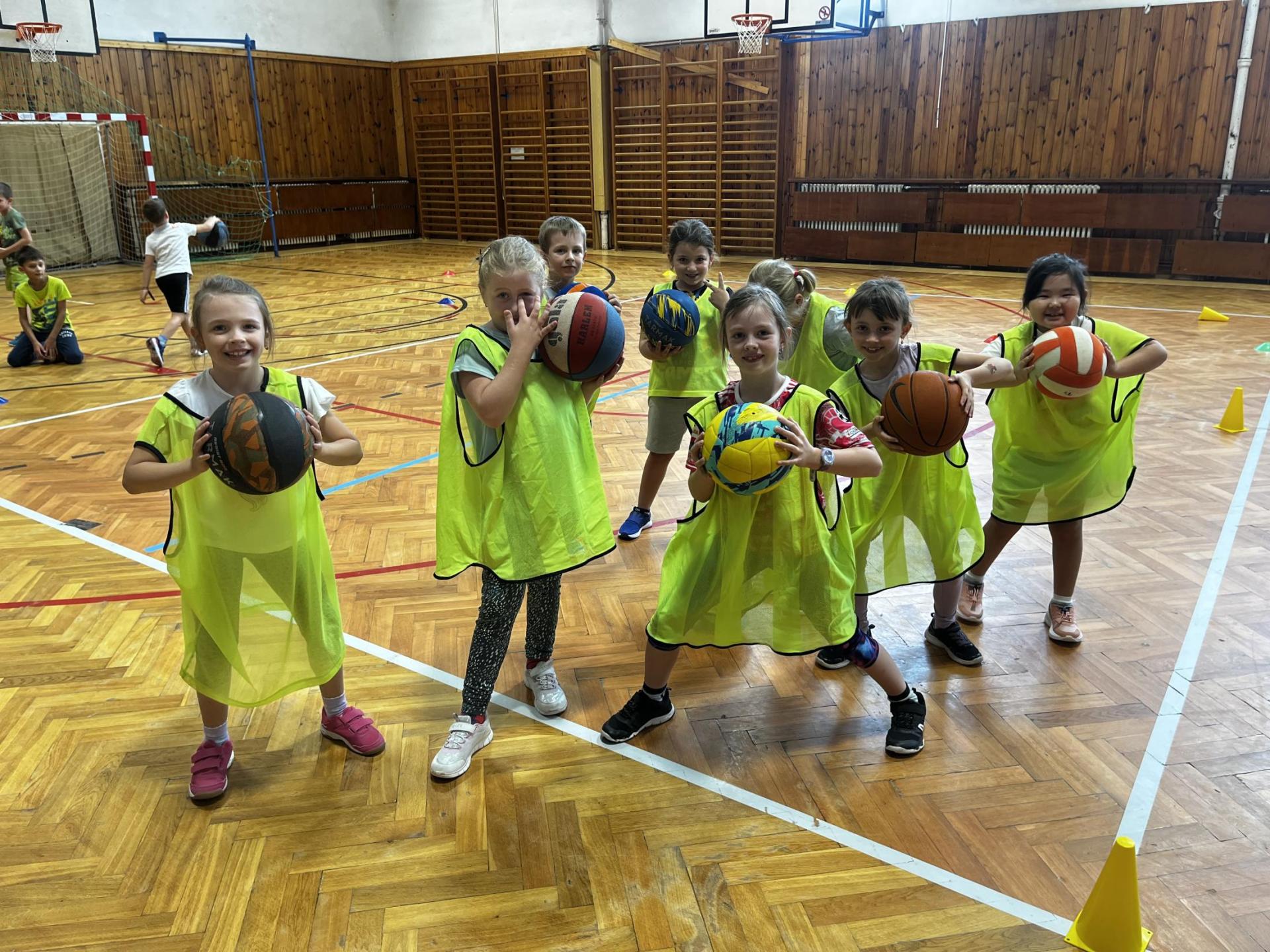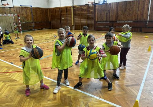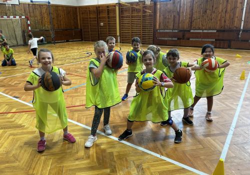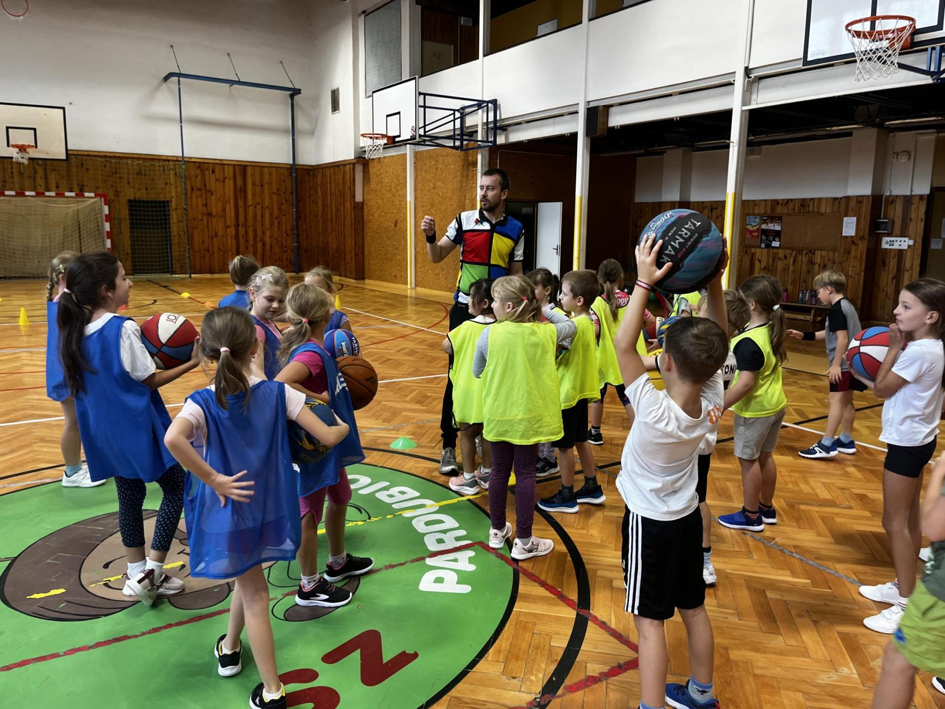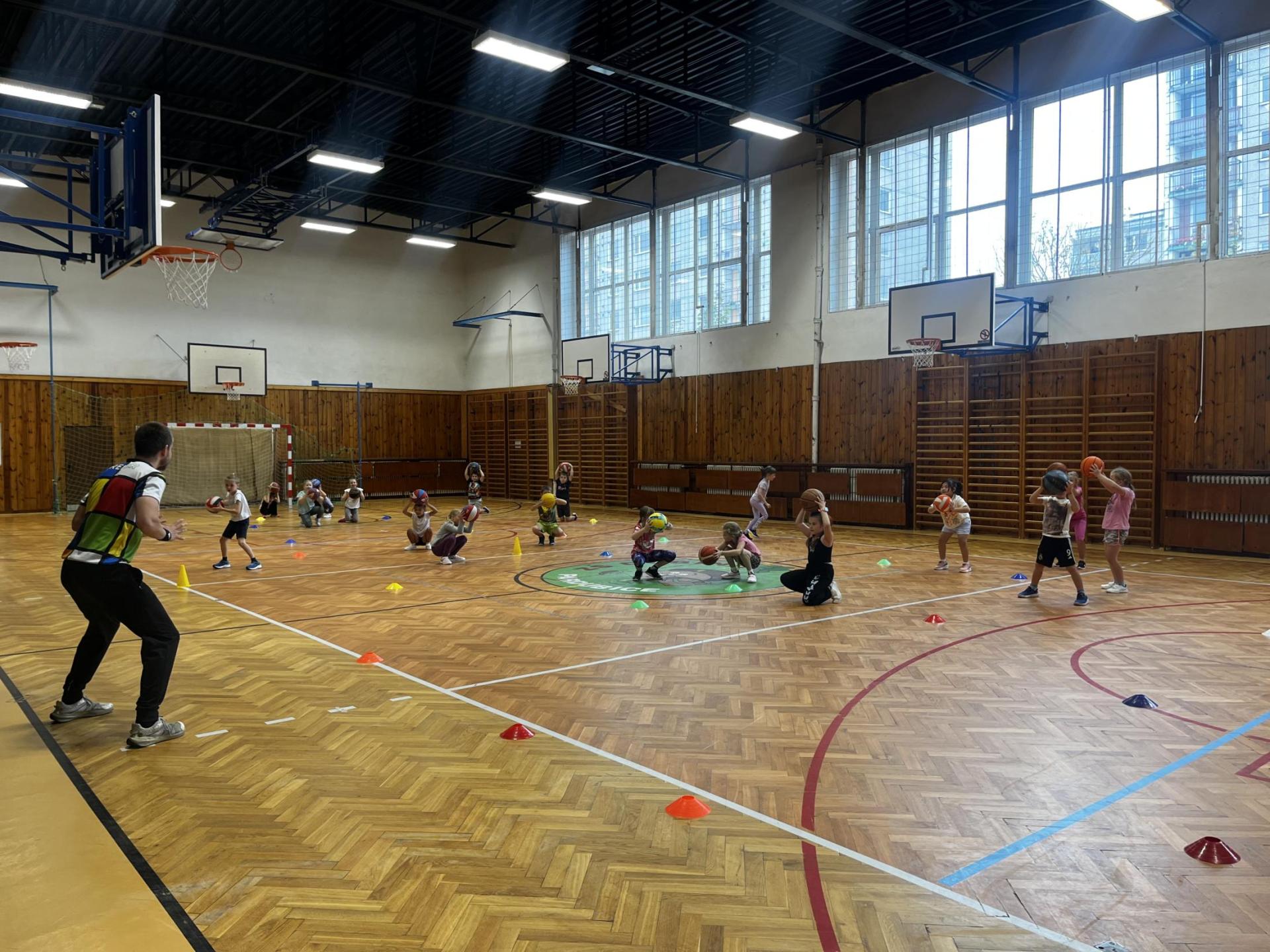 Každé úterý k nám na tělocvik chodí trenéři z projektu Trenéři do škol. Zatím máme pana trenéra na Basket. Učíme se pracovat s míčem, házet, chytat a driblovat. K tomu hrajeme spoustu super her. Tělocvik si prostě užíváme.