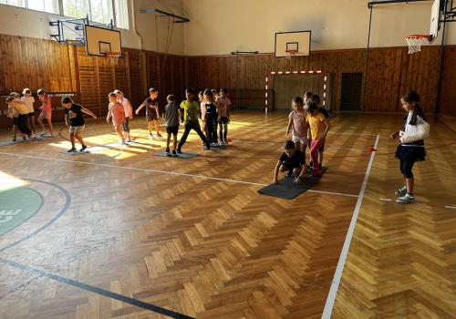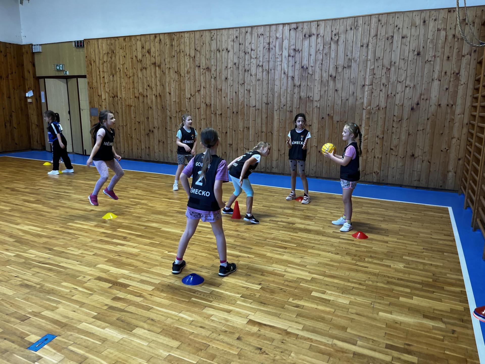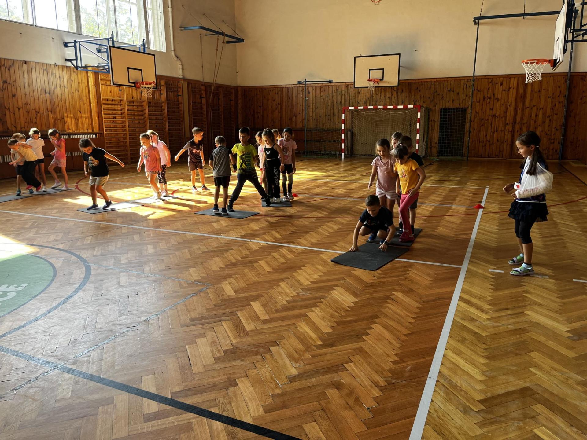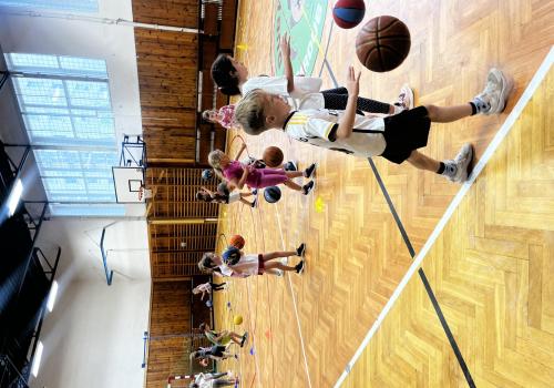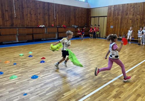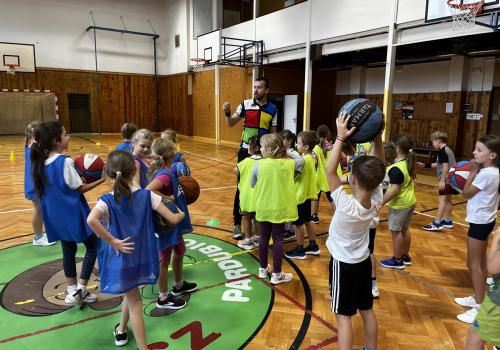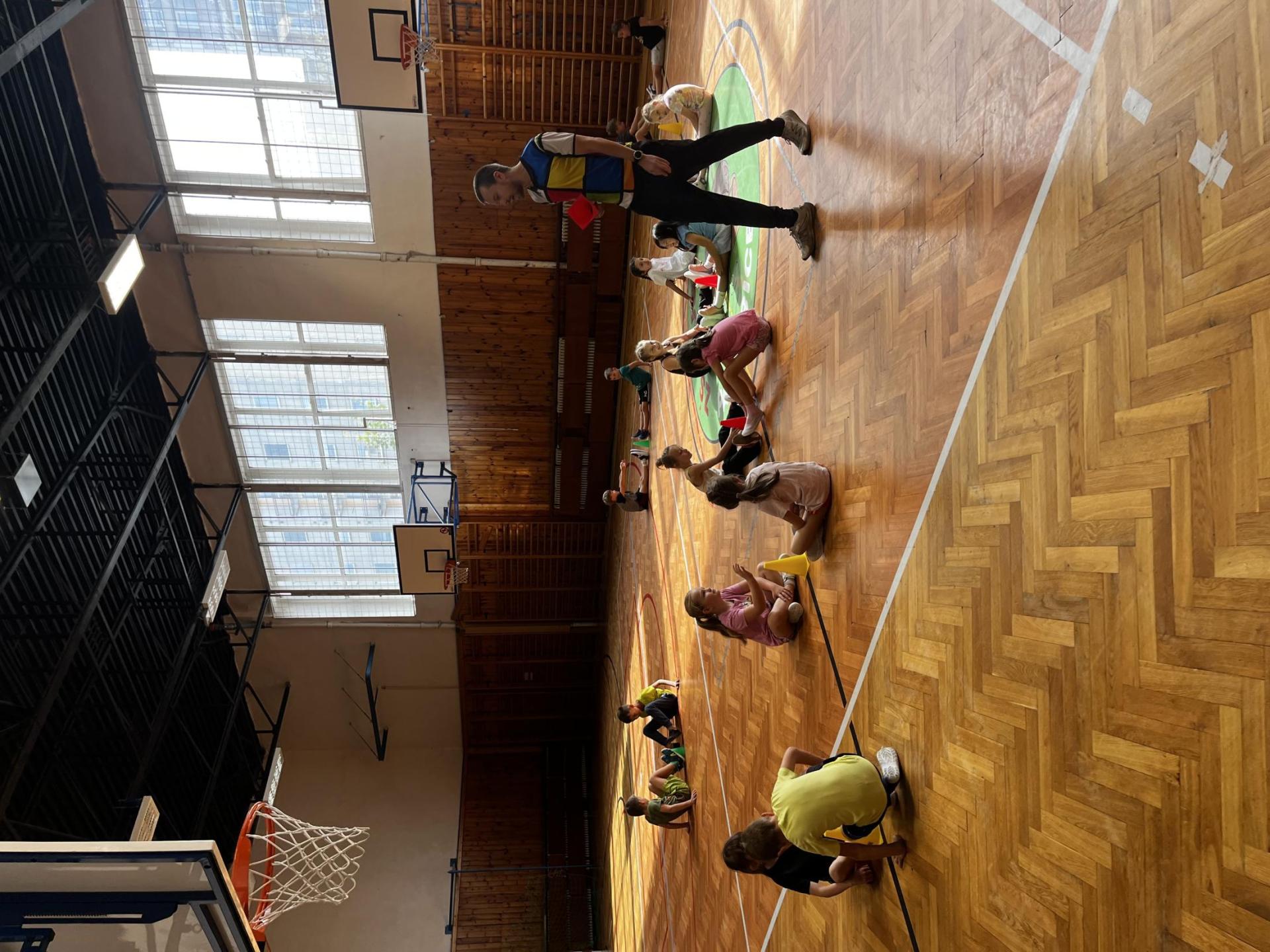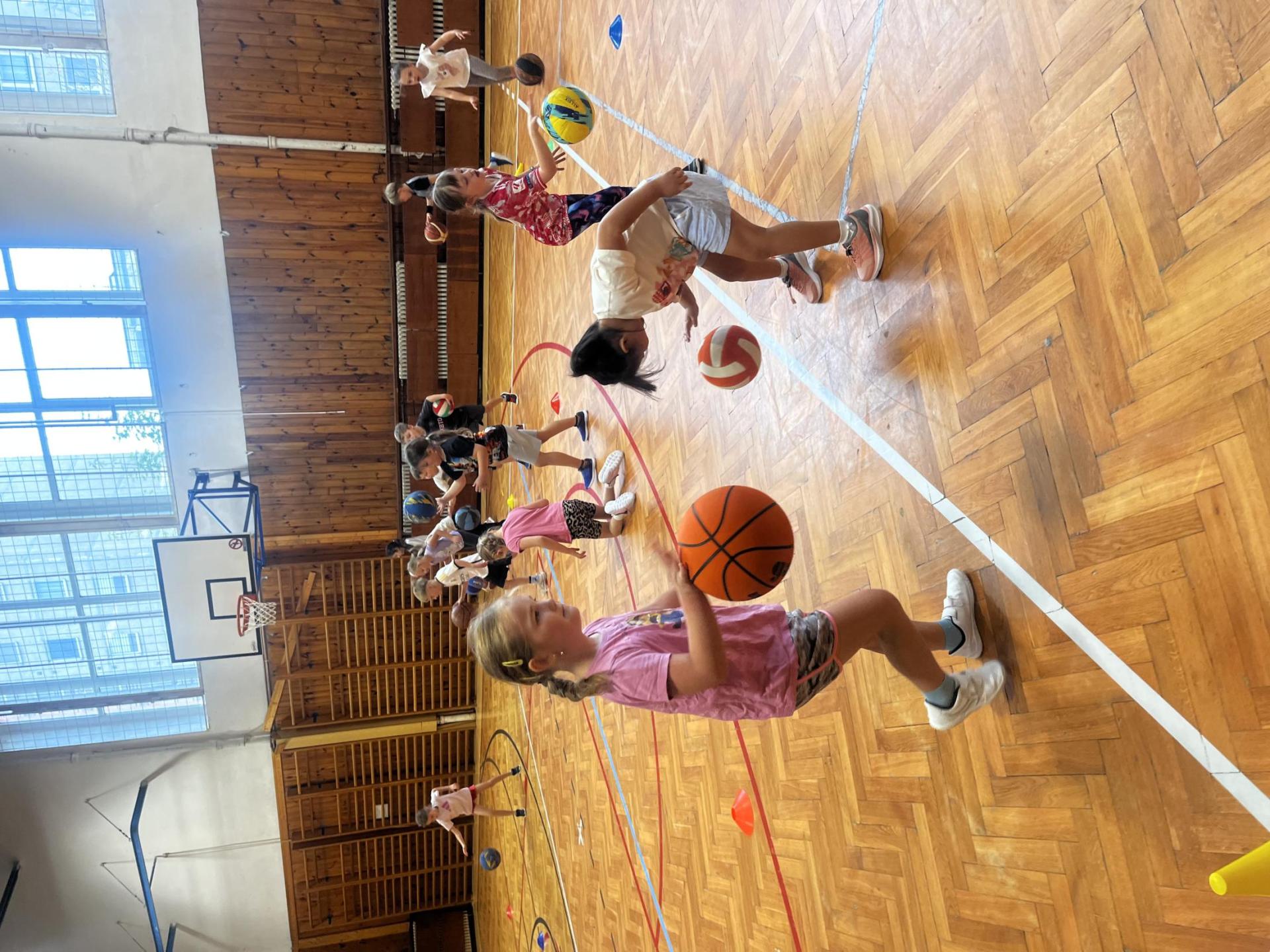Každé úterý k nám na tělocvik chodí trenéři z projektu Trenéři do škol. Zatím máme pana trenéra na Basket. Učíme se pracovat s míčem, házet, chytat a driblovat. K tomu hrajeme spoustu super her. Tělocvik si prostě užíváme.