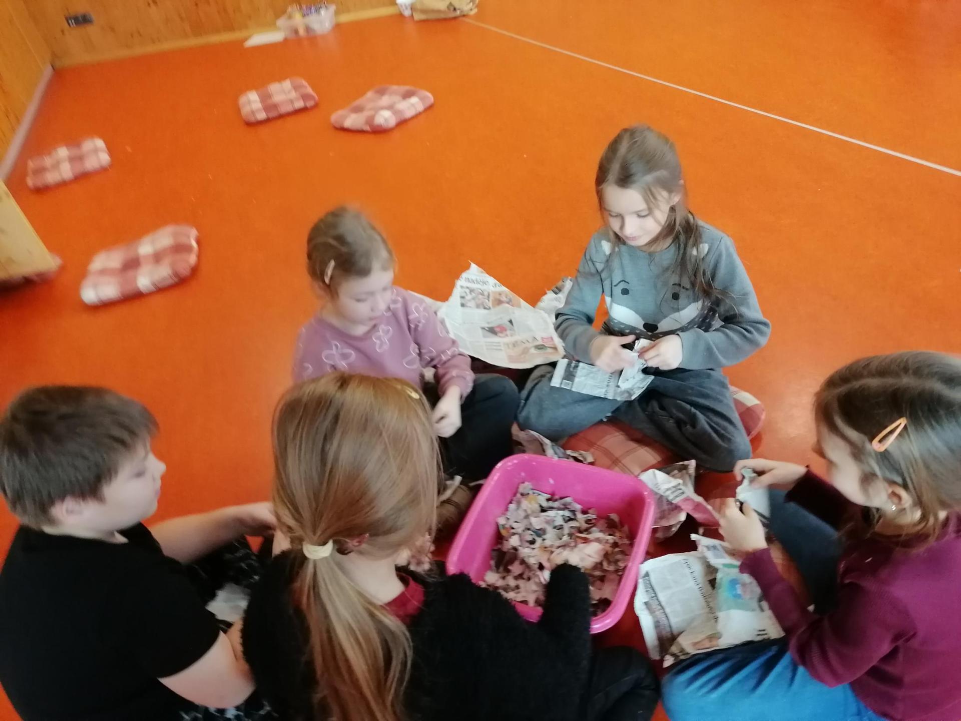V ekocentru jsme se dozvěděli něco víc o recyklování starého papíru a všichni jsme si vyzkoušeli recyklovaný papír vyrobit ze starých novin.