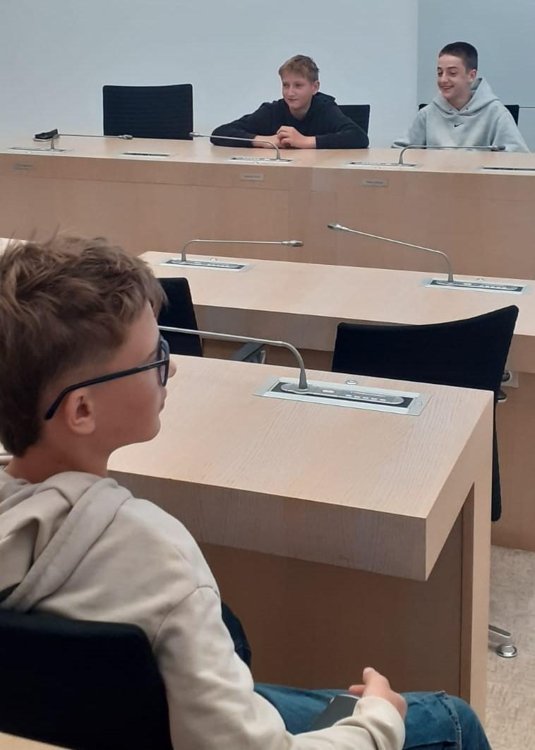 Podívejte se na pár fotek. Žáci se podívali do zasedacího sálu krajského zastupitelstva, dozvěděli se základní informace o Pardubickém kraji, jeho fungování, struktuře a další zajímavosti. Provázela je krajská radní Mgr. Petra Šimečková.