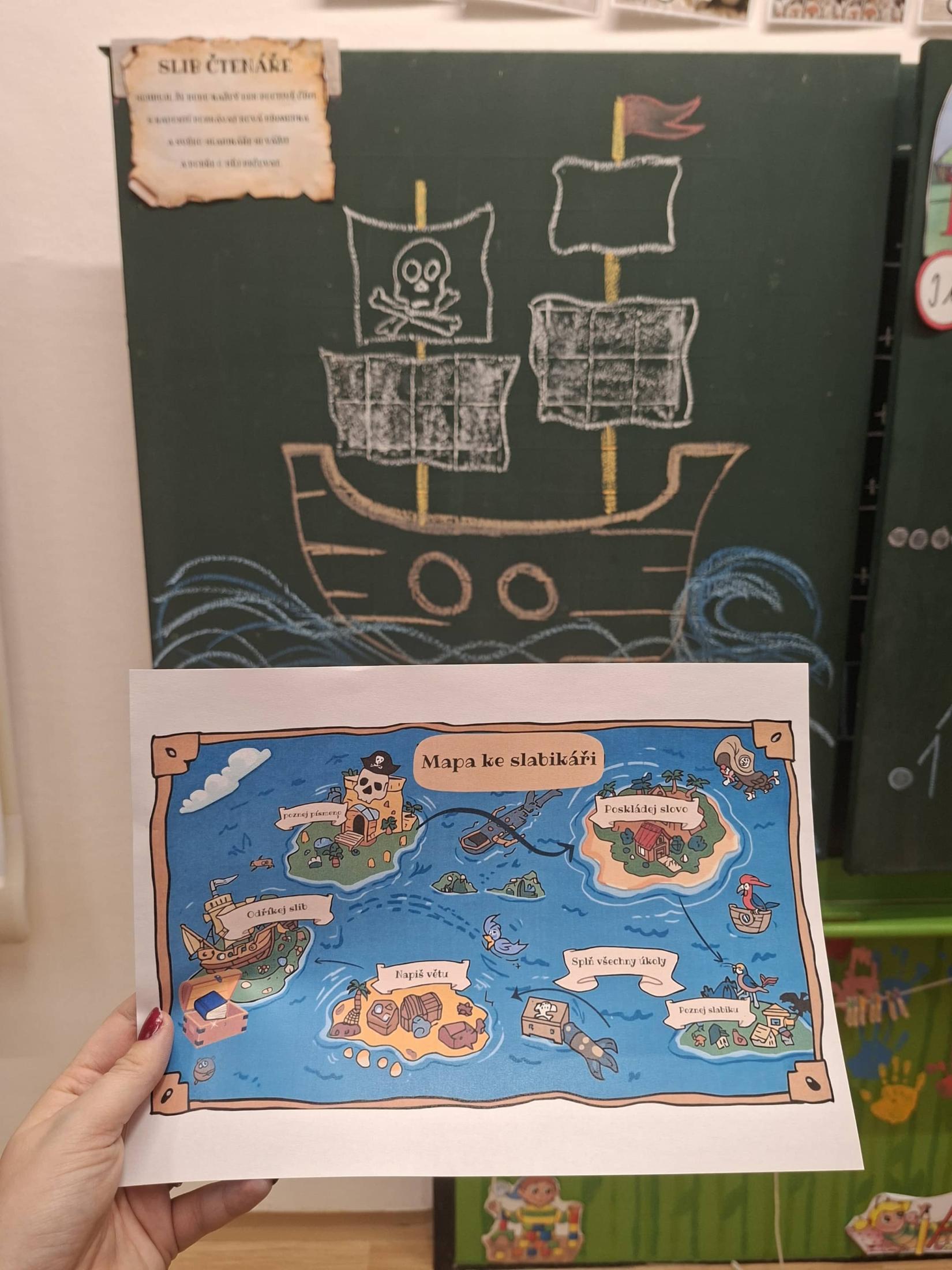 Děti se vydaly na velké dobrodružství! V hodině českého jazyka jsme se proměnili v piráty a vyrazili jsme na pirátskou plavbu za Slabikářem. Každý žák se stal členem posádky a společně jsme se vydali po tajemné mapě, která nás měla dovést k pokladu ukrytému na posledním ostrově.