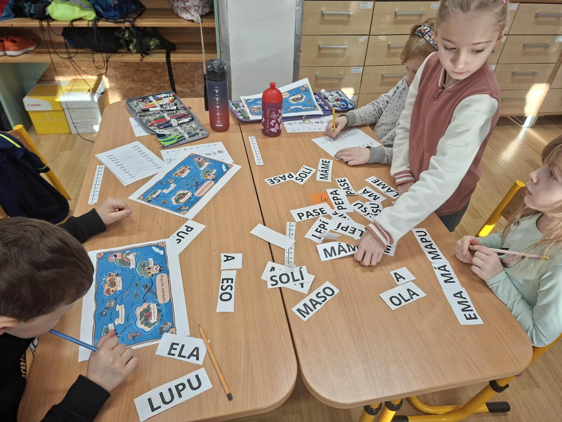 Na mapě bylo několik pirátských ostrovů a na každém z nich čekal úkol. Úkoly nebyly jednoduché – jen ti, kteří opravdu ovládají písmenka, slabiky a první slůvka, mohli pokračovat dál. Děti dokazovaly, že umí rozkládat a skládat slabiky, poznávat hlásky, přečíst krátké věty a pracovat se slovy. S každým splněným úkolem jsme byli blíž k pokladu.