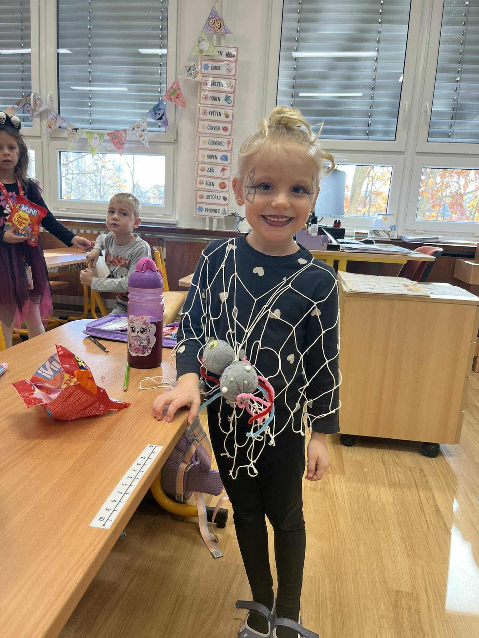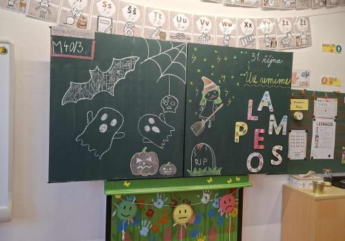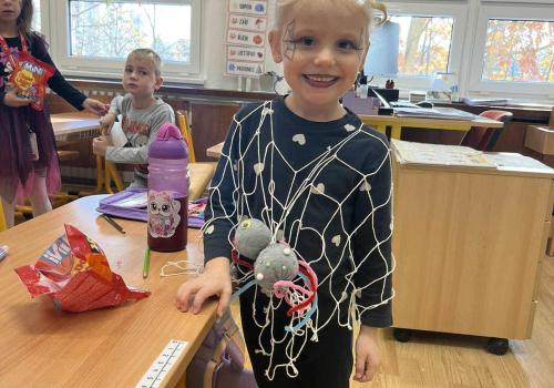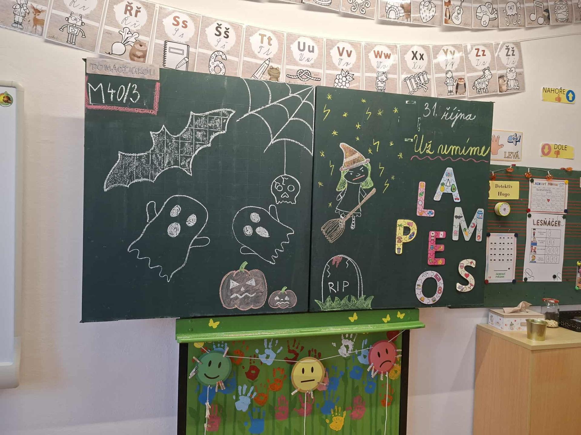 V pátek nás pak čekal Halloween! Celý den se nesl v duchu strašidelné a veselé atmosféry. Učebna se proměnila v místo plné duchů, netopýrů a dýní. Během halloweenského vyučování děti plnily tematické úkoly, luštily hádanky, počítaly a hrály halloweenské hry.