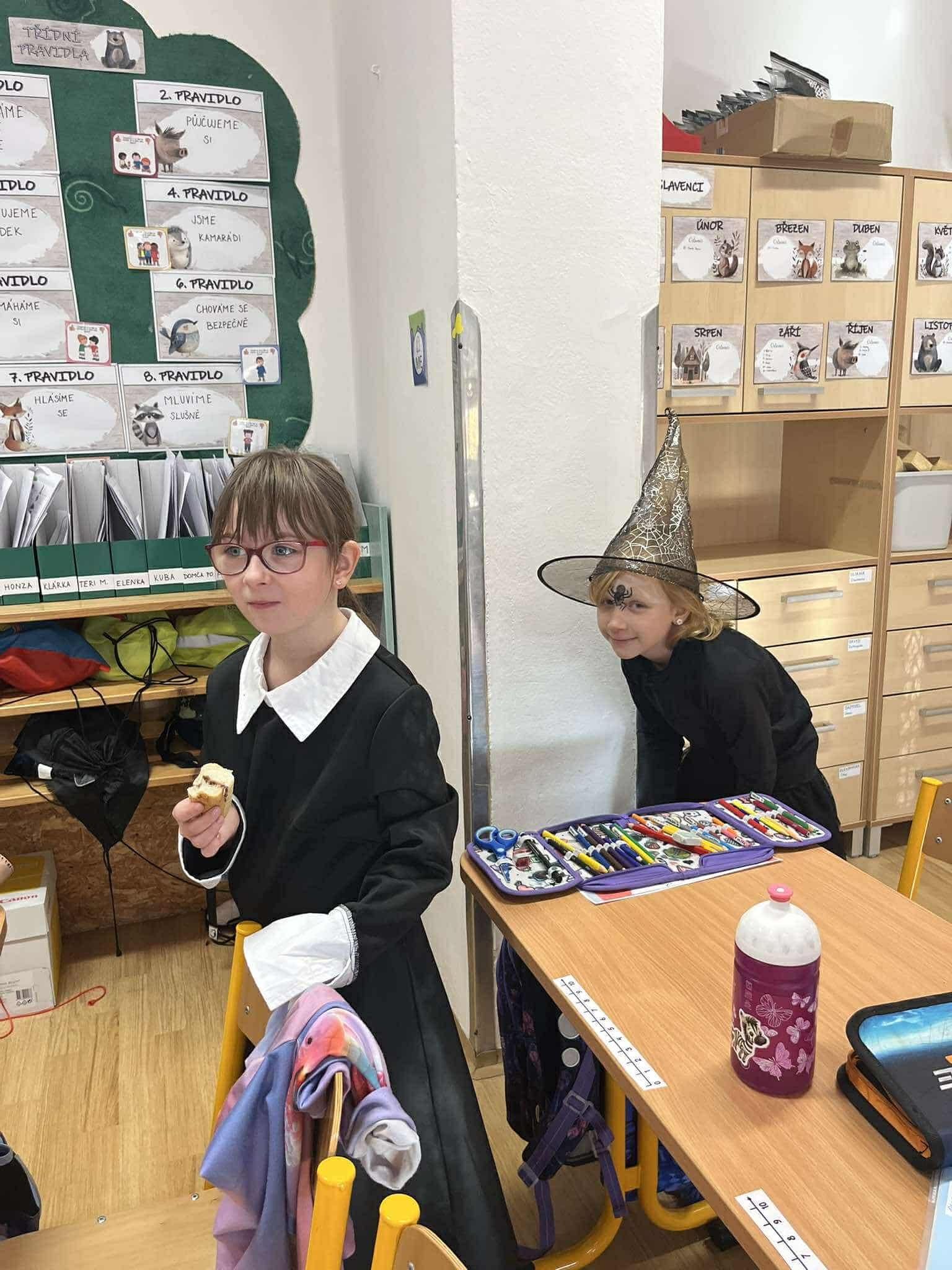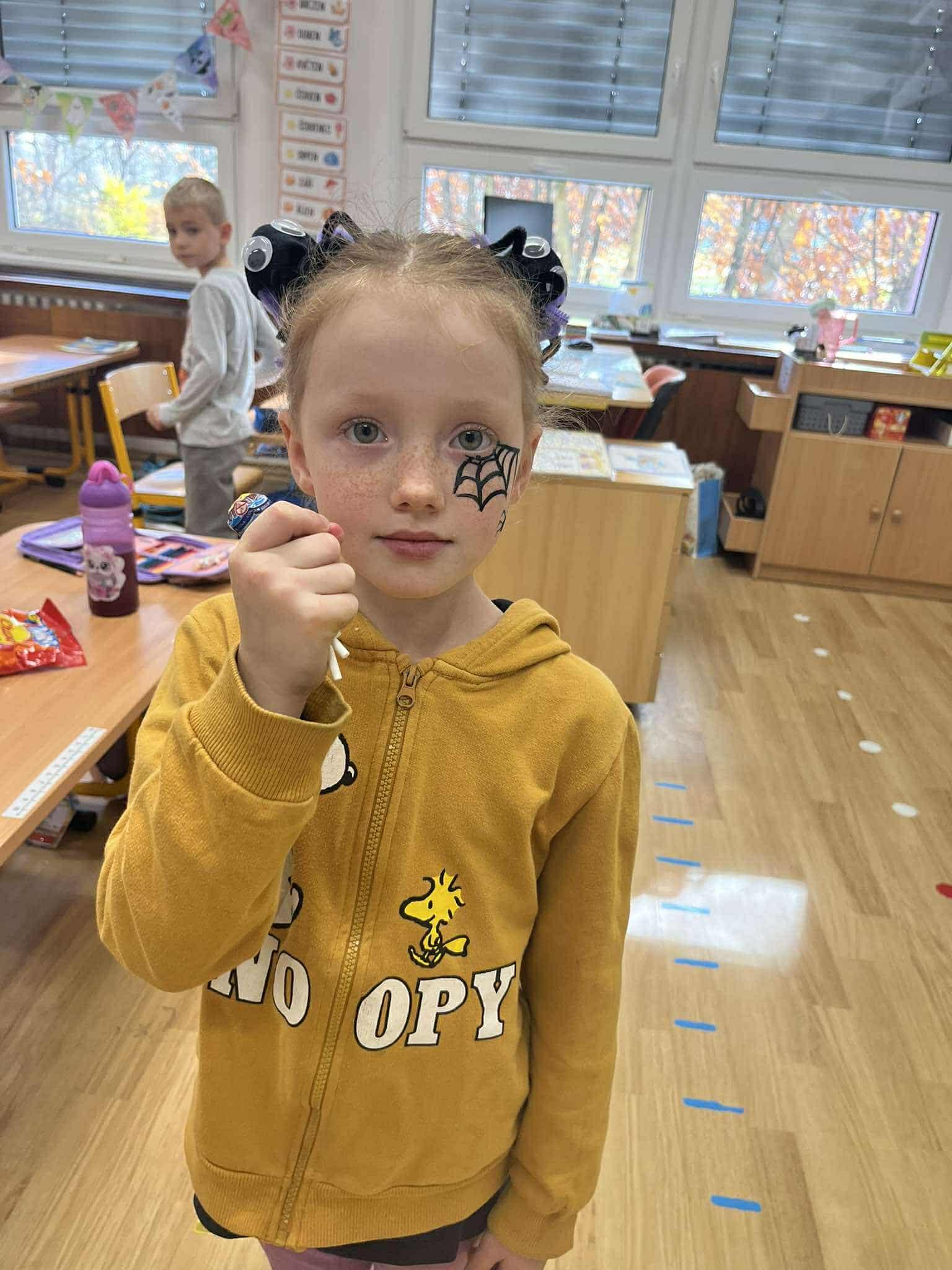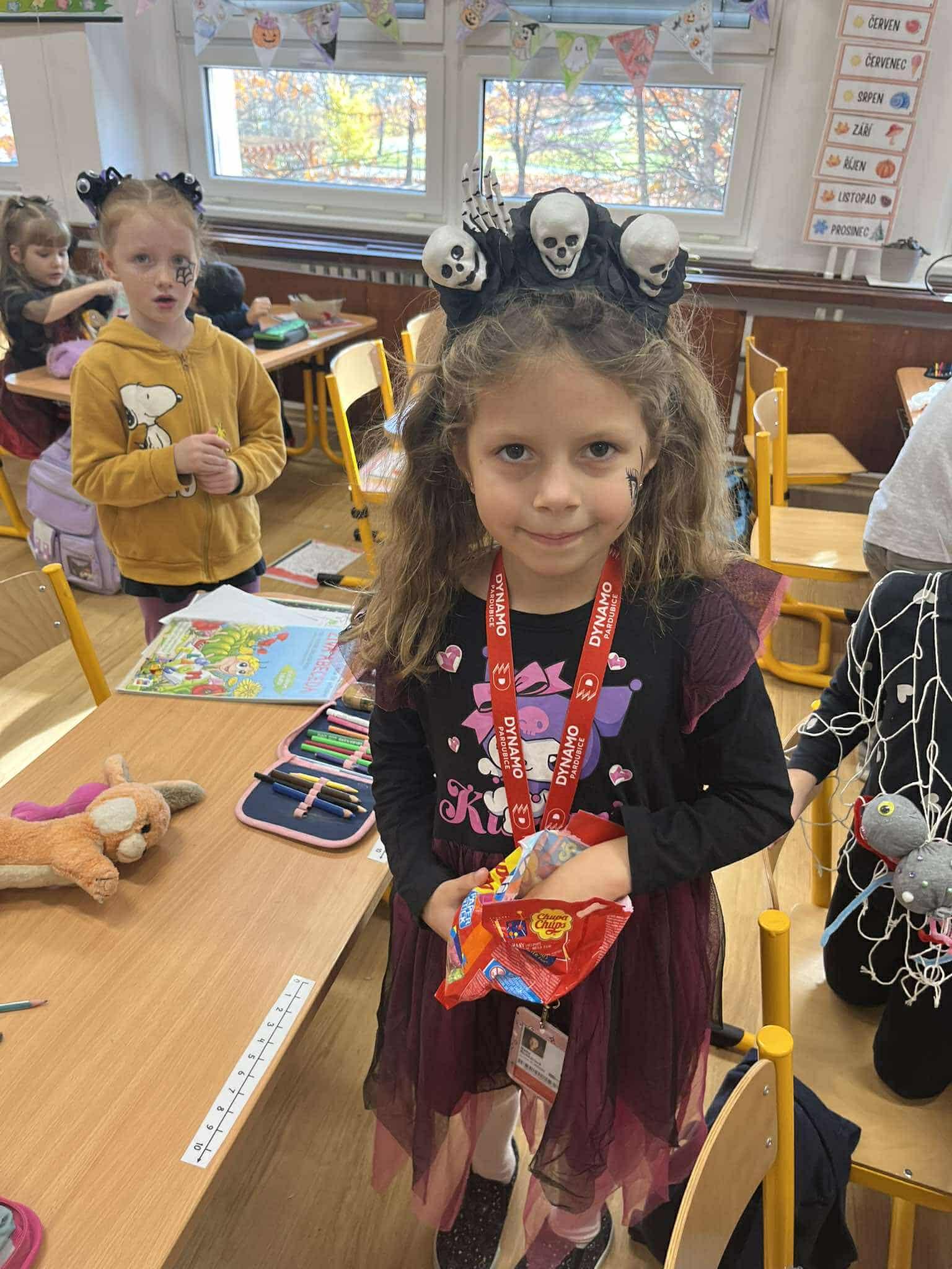 V pátek nás pak čekal Halloween! Celý den se nesl v duchu strašidelné a veselé atmosféry. Učebna se proměnila v místo plné duchů, netopýrů a dýní. Během halloweenského vyučování děti plnily tematické úkoly, luštily hádanky, počítaly a hrály halloweenské hry.