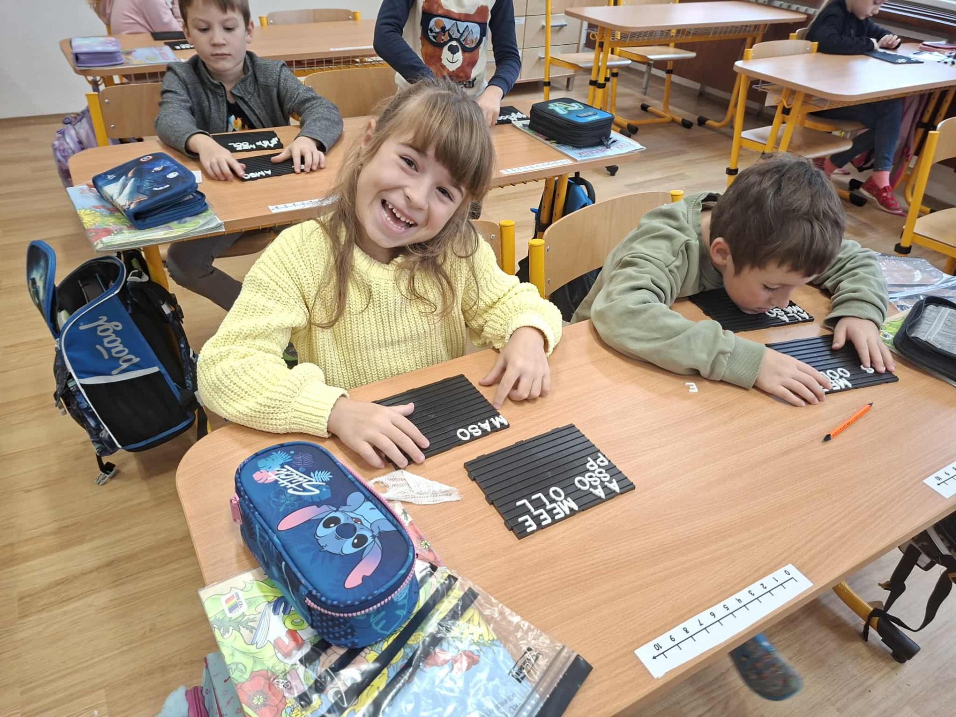Kromě toho jsme si také vyzkoušeli nové tabulky s písmenky. Děti si skládaly svá první slova, objevovaly nové kombinace písmen a s radostí si procvičovaly čtení i psaní.