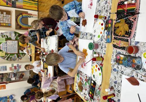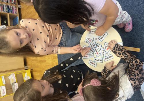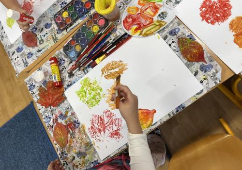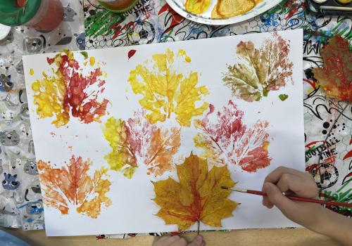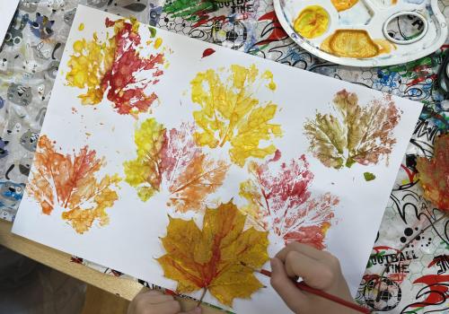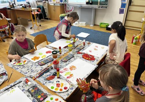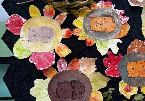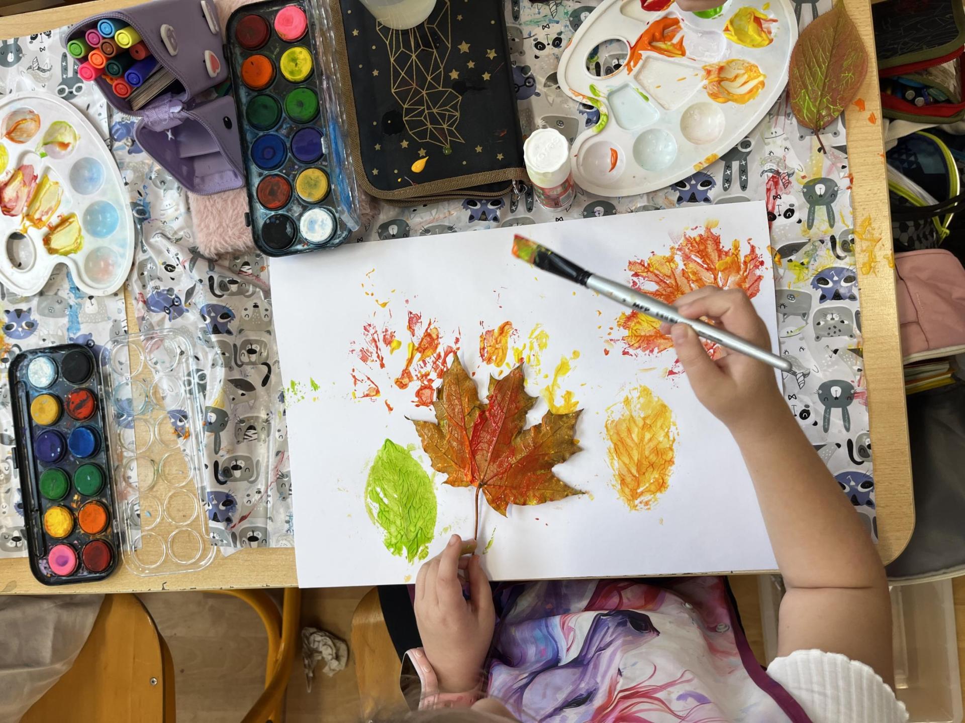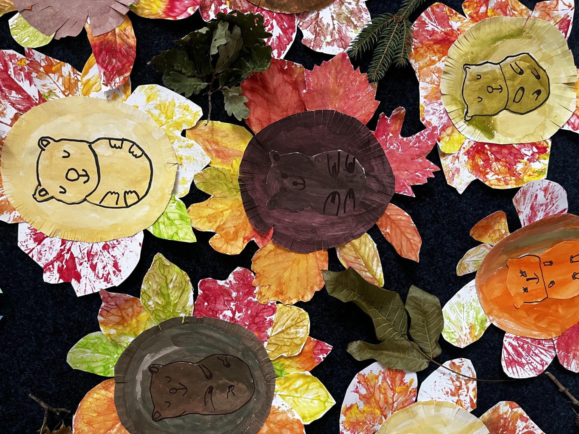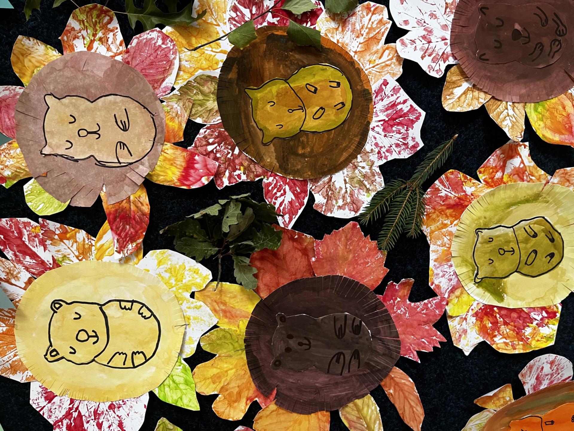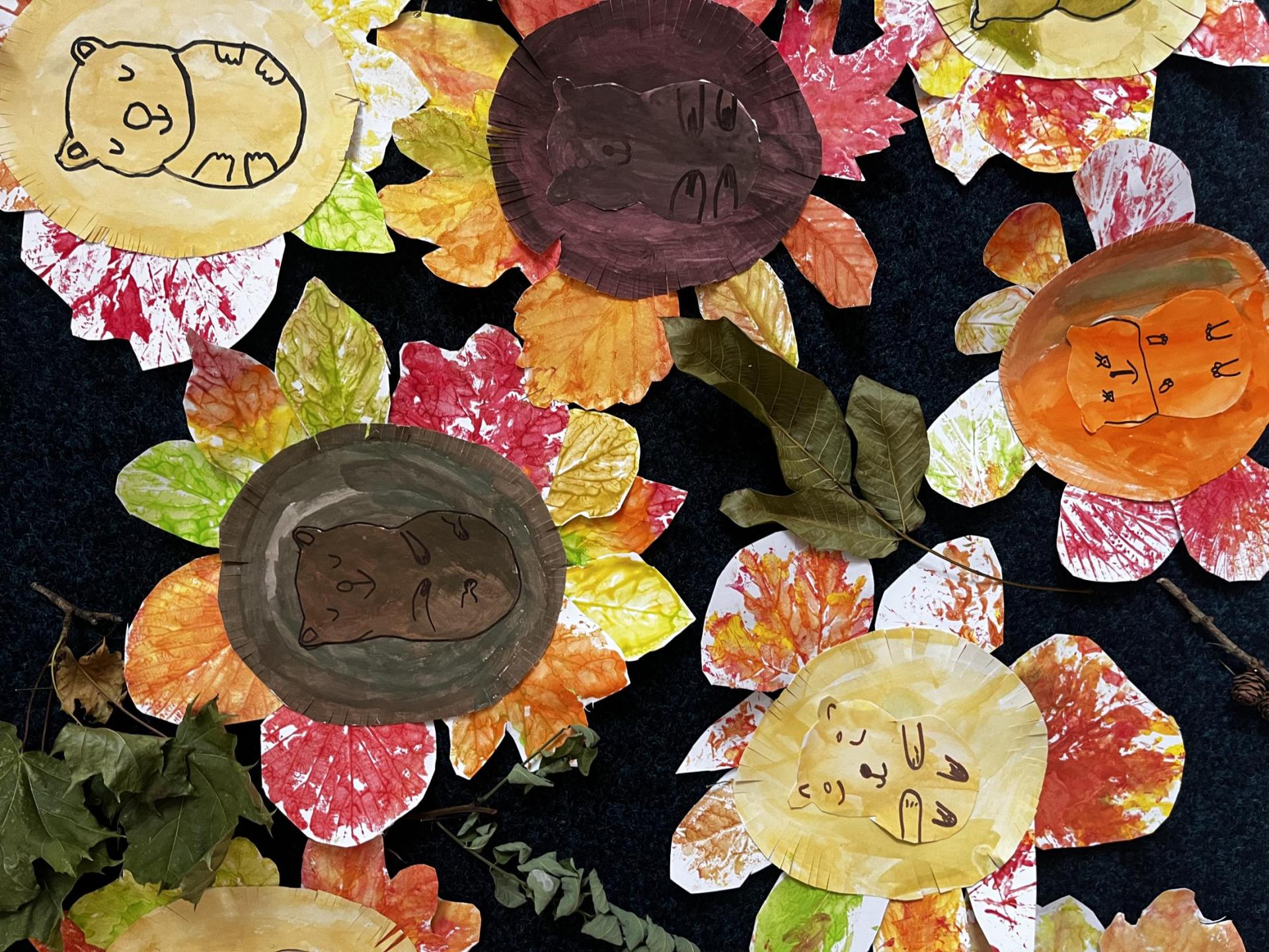 Na podzim jsme se učili o stromech, zvířatech v lese a tak jsme i o výtvarce tyto náměty využili. Použili jsme listy a vytvořili jsme takové veverky zachumlané v listí. U toho jsme se učili být pečliví a pečlivě stříhat.