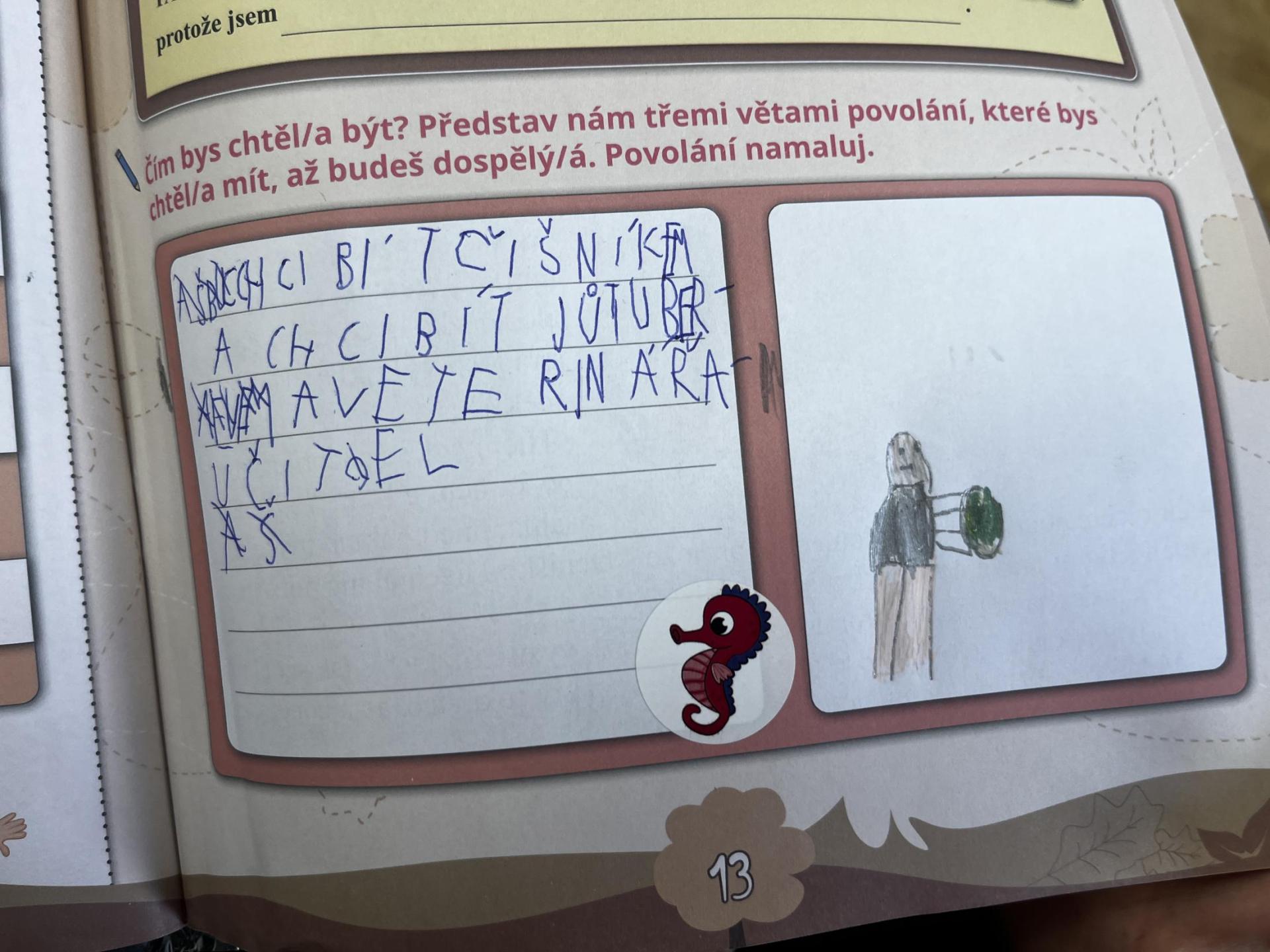 V čítance jsme si zase vyprávěli o tom, čím bychom chtěli být, až vyrosteme. To byla paráda.