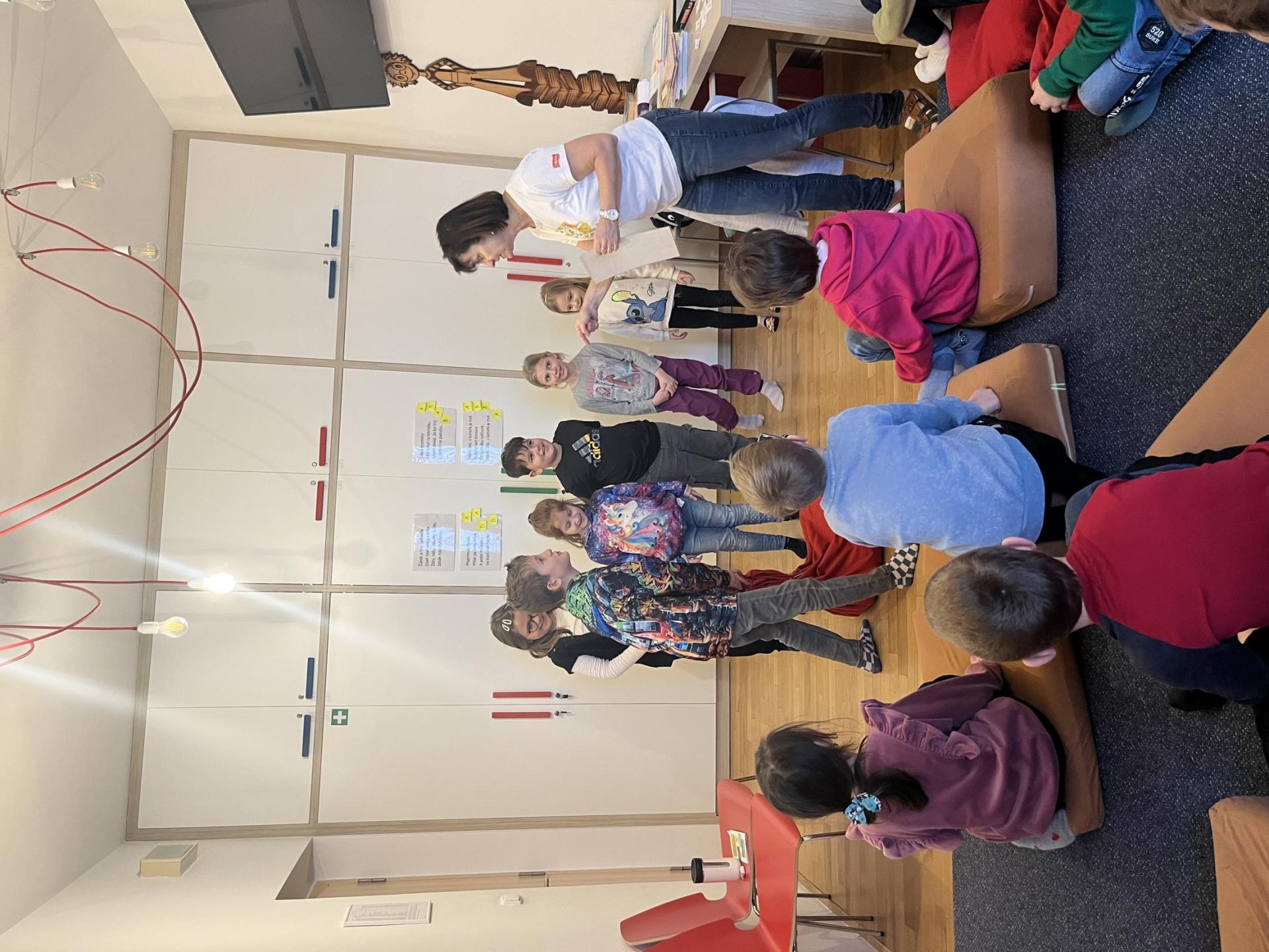 Navštívili jsme krajskou knihovnu, kde pro nás byl připraven program zaměřený na poezii a verše. Děti se učily rozpoznávat rýmy a také si zkoušely vlastní rýmy vymýšlet. Společně jsme si četli různé hádanky a básničky. Součástí programu bylo i divadlo – děti si s nadšením zahrály pohádku O veliké řepě.
