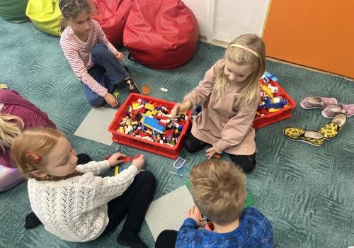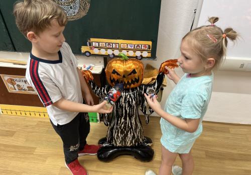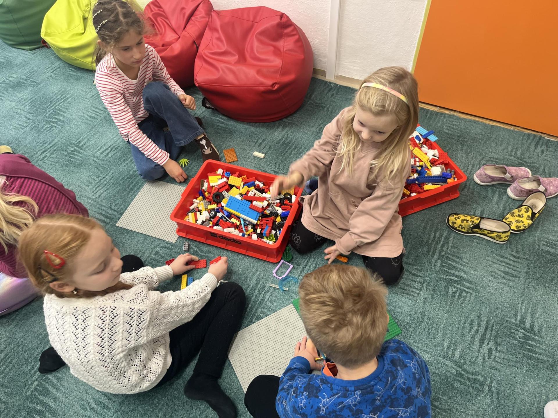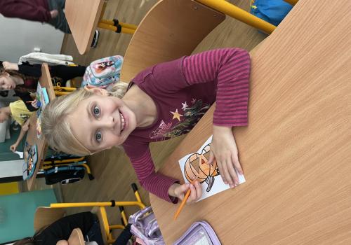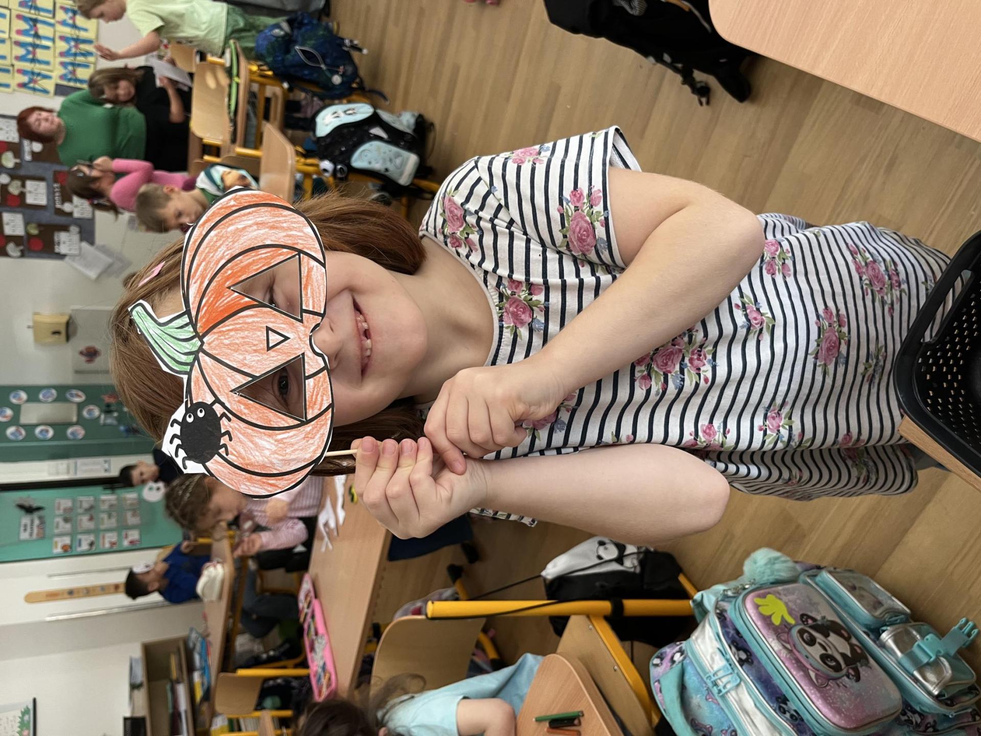 Po podzimních prázdninách jsme začali pozvolna a zamířili do LEGO učebny, kde si děti mohly postavit své domečky a další výtvory z lega. Naladili jsme se také na halloweenskou atmosféru při počítání v matematice a vyrobili si masky. V tělocviku jsme si zahráli halloweenskou hru, která děti moc bavila.