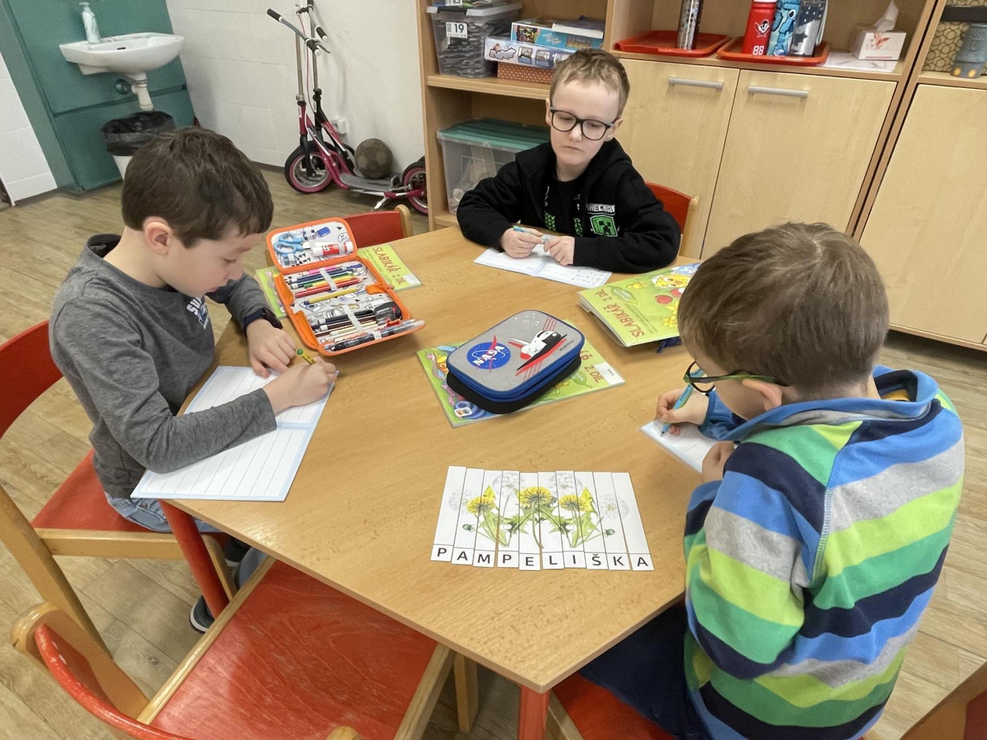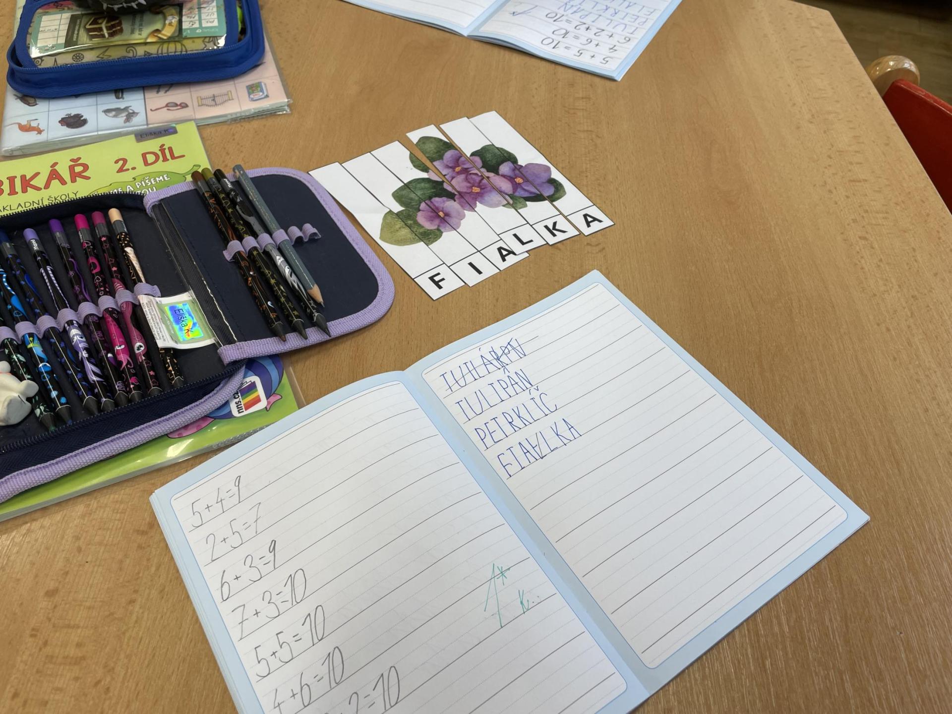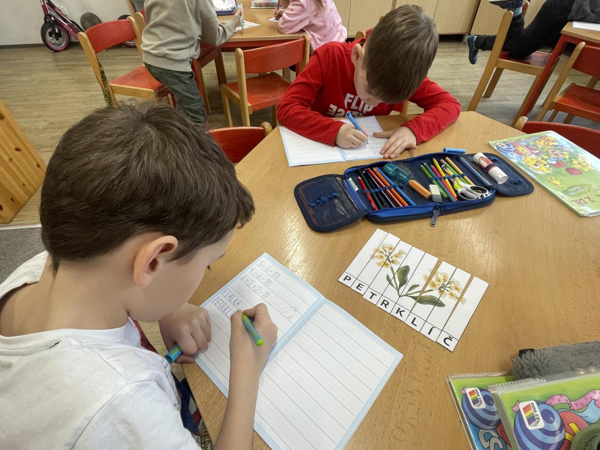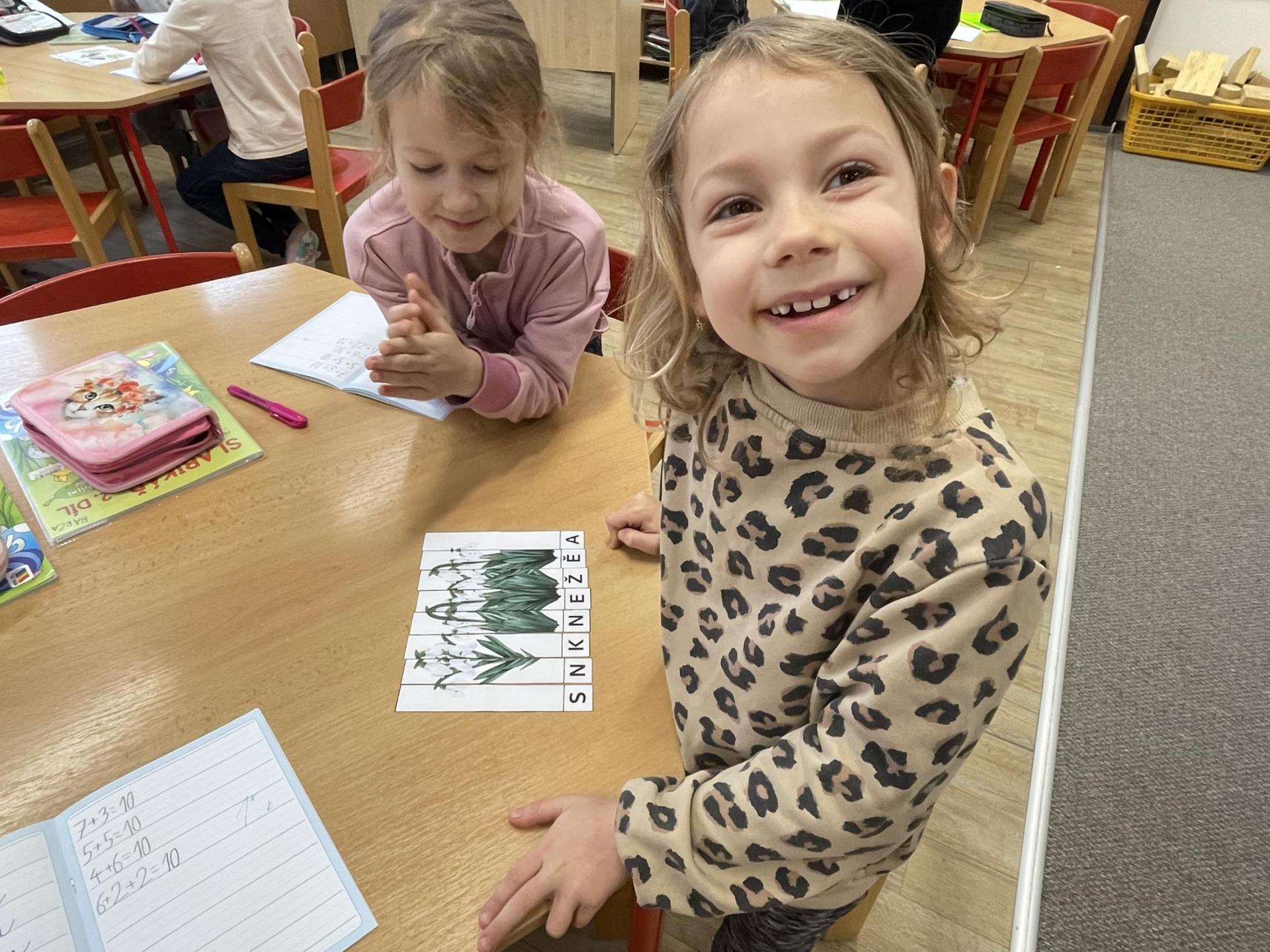 V další části výuky si každý vytvořil vlastní myšlenkovou mapu jarních květin, díky čemuž si procvičil psaní, slovní zásobu, představivost i tvořivost. Své znalosti jsme si upevnili pomocí skládání puzzle jarních rostlin. Zahráli jsme si také zábavnou hru na interaktivní tabuli – úkolem bylo co nejrychleji najít jmenovanou rostlinu a „zasáhnout“ ji plácačkou na mouchy. To byla zábava!