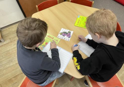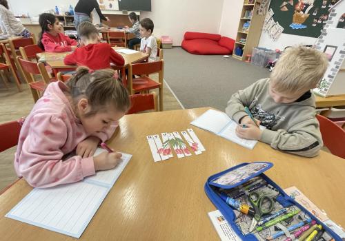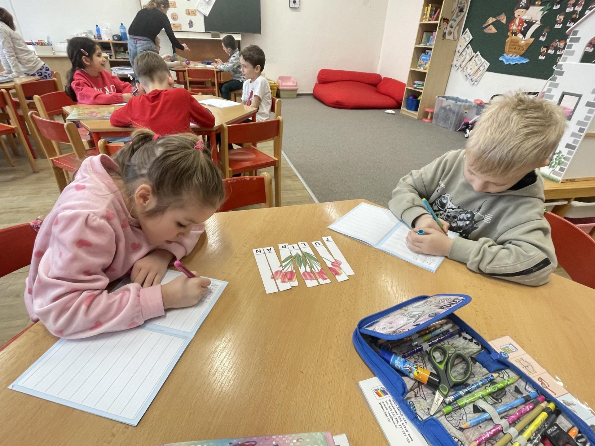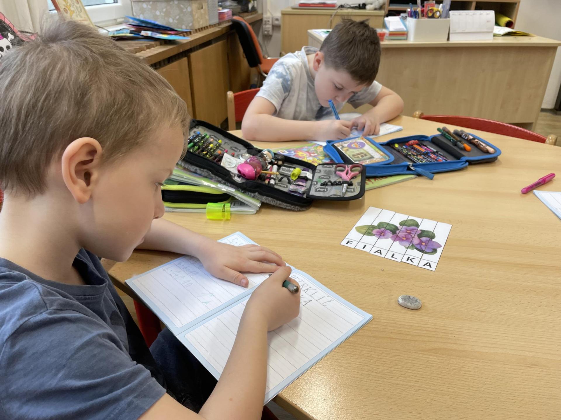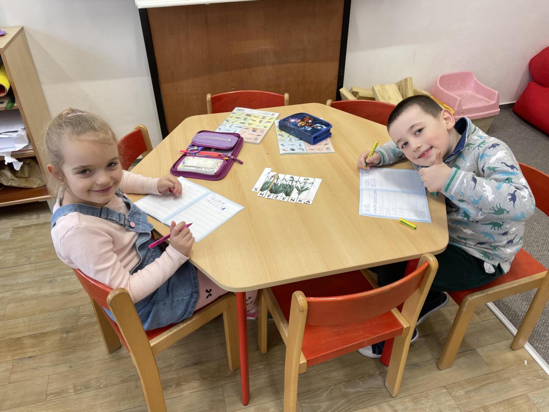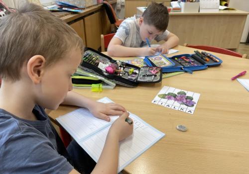 V další části výuky si každý vytvořil vlastní myšlenkovou mapu jarních květin, díky čemuž si procvičil psaní, slovní zásobu, představivost i tvořivost. Své znalosti jsme si upevnili pomocí skládání puzzle jarních rostlin. Zahráli jsme si také zábavnou hru na interaktivní tabuli – úkolem bylo co nejrychleji najít jmenovanou rostlinu a „zasáhnout“ ji plácačkou na mouchy. To byla zábava!