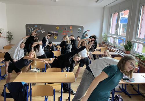 Na začátku první hodiny jsme si zacvičili a pěkně se protáhli. Pustili jsme si prezentaci o zdravém životním stylu, co vše zahrnuje a o všem jsme diskutovali. Připomněli jsme si důležitost nejen pohybu, ale i zdravé stravy, spánku, i péče o duševní zdraví.