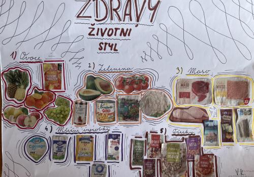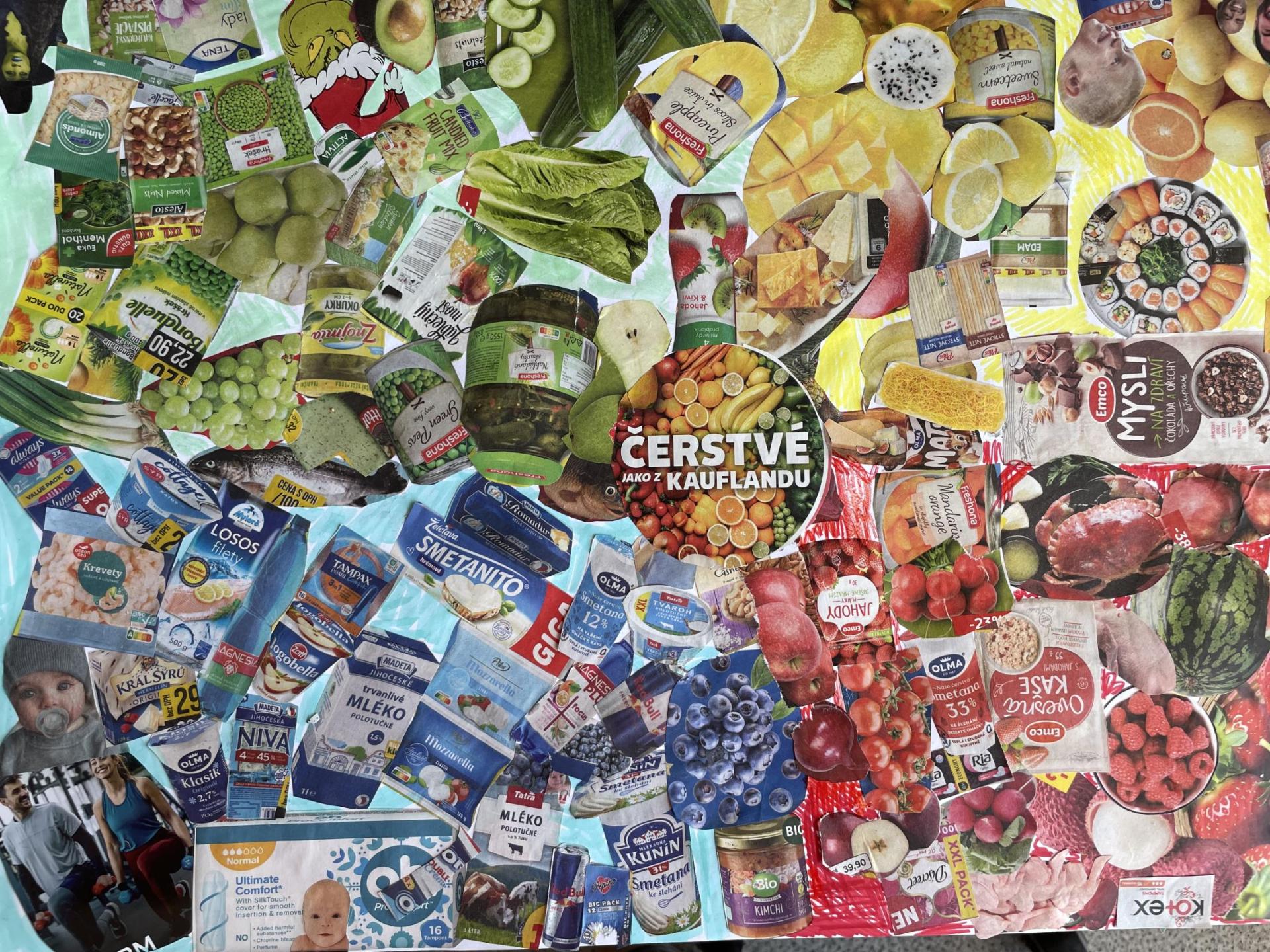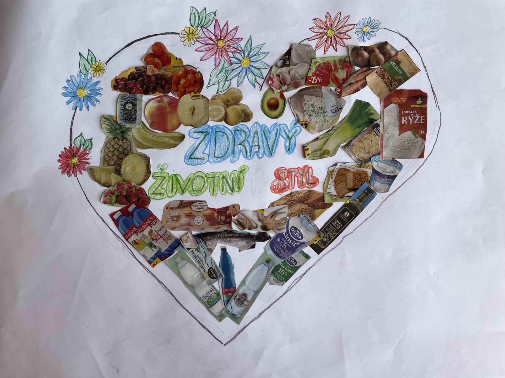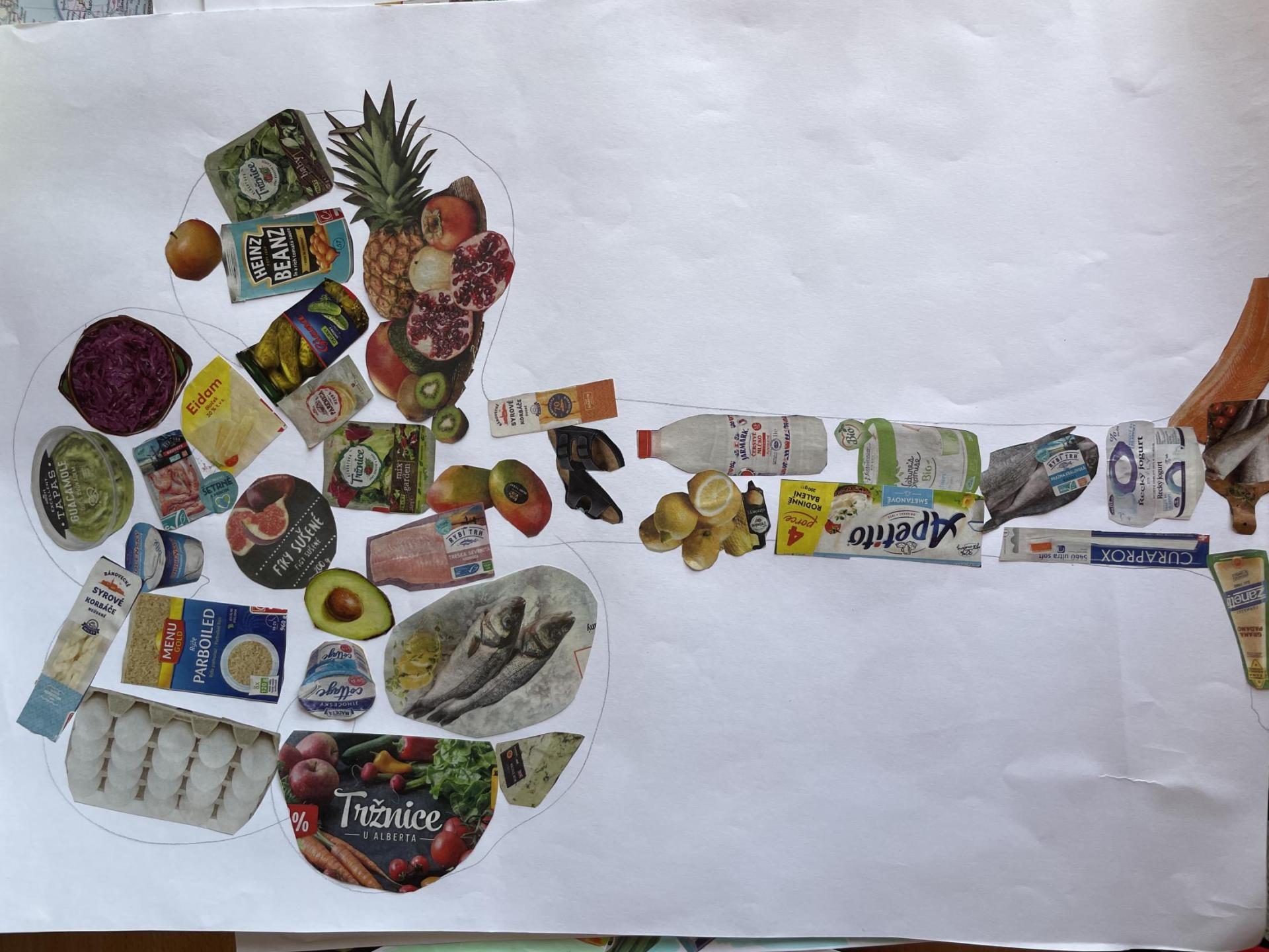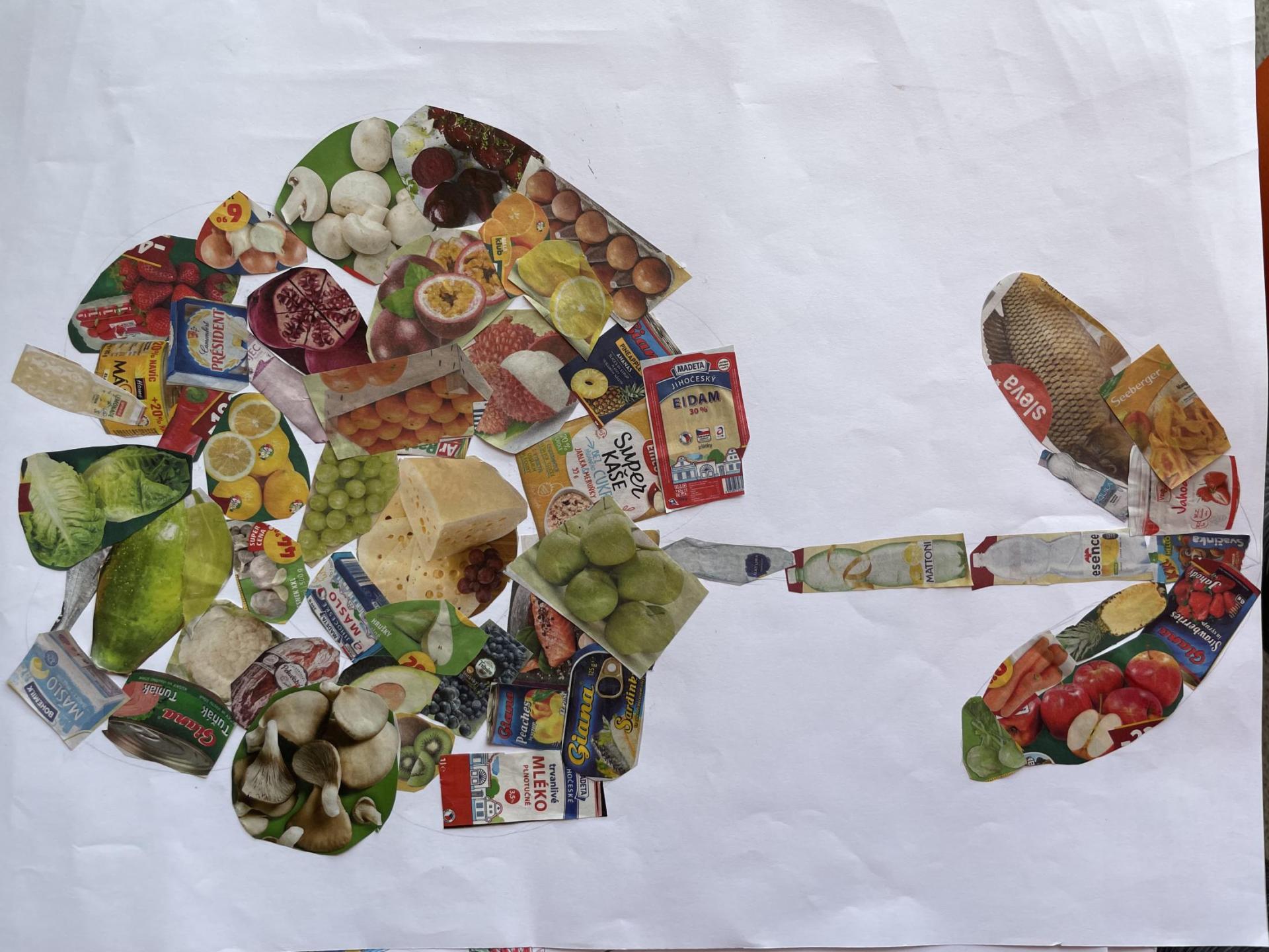 V dalších hodinách děti tvořily koláž. Výsledkem byl obrázek složený z menších obrázků zdravých potravin. Práce se dětem velmi povedly!