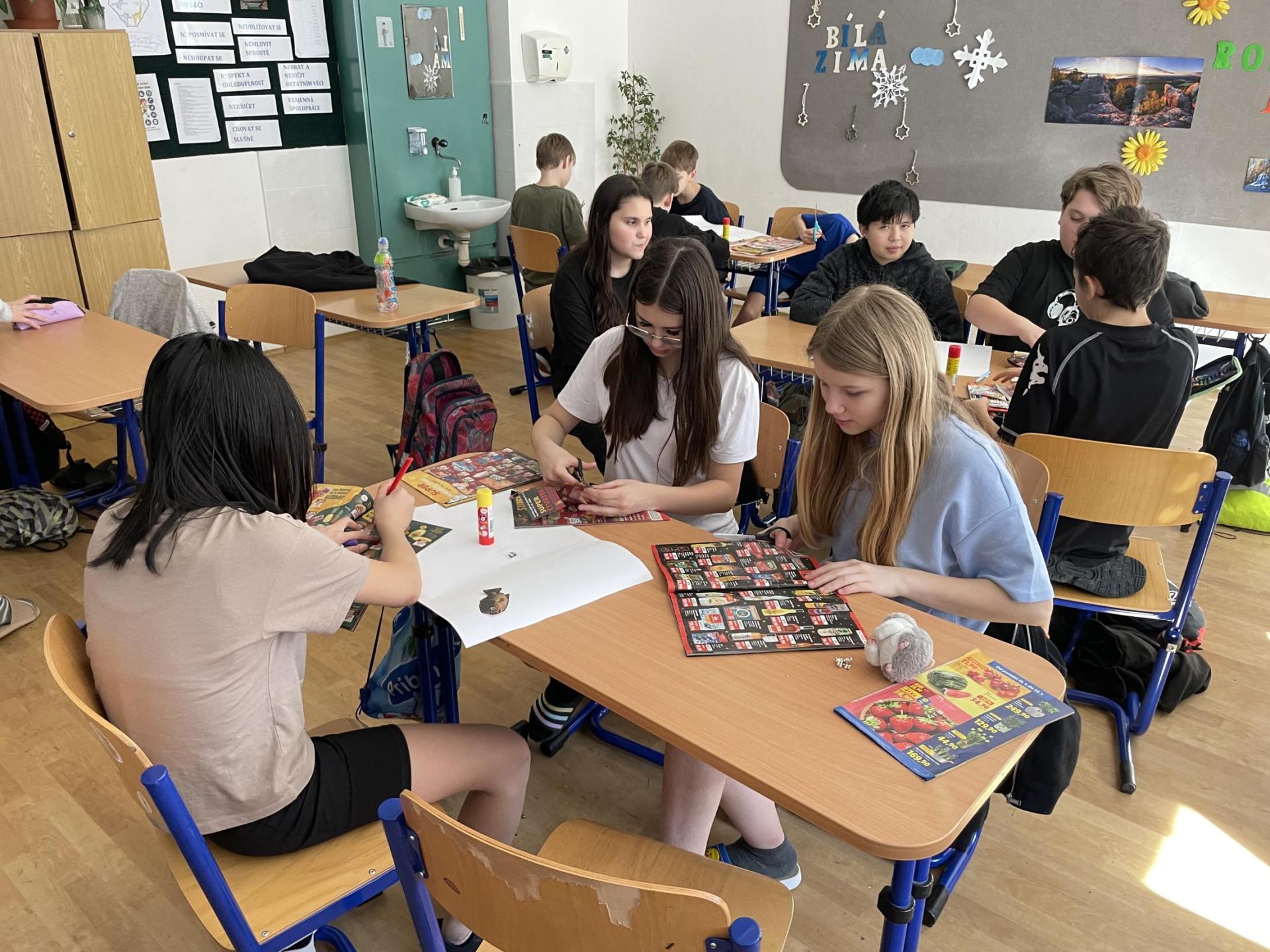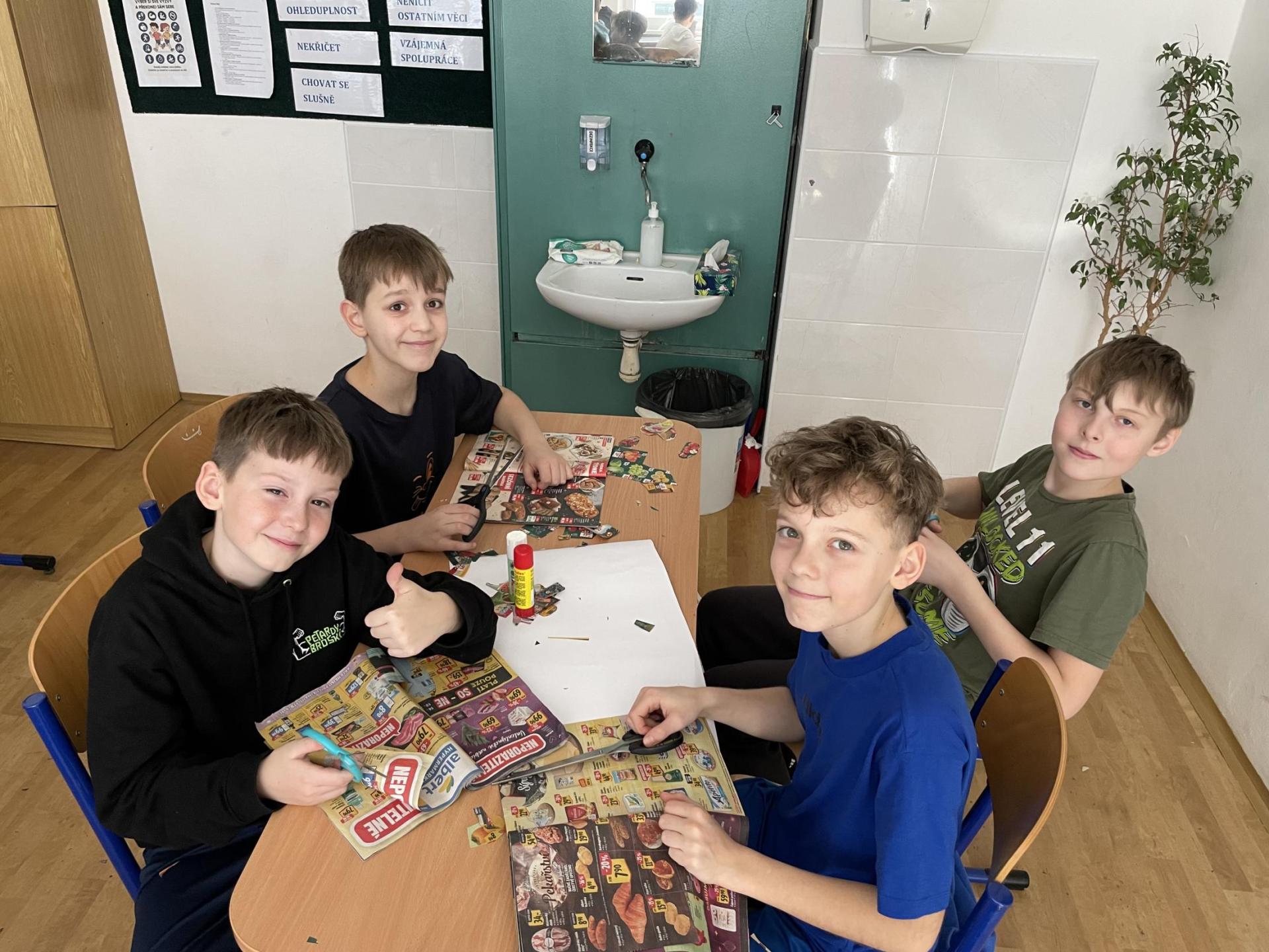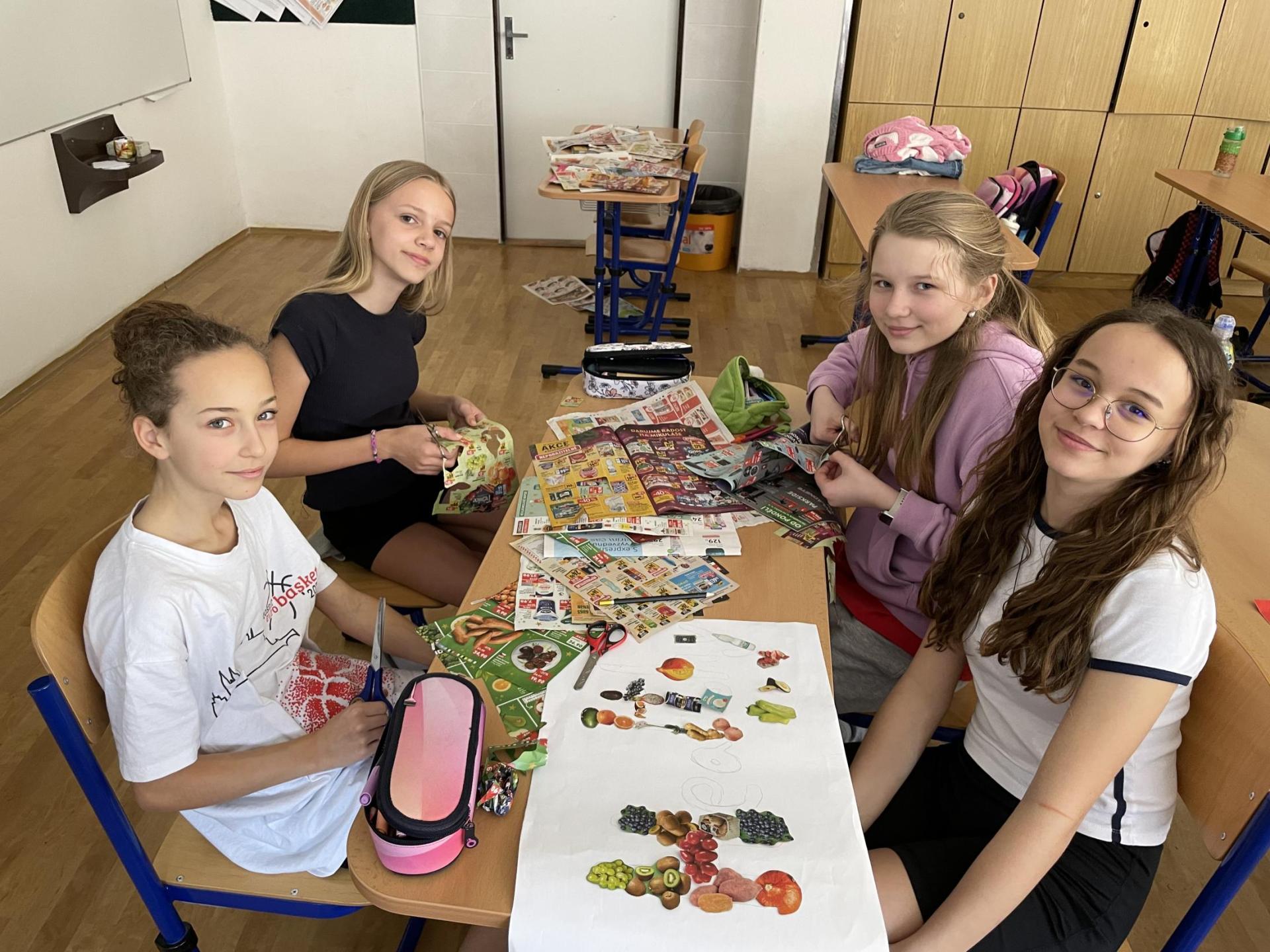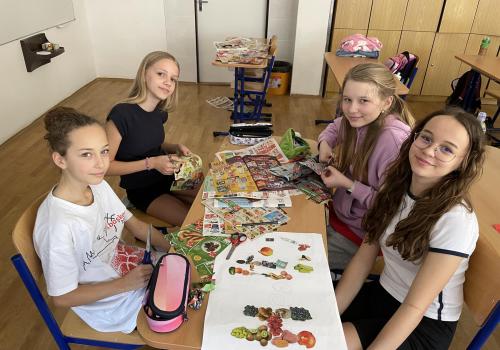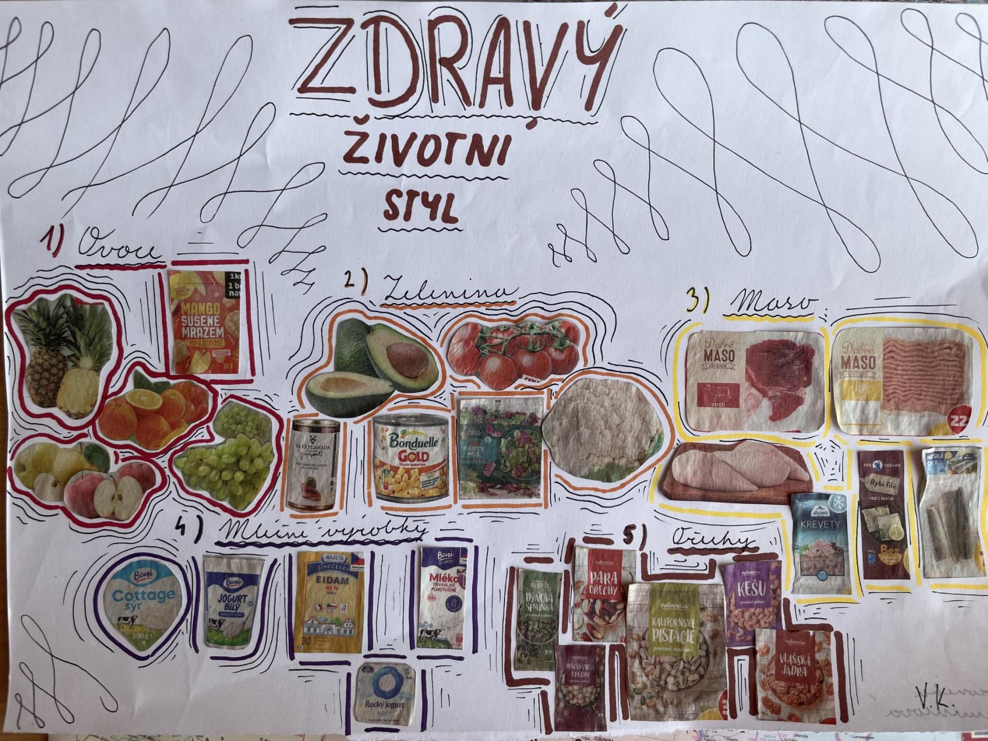 V dalších hodinách děti tvořily koláž. Výsledkem byl obrázek složený z menších obrázků zdravých potravin. Práce se dětem velmi povedly!