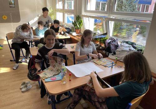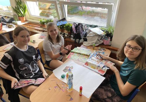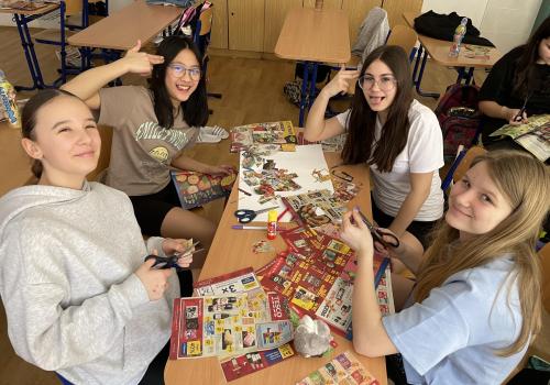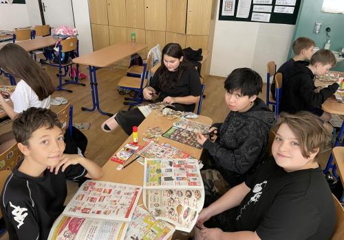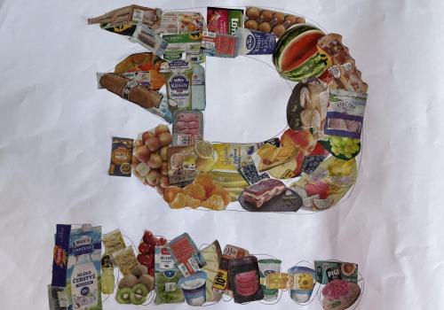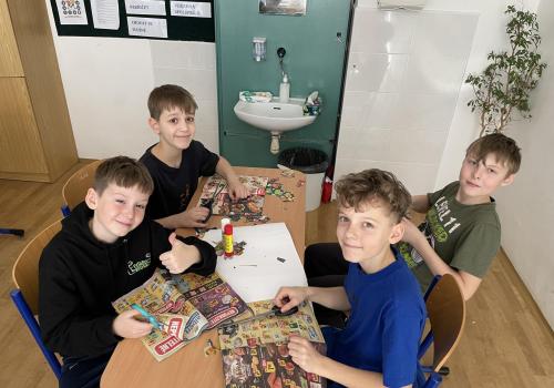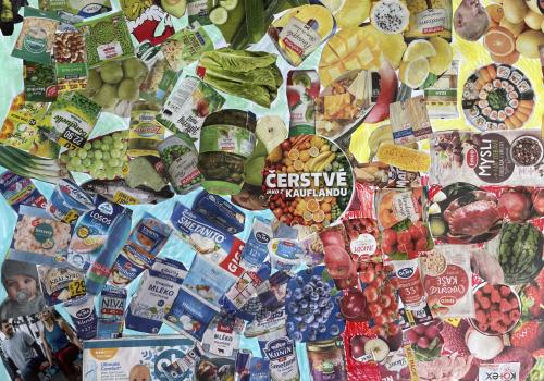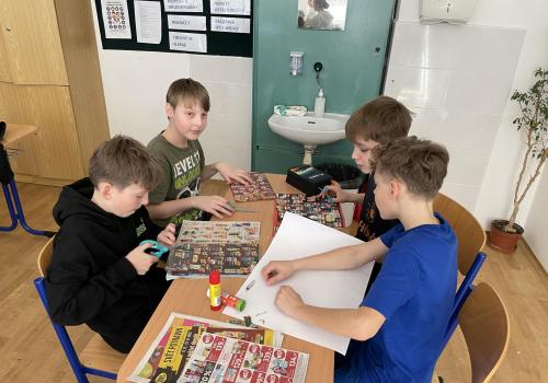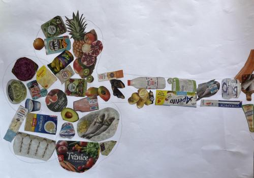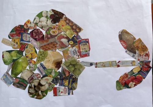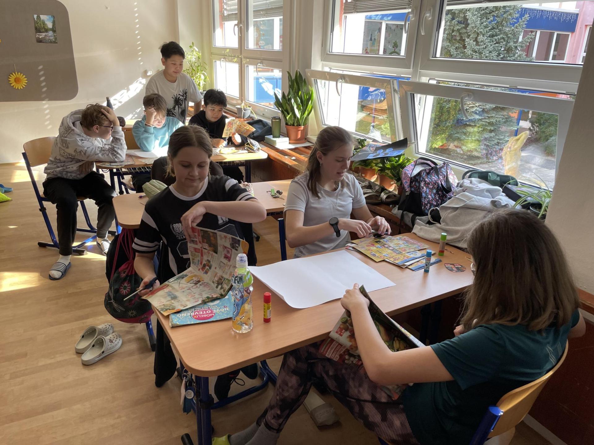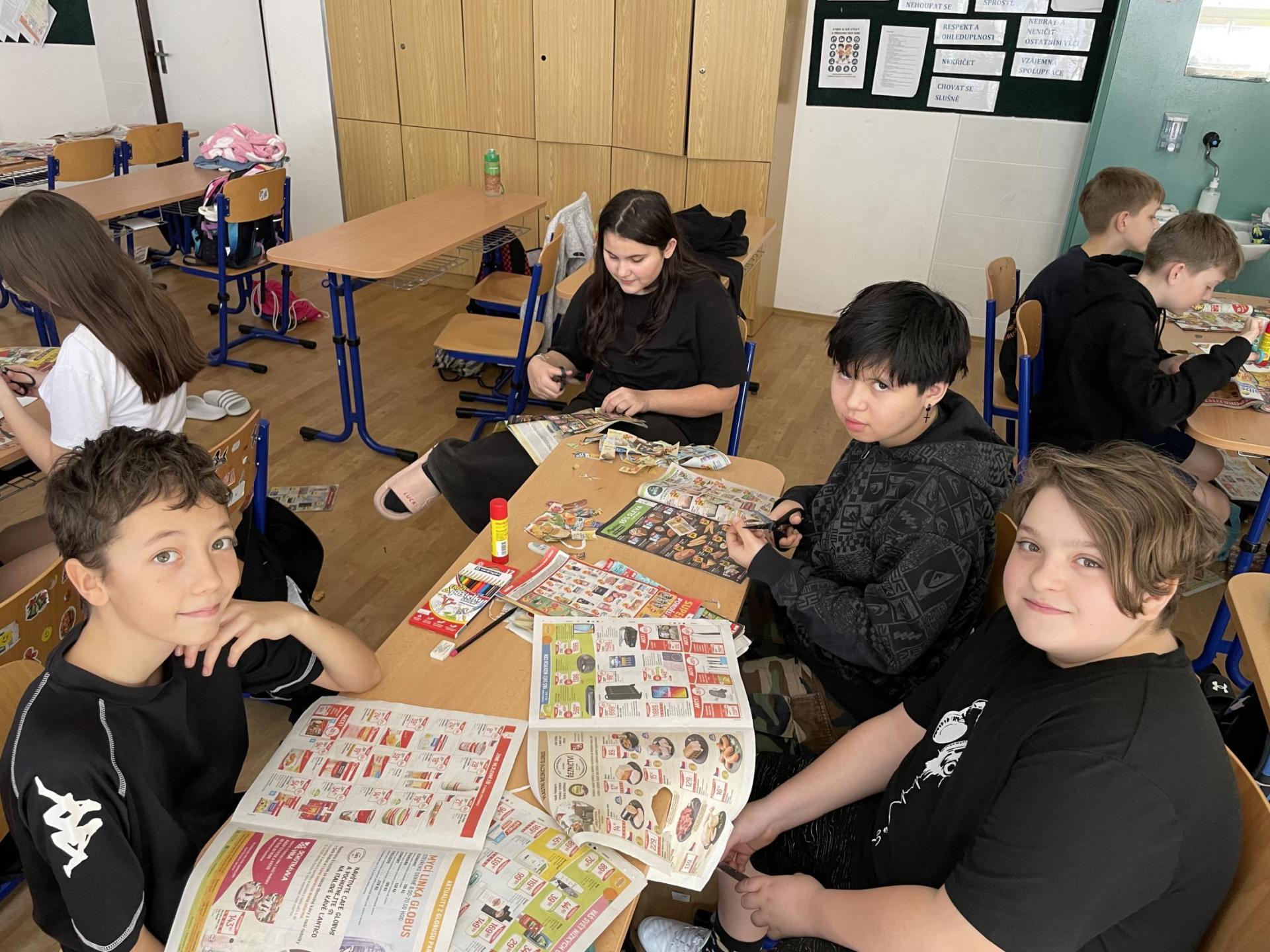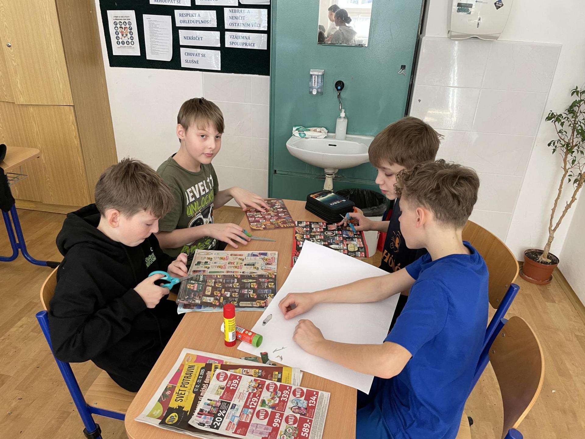 V dalších hodinách děti tvořily koláž. Výsledkem byl obrázek složený z menších obrázků zdravých potravin. Práce se dětem velmi povedly!
